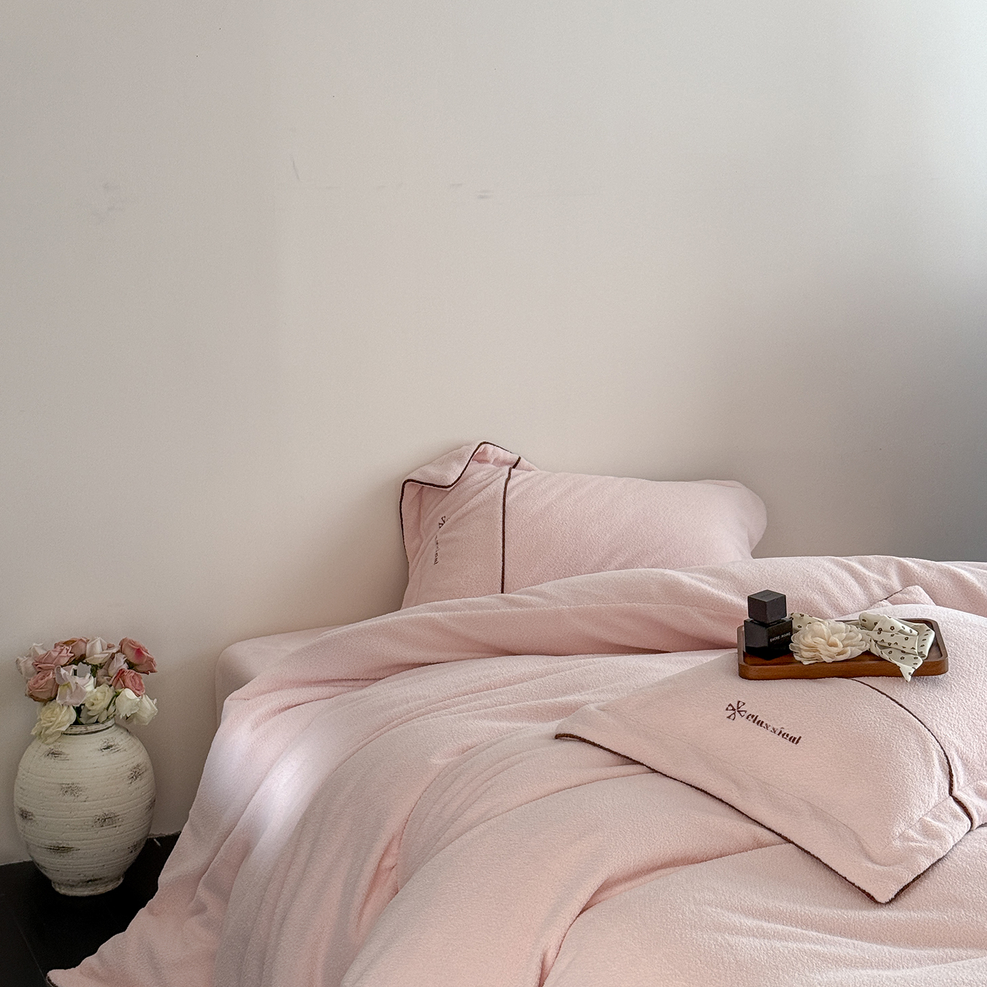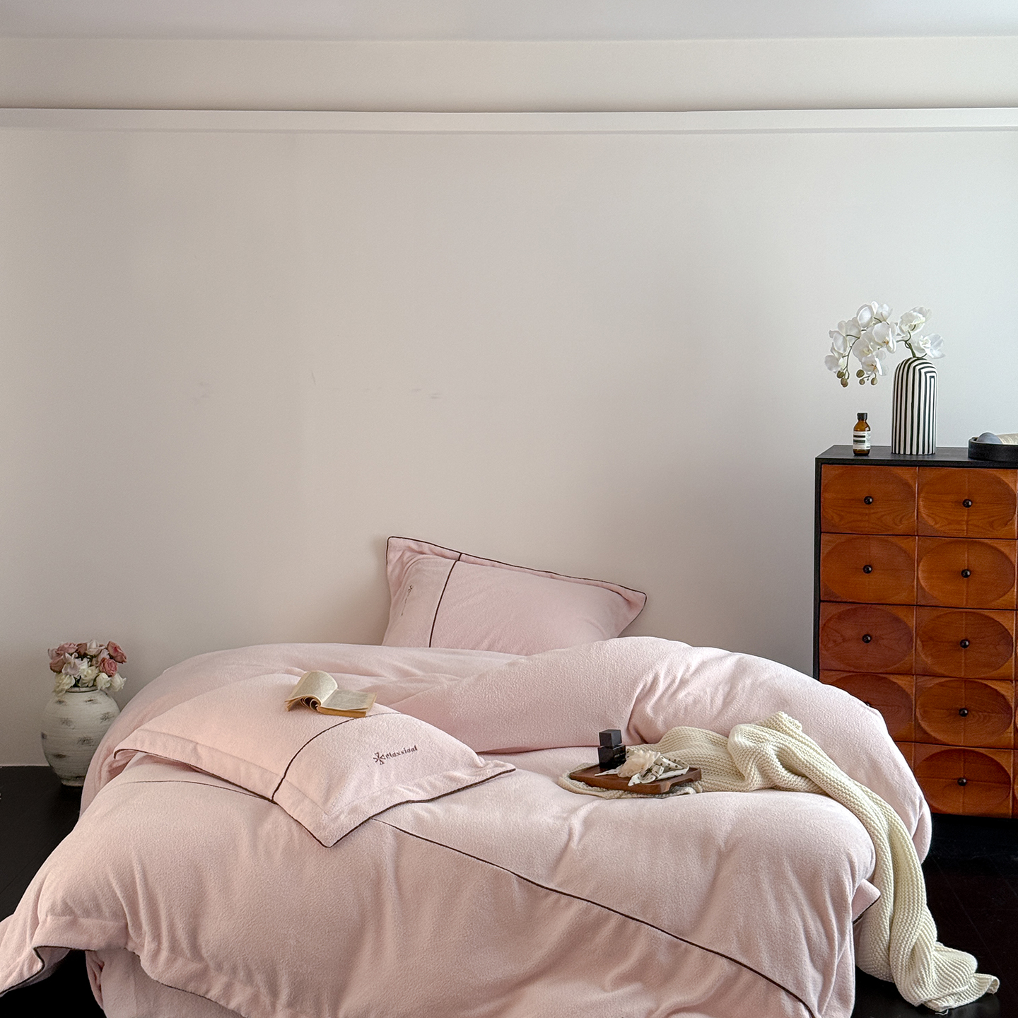 商品名称:涞澳家纺 2025新款半边绒四件套-柔光梦境 柔光梦境-粉