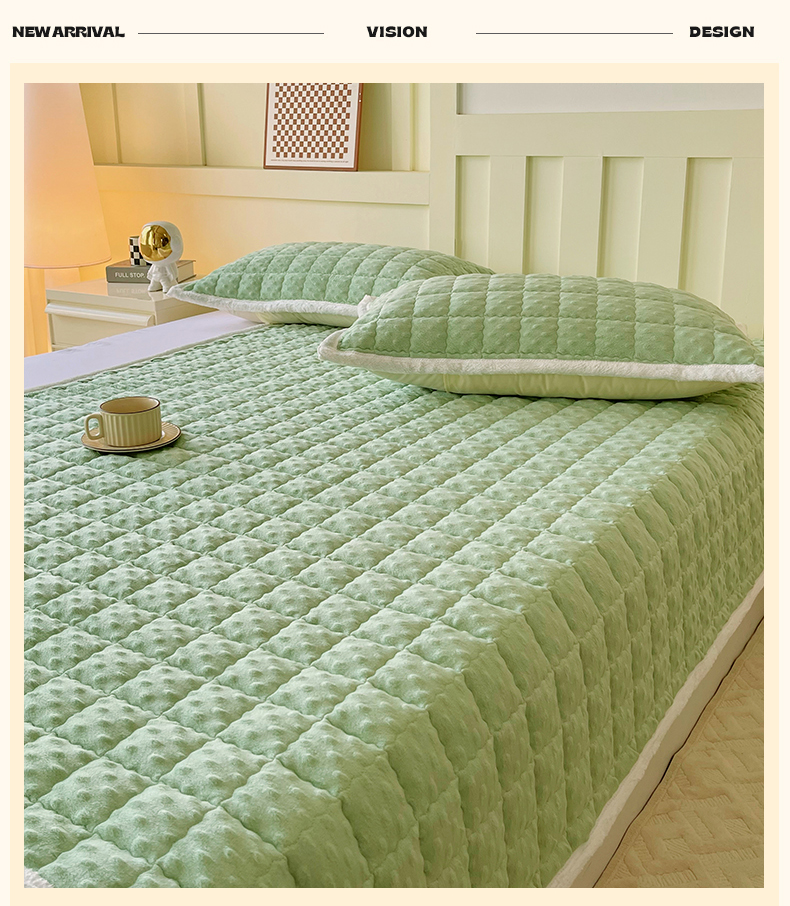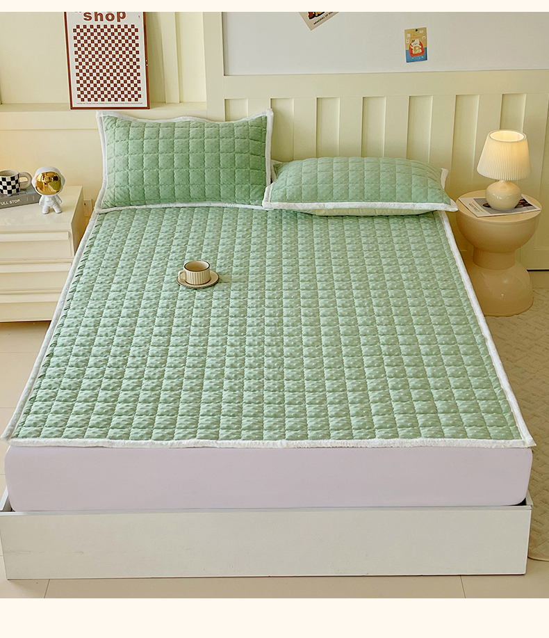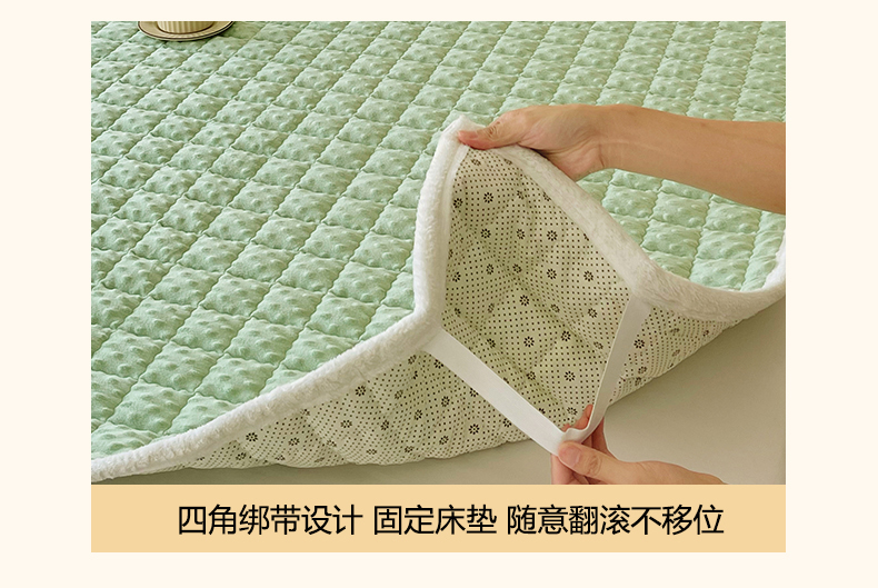 金鑫汇家纺 2025新款加厚牛奶豆豆绒暖绒包边床褥垫 成人床:豆豆绒床褥垫:绿色
