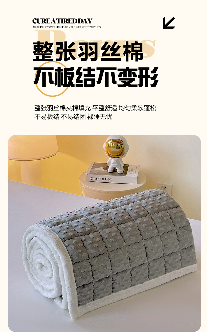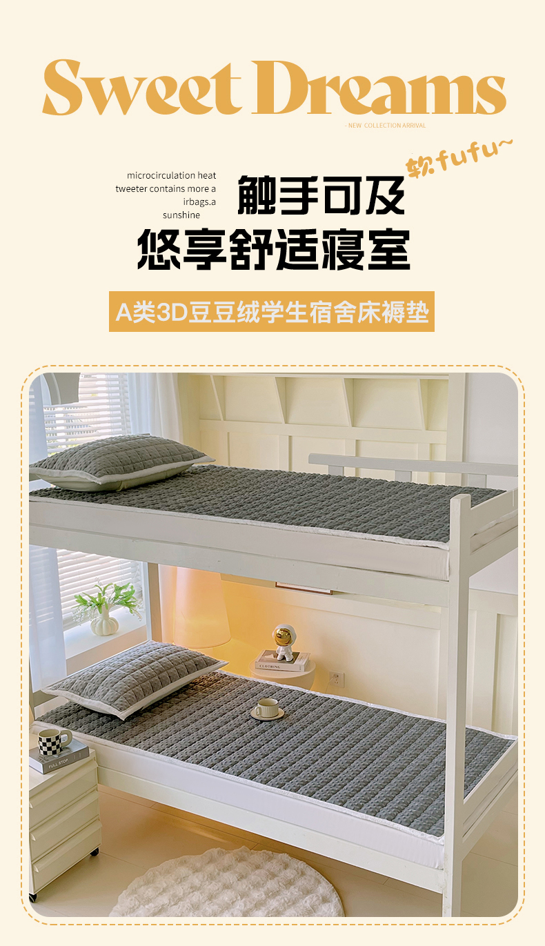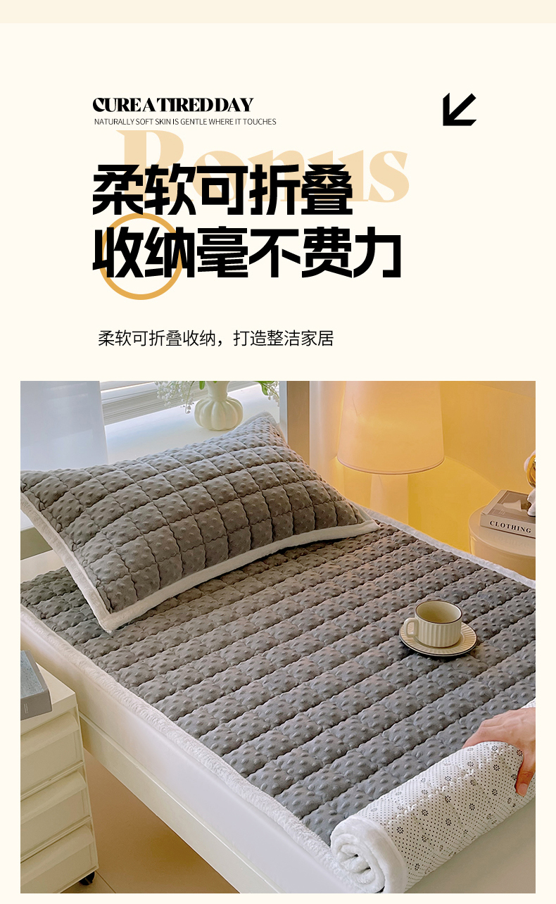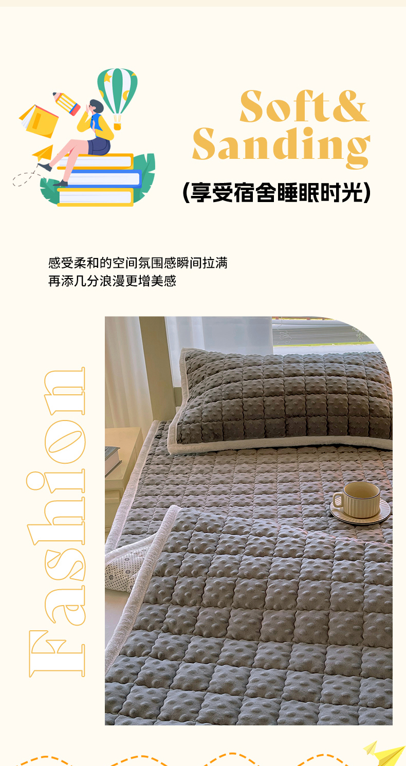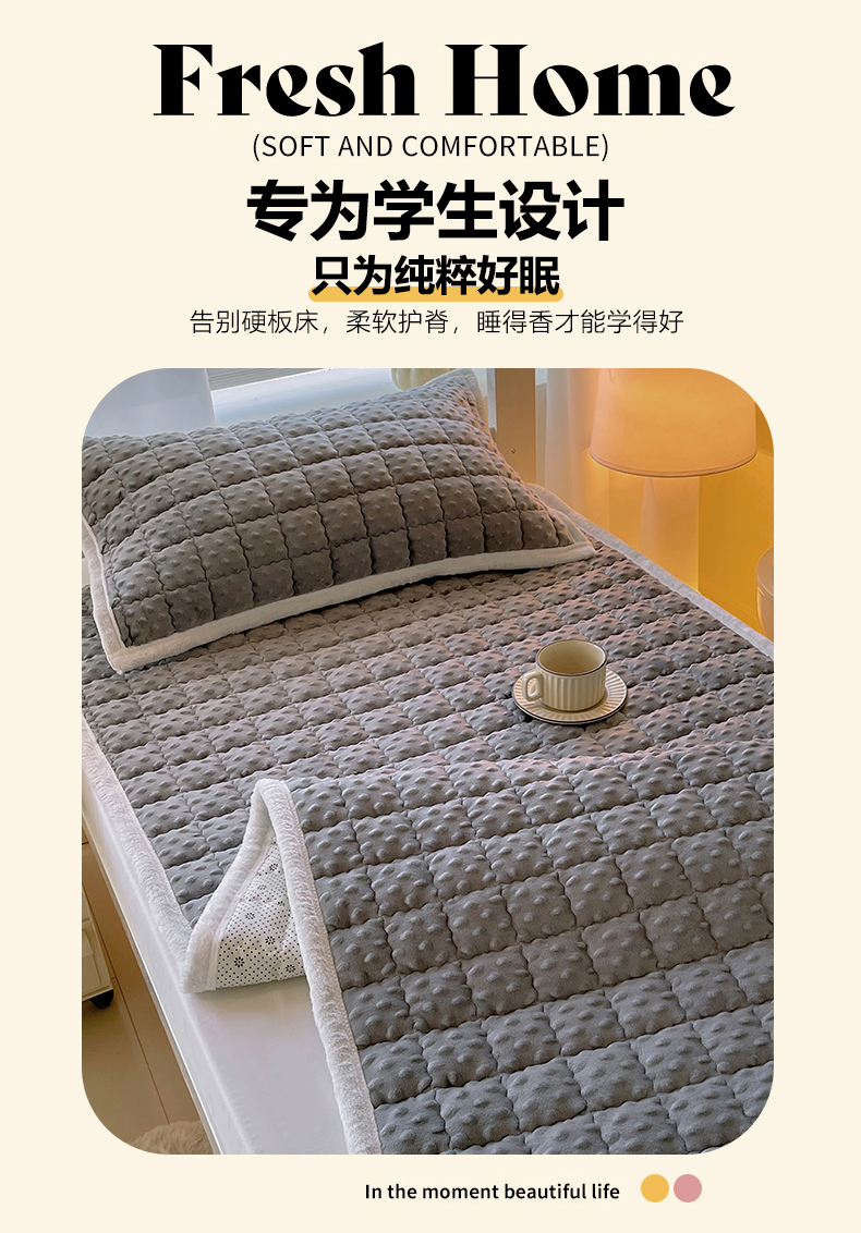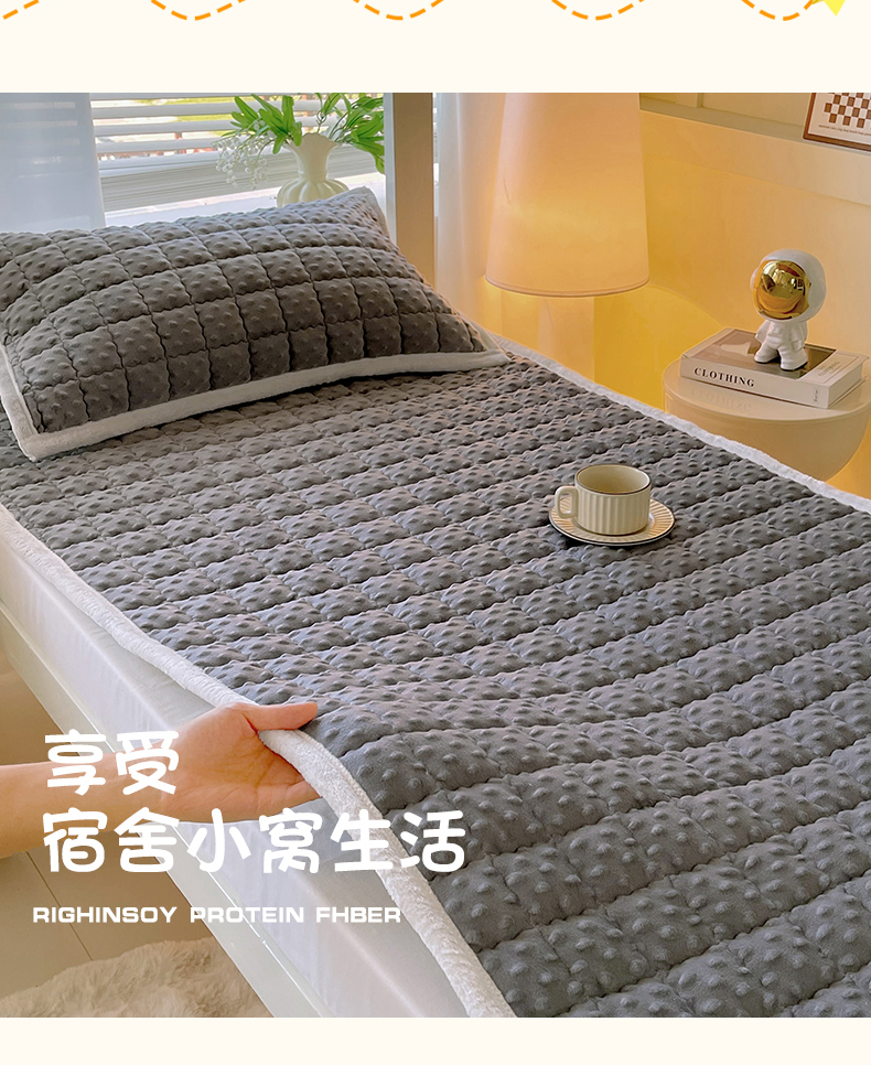 当前位置: 91家纺网 > 商品网购 > 床垫/床褥 > 金鑫汇家纺 2025新款加厚牛奶豆豆绒暖绒包边床褥垫 学生床:豆豆绒床褥垫:灰色