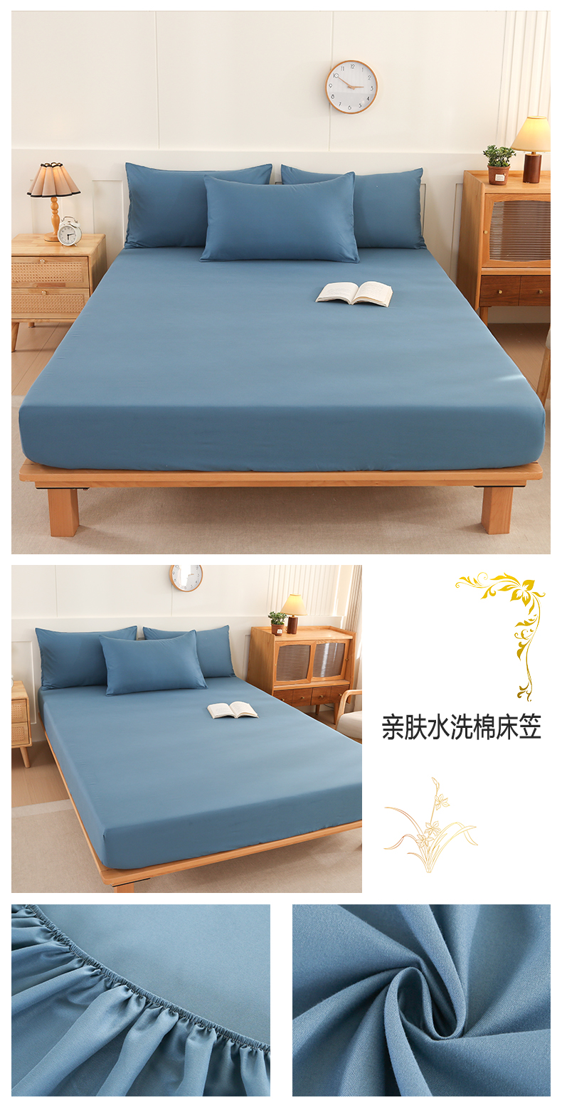 (总)优纤家纺 2025新款亲肤水洗棉床笠系列,卡其,纯白,豆沙,墨绿,牛仔蓝,浅灰,深灰,天蓝