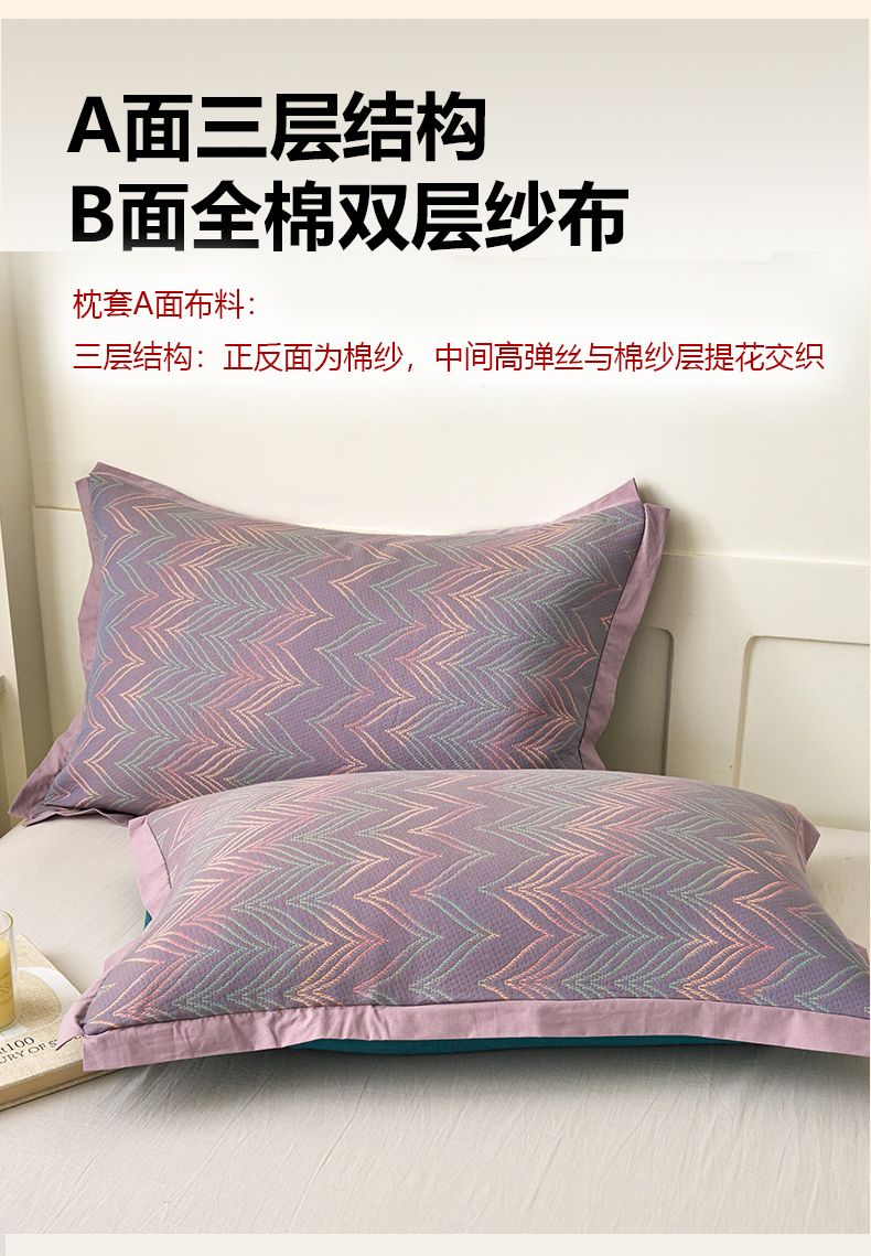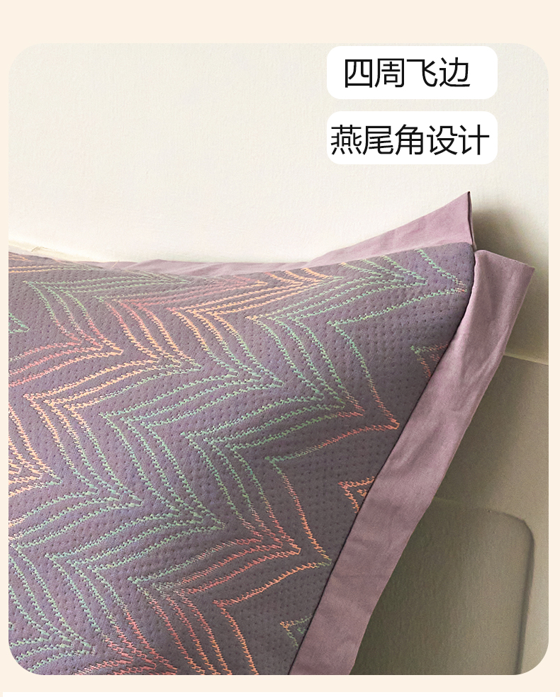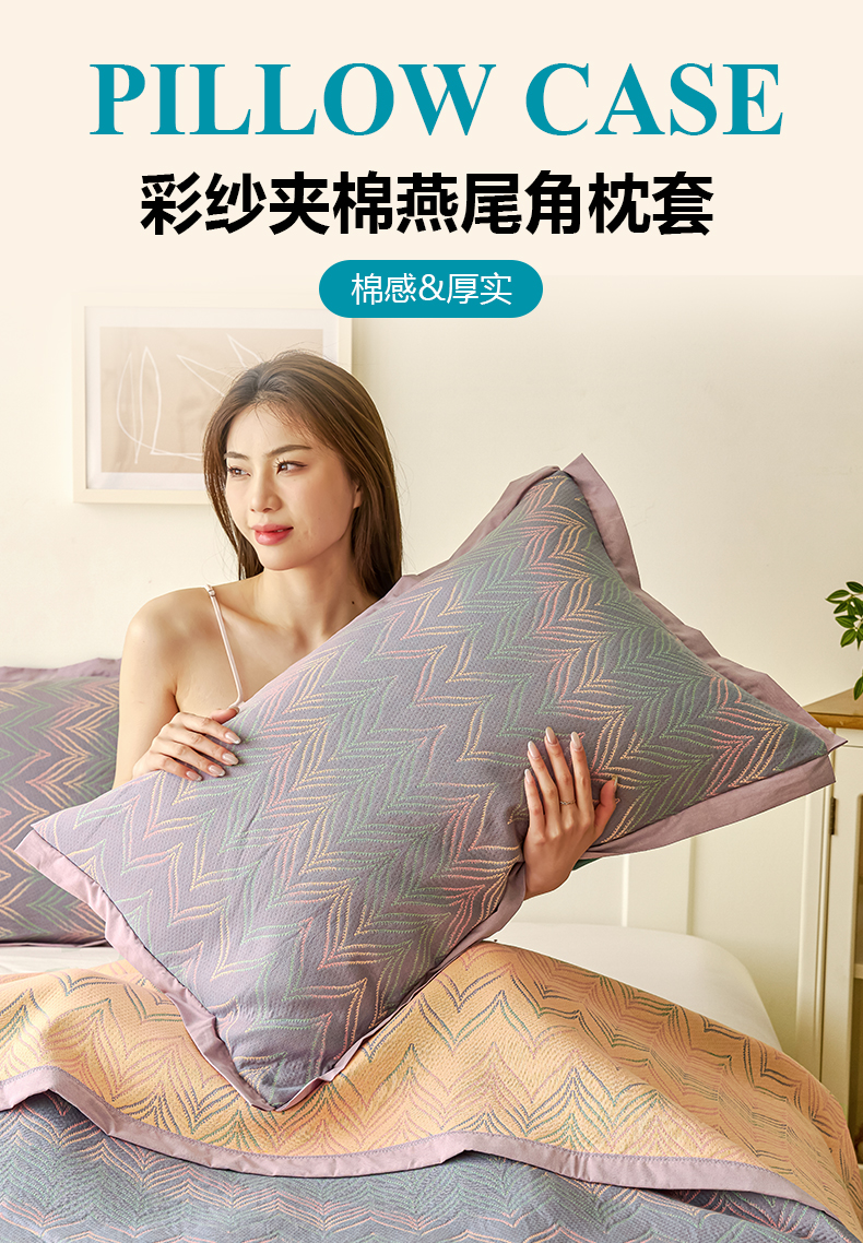 商品名称:棠薇家纺 2025新款全棉彩纱枕套燕尾角枕套夹棉双层纱48*74cm枕头套单只装一对装 绚丽-紫
