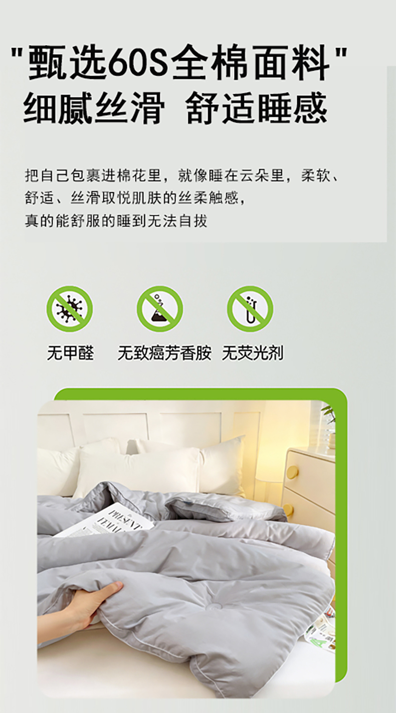 VIP被业 2025新款60S立体全棉大豆被子被芯 灰色