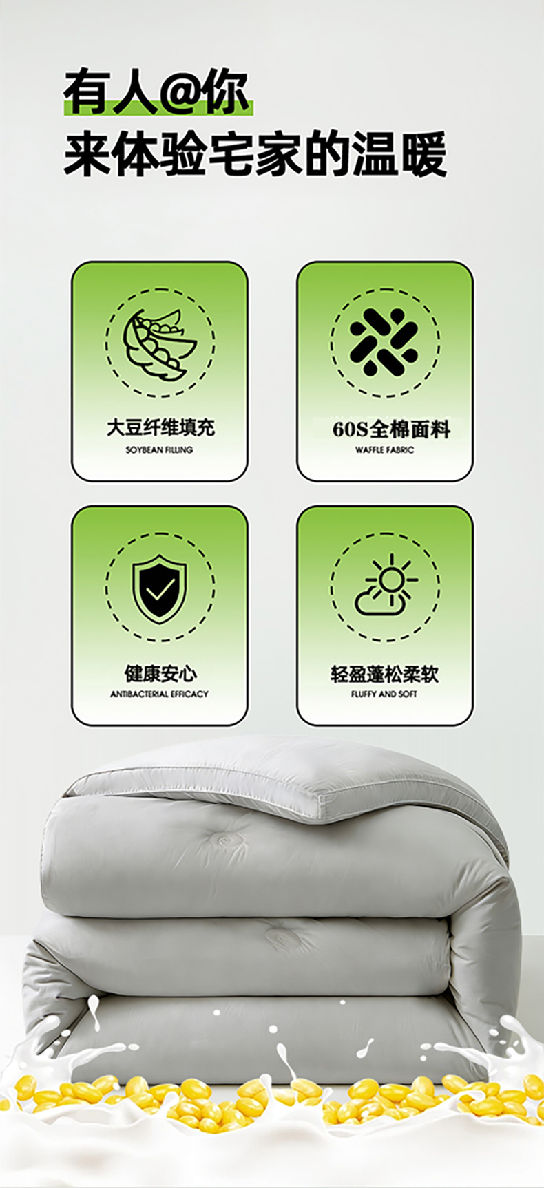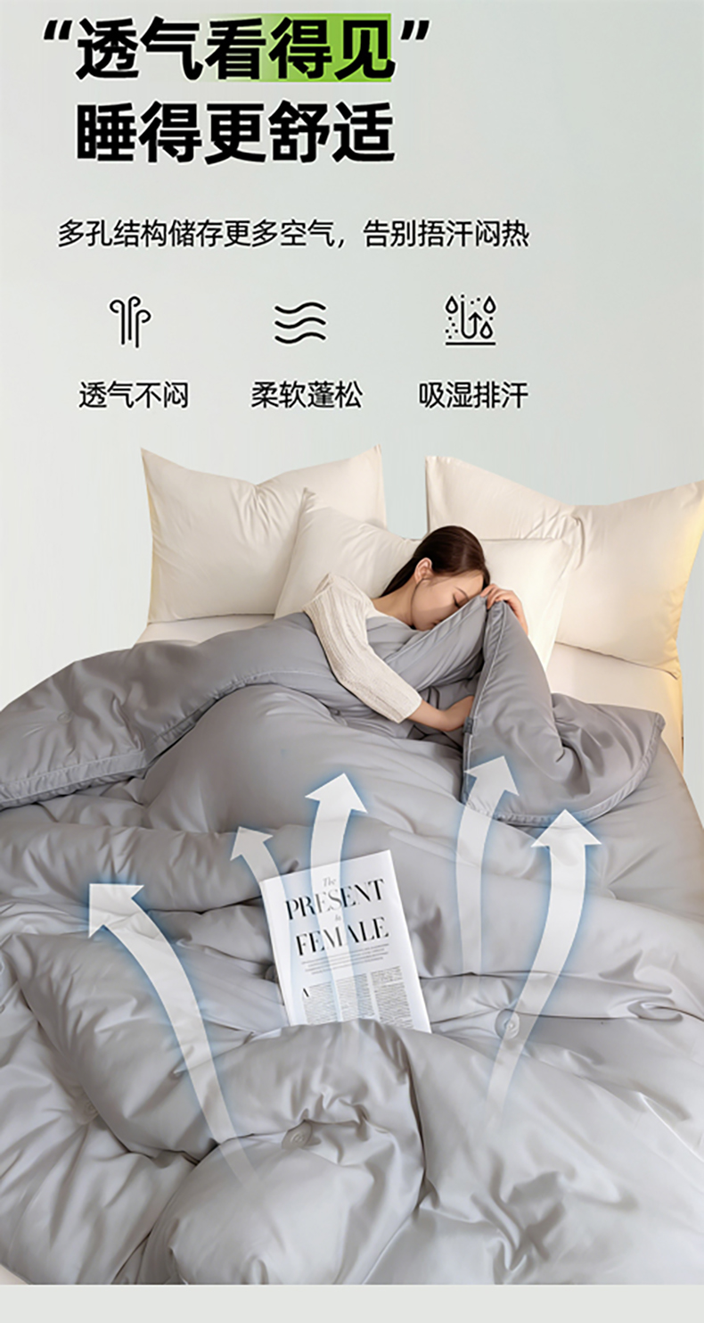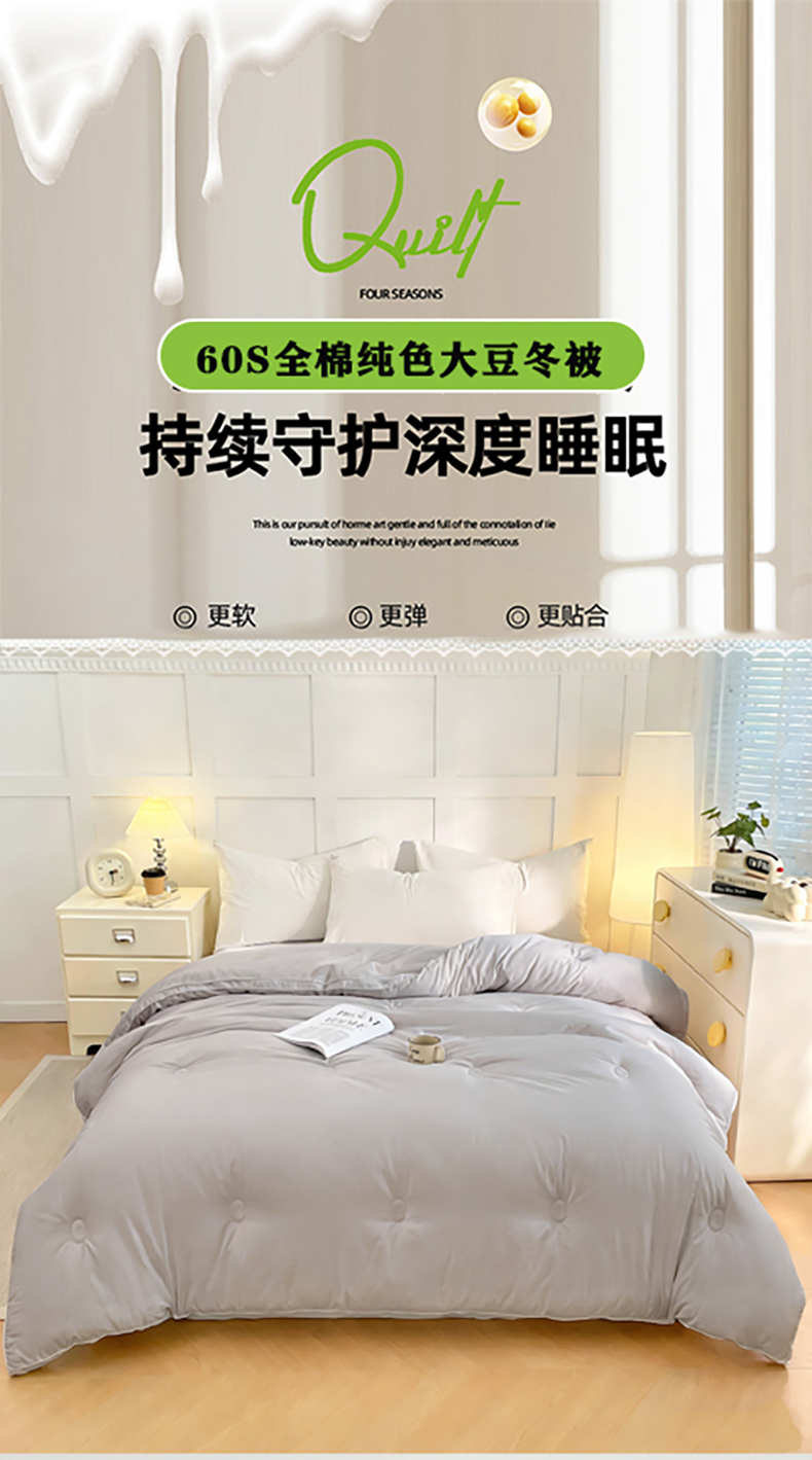 • 91家纺网 家纺一手货源 找家纺 VIP被业 2025新款60S立体全棉大豆被子被芯 灰色
