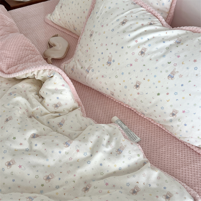 商品名称:荣轩 2025秋冬必备新品棉加绒华夫格提花绒工艺款四件套(铺床版)星空派对