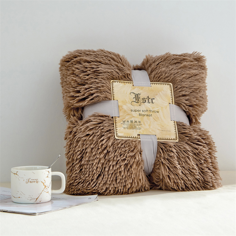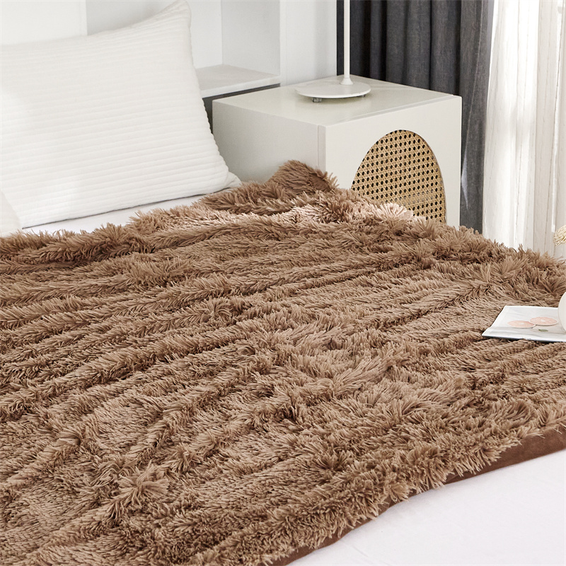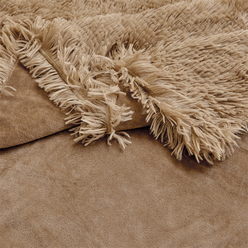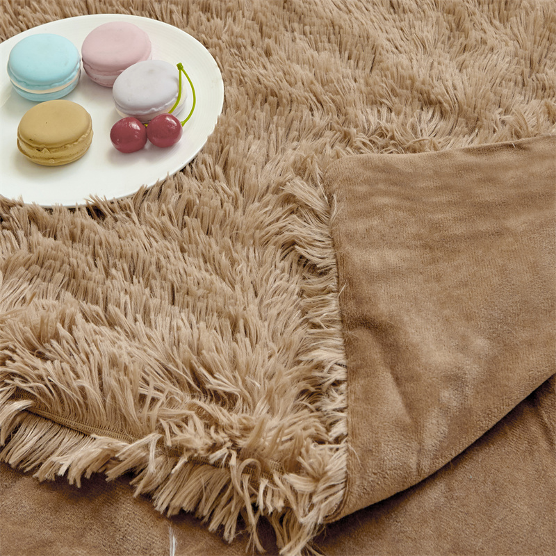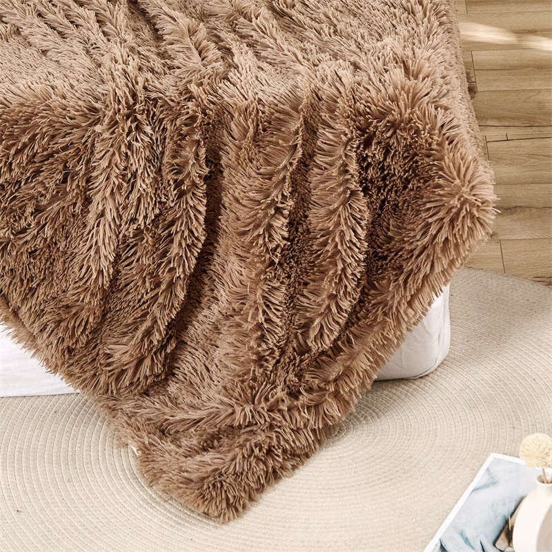 品尚嘉2025水貂绒毛毯长毛绒法莱绒双层跨境外贸毯子 卡其色