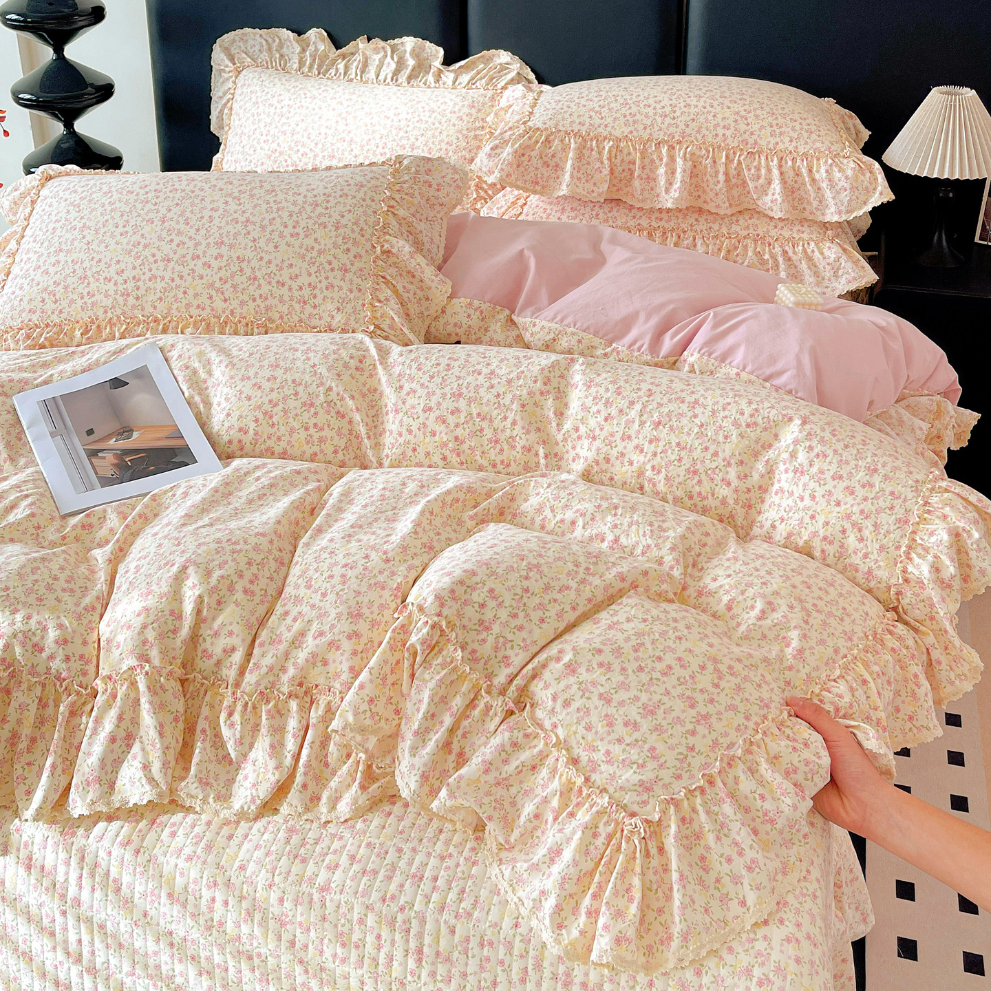商品名称:富米莱单品馆 2026新款法式大花边A类古法仿棉云感纱单被套 大花边-粉花柔卧