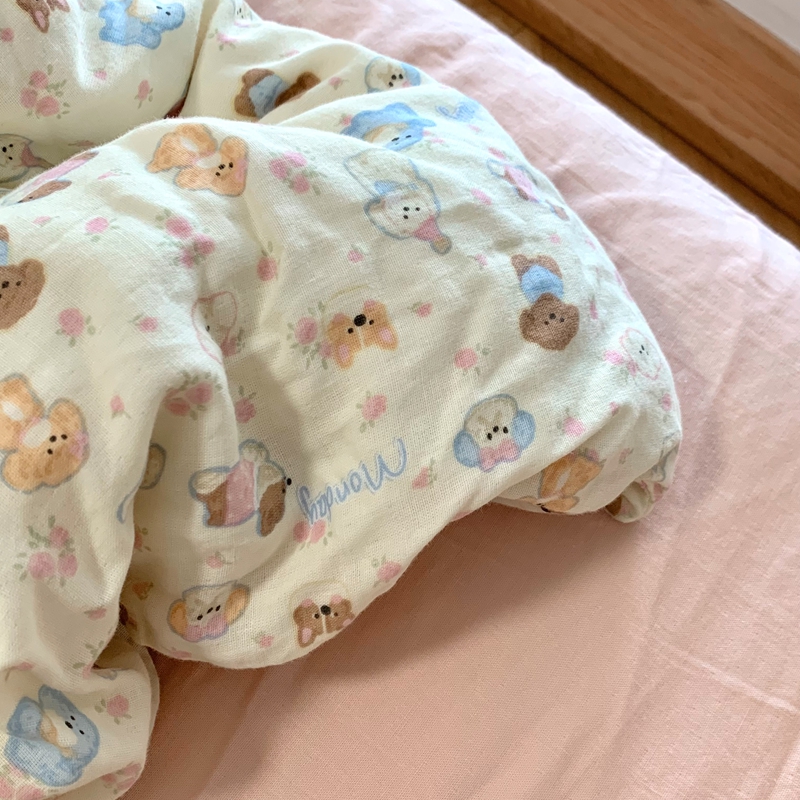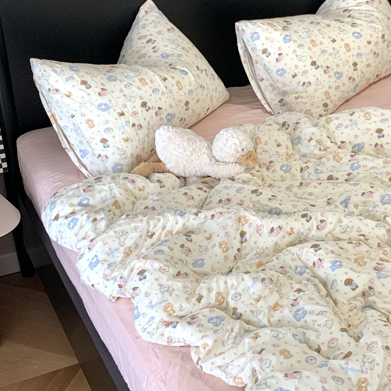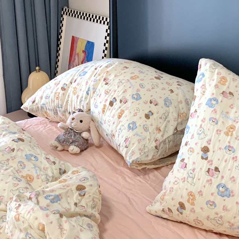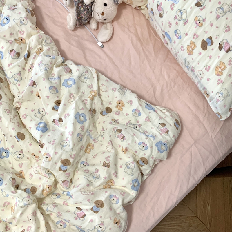 商品名称:源启生活 2025新款A类全棉双层纱四件套 奶芙狗粉