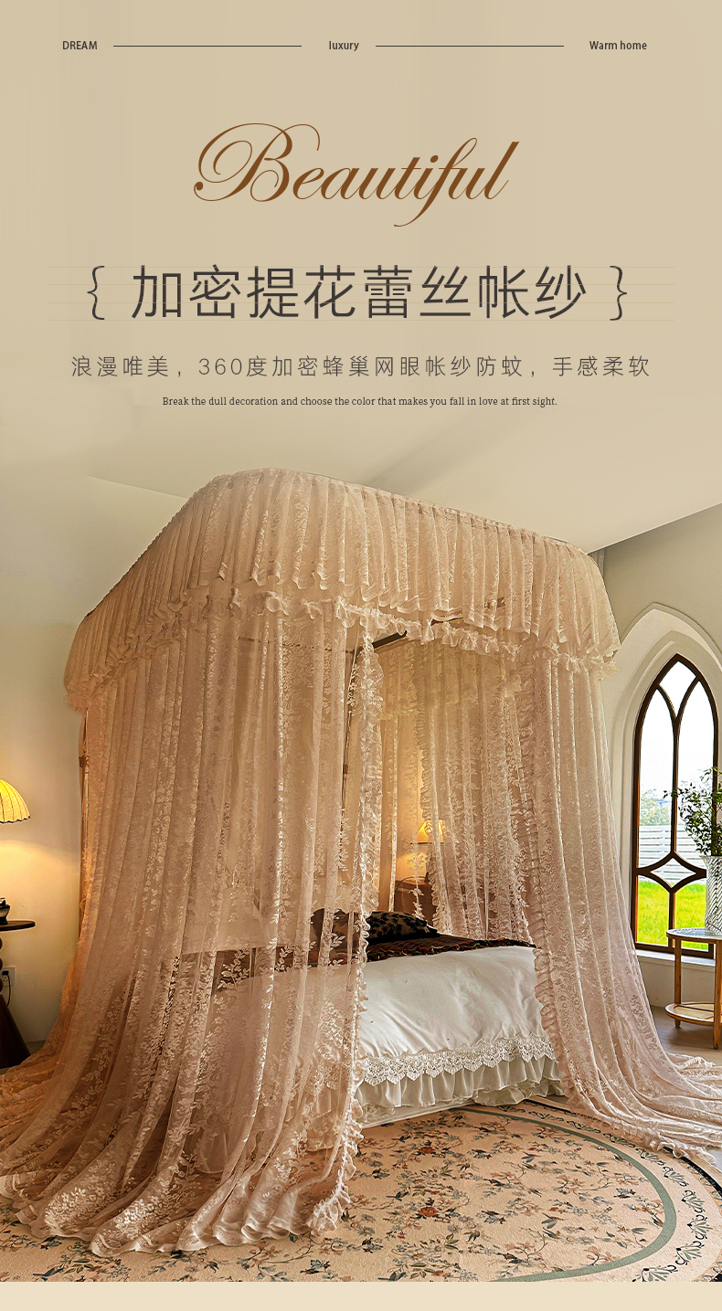 当前位置: 91家纺网 > 商品网购 > 床上用品 > 蚊帐 > 导轨蚊帐 > 都市缘蚊帐 2026新款303欧式浪漫导轨蕾丝提花蚊帐 303玫瑰庄园-奶油香槟