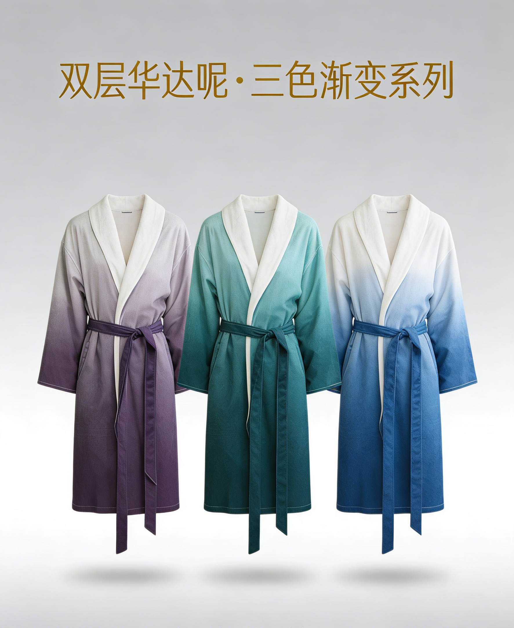 当前位置: 91家纺网 > 商品网购 > 居家日用 > 毛巾/浴巾/浴袍 > 浴裙/浴袍/浴衣 > 安力森/诚臻酒店用品 2025新款情侣款渐变色双层华达呢浴袍青果领加厚保暖男女秋冬酒店品质长款睡袍 渐变绿色情侣浴袍