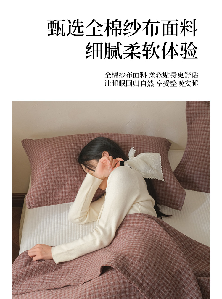 (总)沐瑟家纺 2025新款简约风多功能纱布盖毯纱布毯子毛巾被床盖沙发巾单毯枕巾枕套三件套,H本色,H橙色,H咖色,大马士革本色