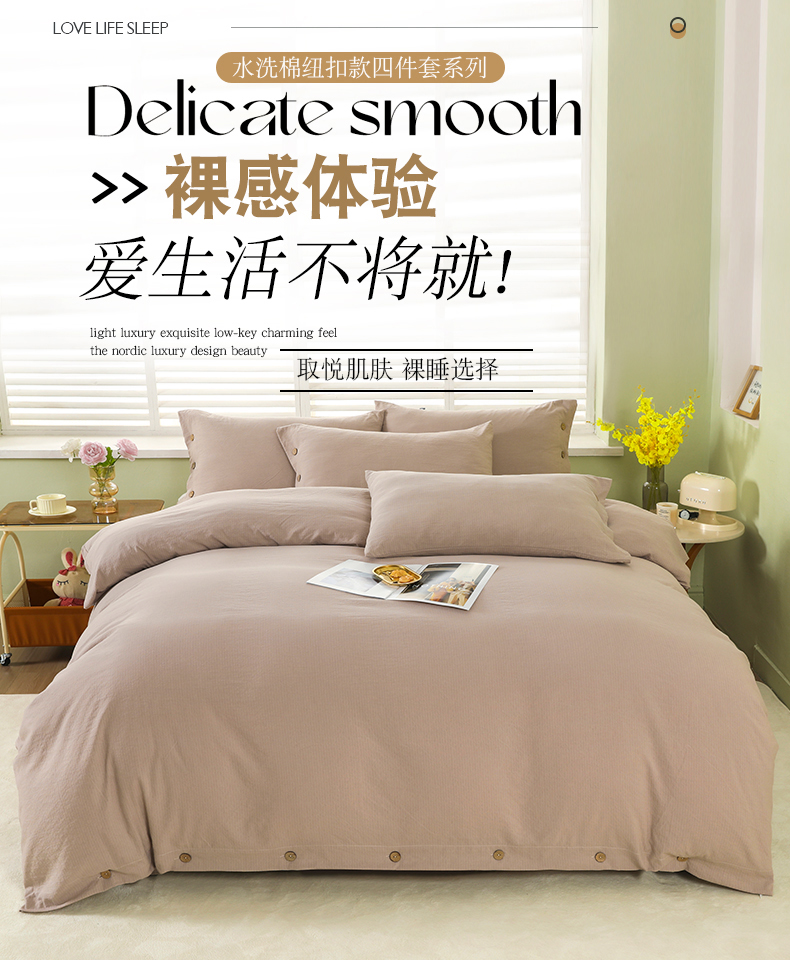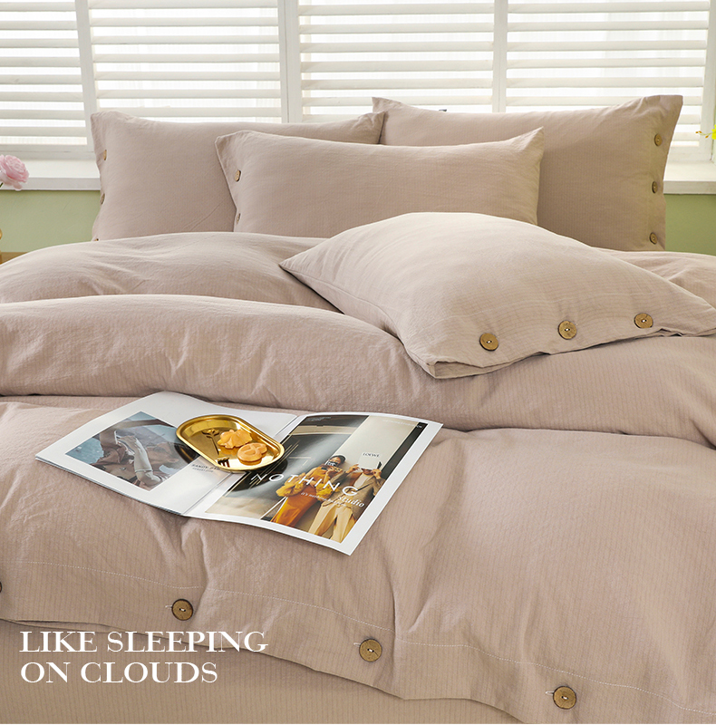 博婷 2026新款水洗棉麻皱皱纱纽扣工艺款四件套 浅咖