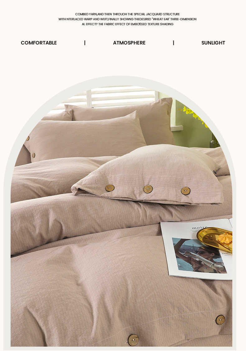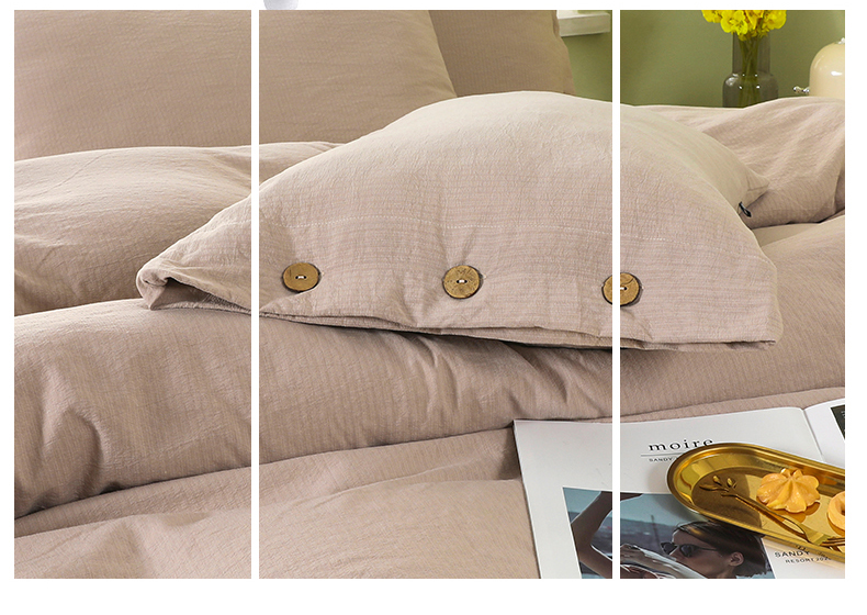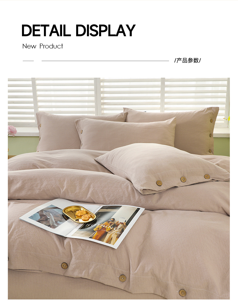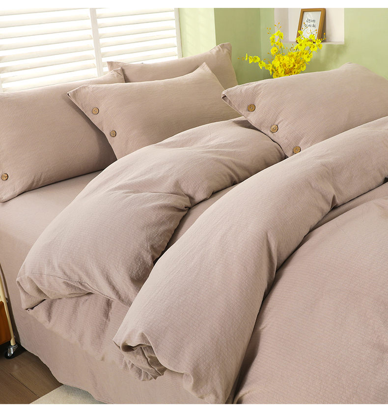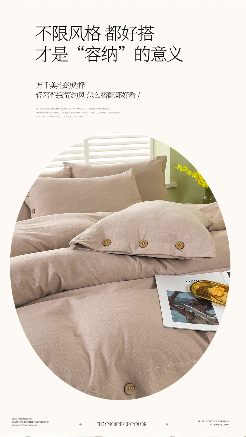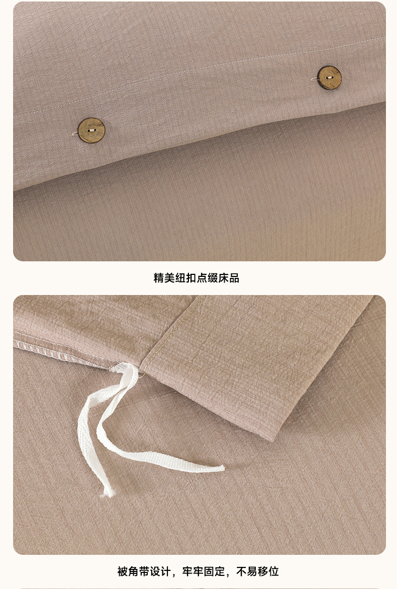 商品名称:博婷 2026新款水洗棉麻皱皱纱纽扣工艺款四件套 浅咖