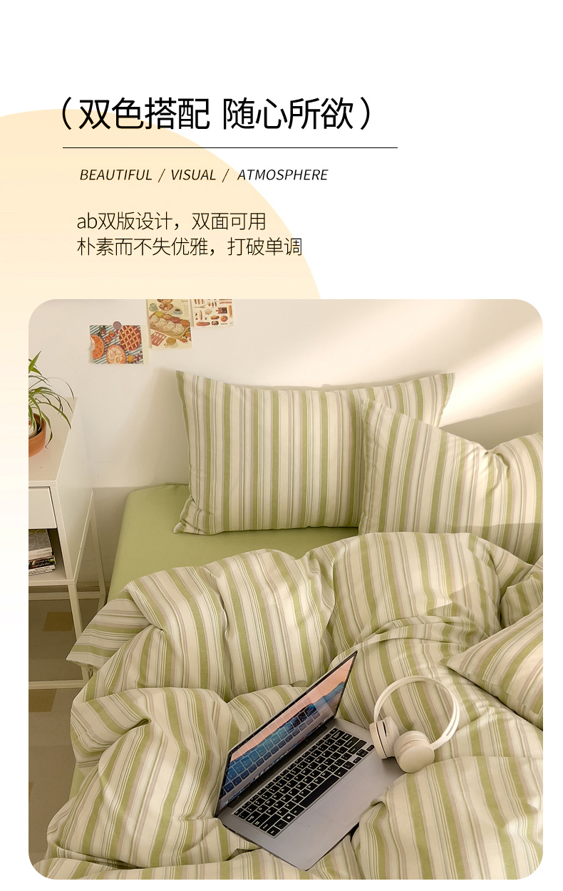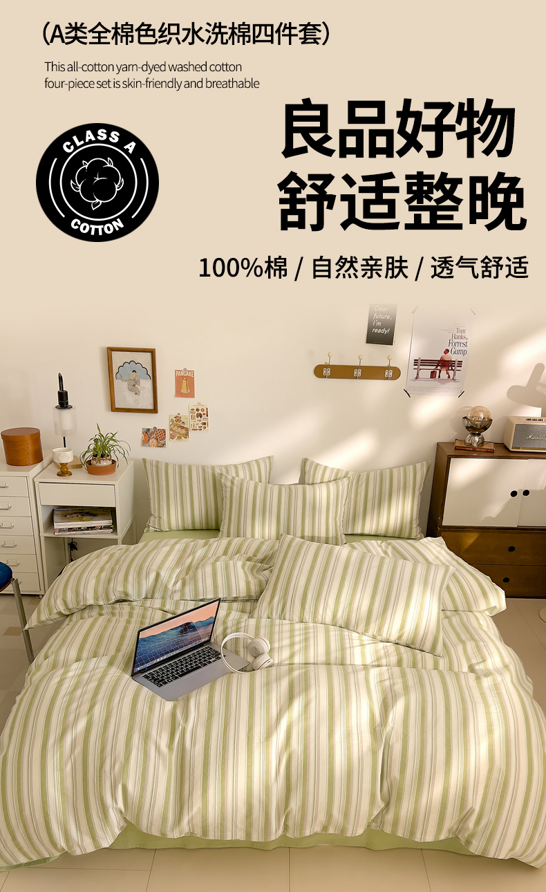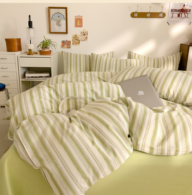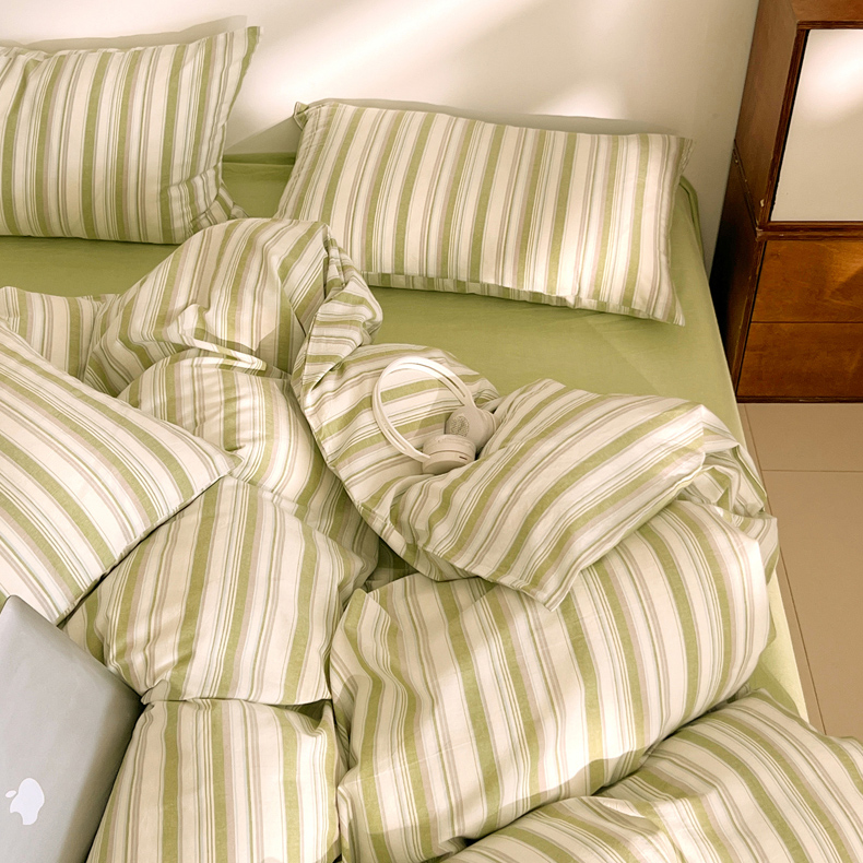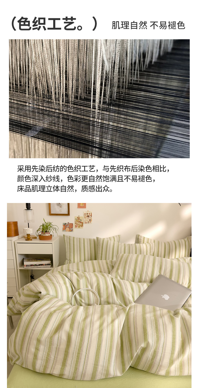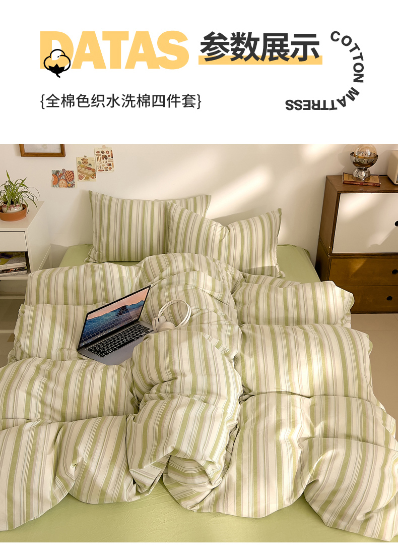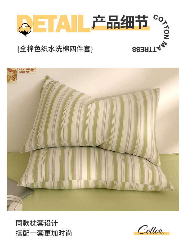 当前位置: 91家纺网 > 商品网购 > 床品套件 > 四件套 > 全棉普通四件套 > DoDo 兜兜 2026新款全棉纯棉A类条格水洗棉四件套-可定做尺寸 左岸-绿