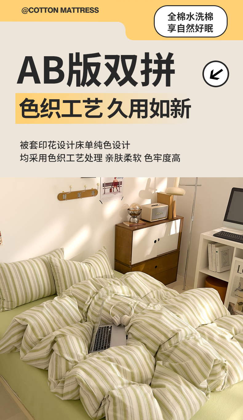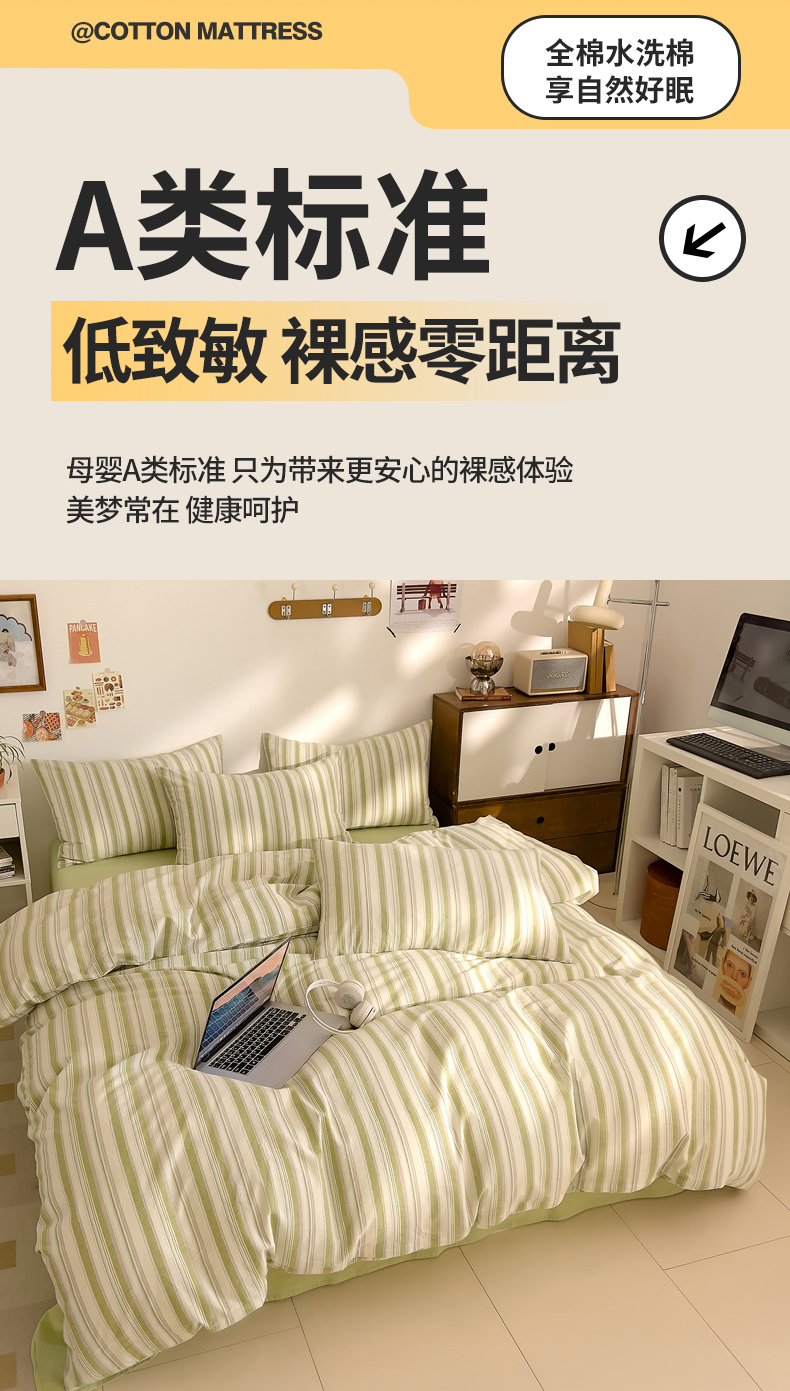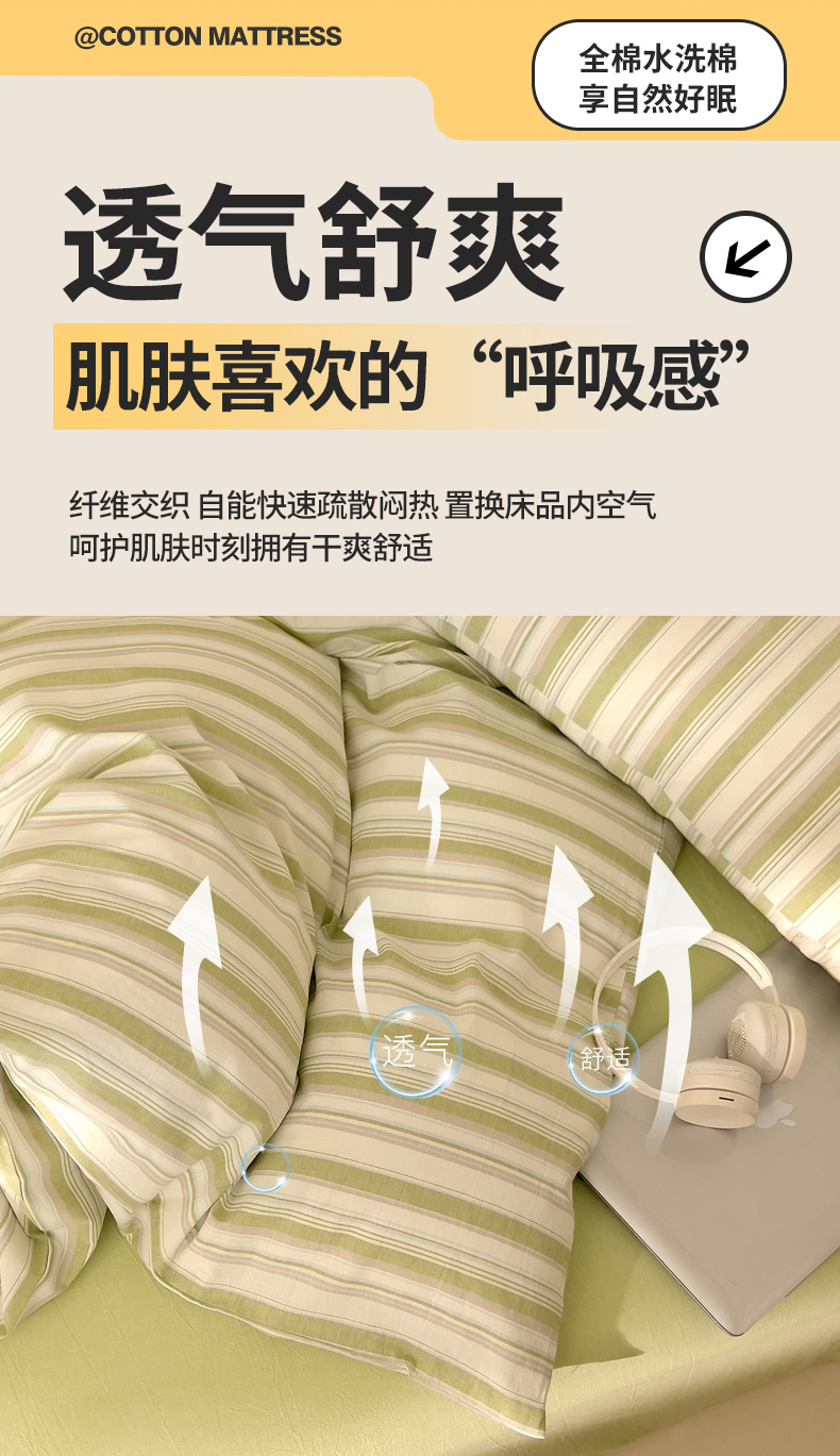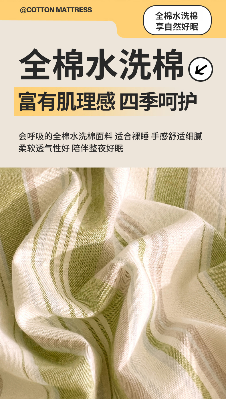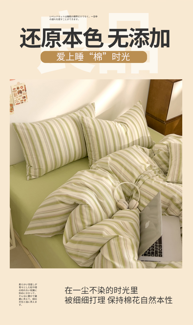 当前位置: 91家纺网 > 商品网购 > 床品套件 > 四件套 > 全棉普通四件套 > DoDo 兜兜 2026新款全棉纯棉A类条格水洗棉四件套-可定做尺寸 左岸-绿