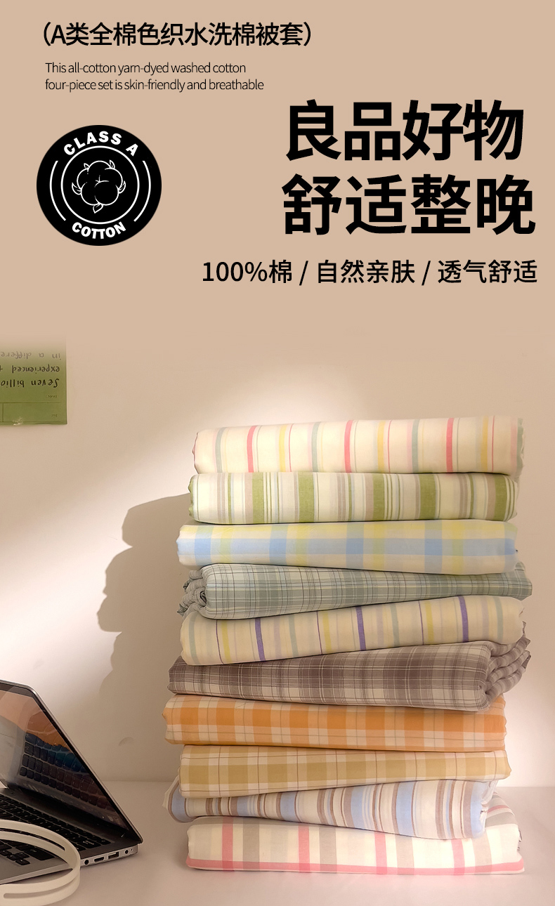 (总)DoDo 兜兜 2026新款全棉纯棉A类条格水洗棉四件套-可定做尺寸,左岸-蓝,半棠-桔,半棠-卡其,禾里-黄蓝,禾里-灰粉,可可奈-天青,可可奈-烟灰,且乐-粉,且乐-紫,左岸-绿