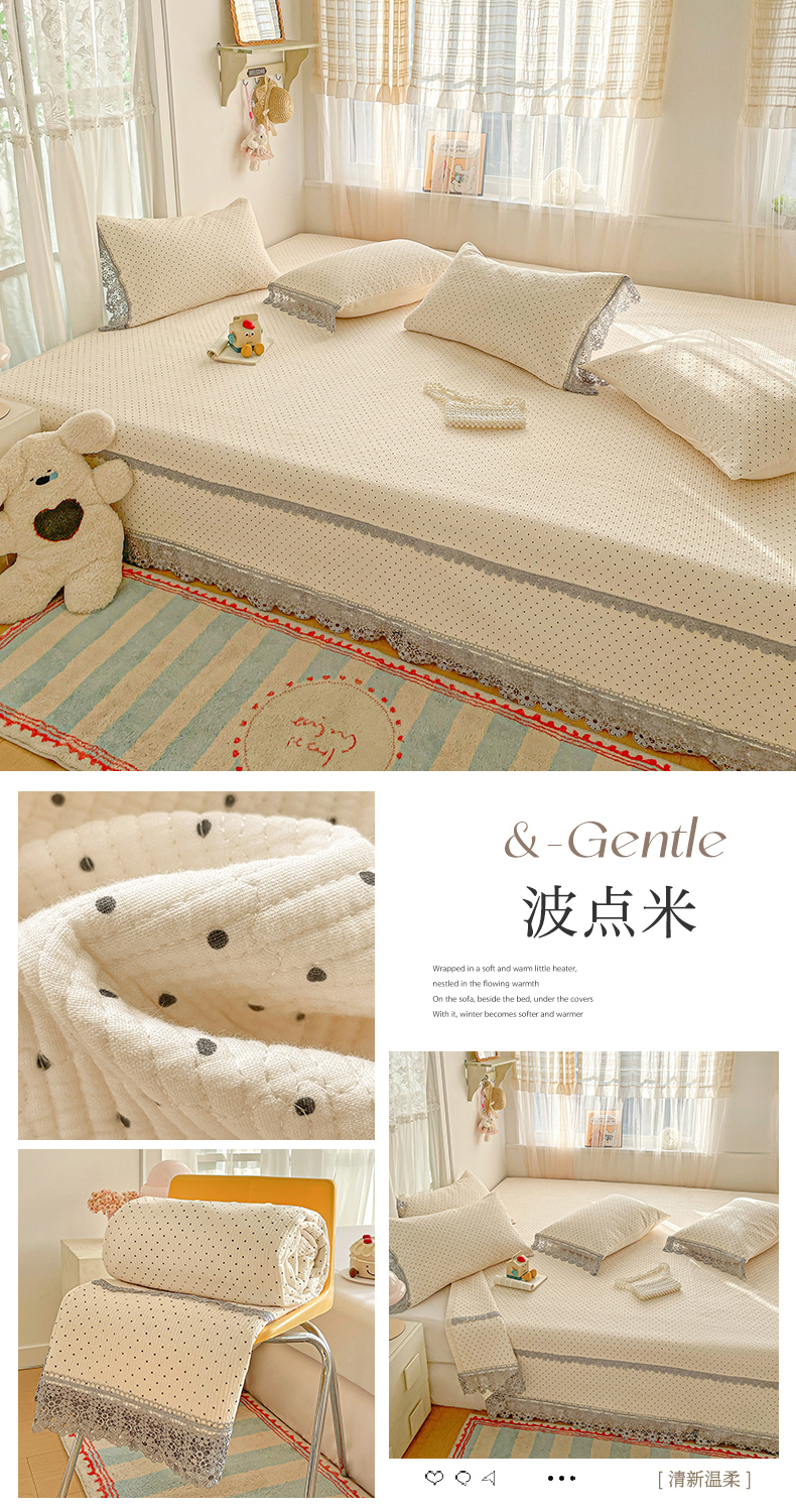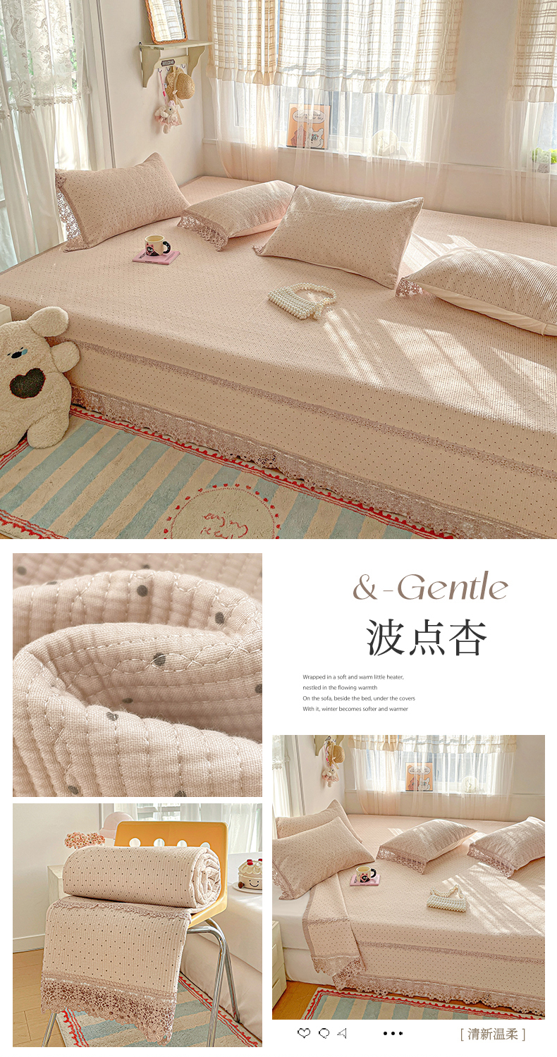 (总)栩裕纺织 2026新款全棉双层纱棉花边榻榻米炕盖款,波点粉,波点灰,波点绿,波点米,波点杏,波点紫,组合图仅供参考