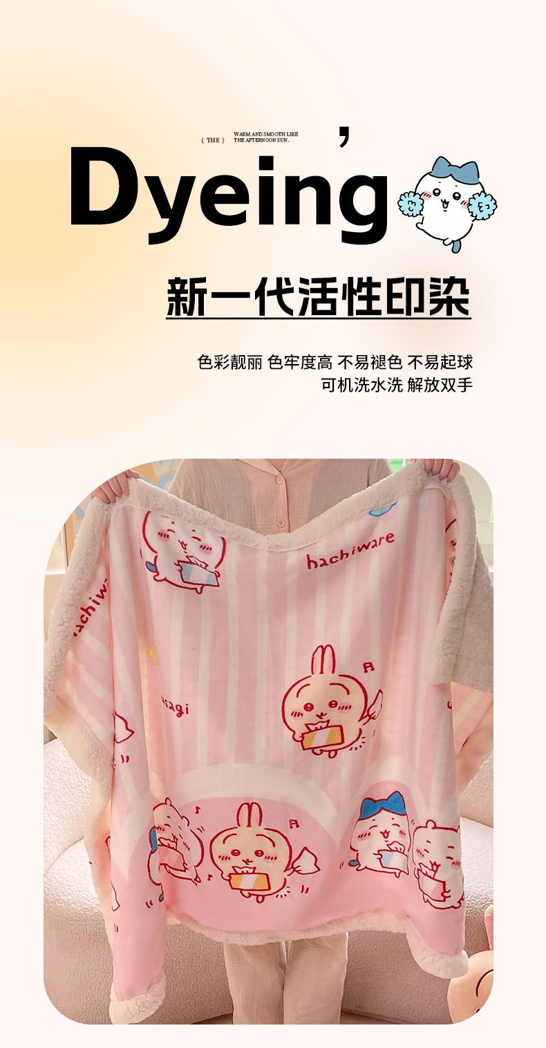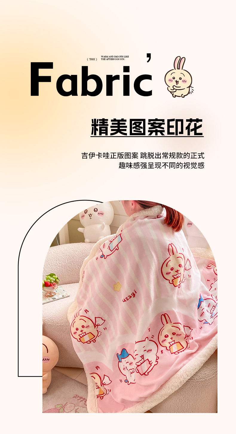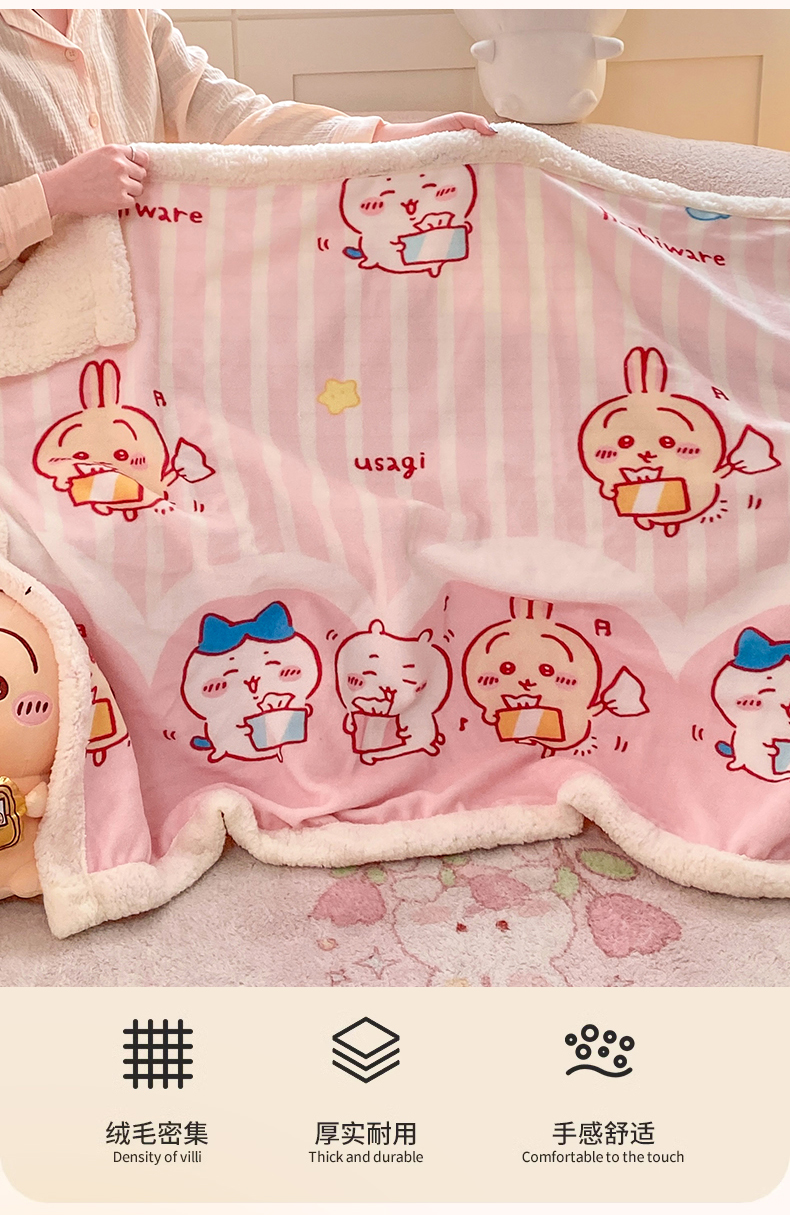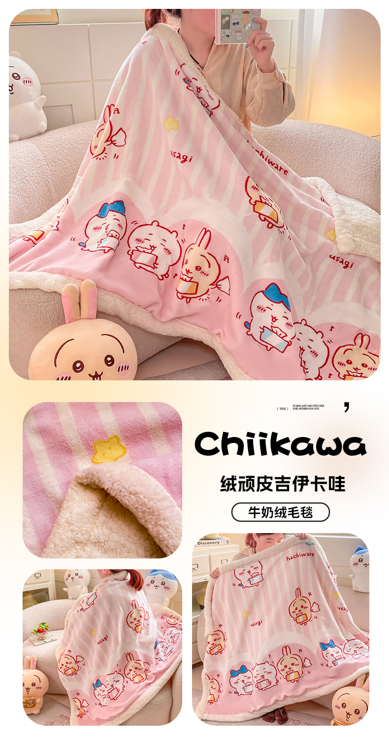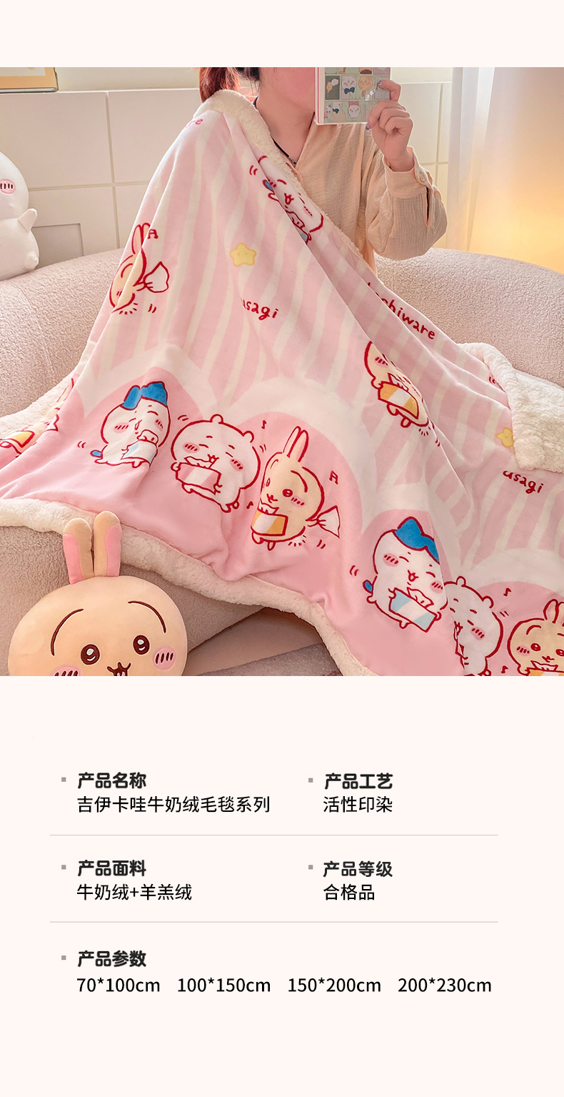 (总)博雅 2025新款吉伊卡哇正版授权高克重牛奶绒羊羔绒毛毯-开心吉伊卡哇,开心吉伊卡哇(含标)