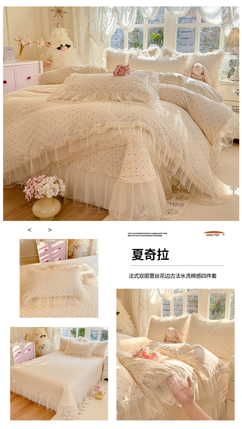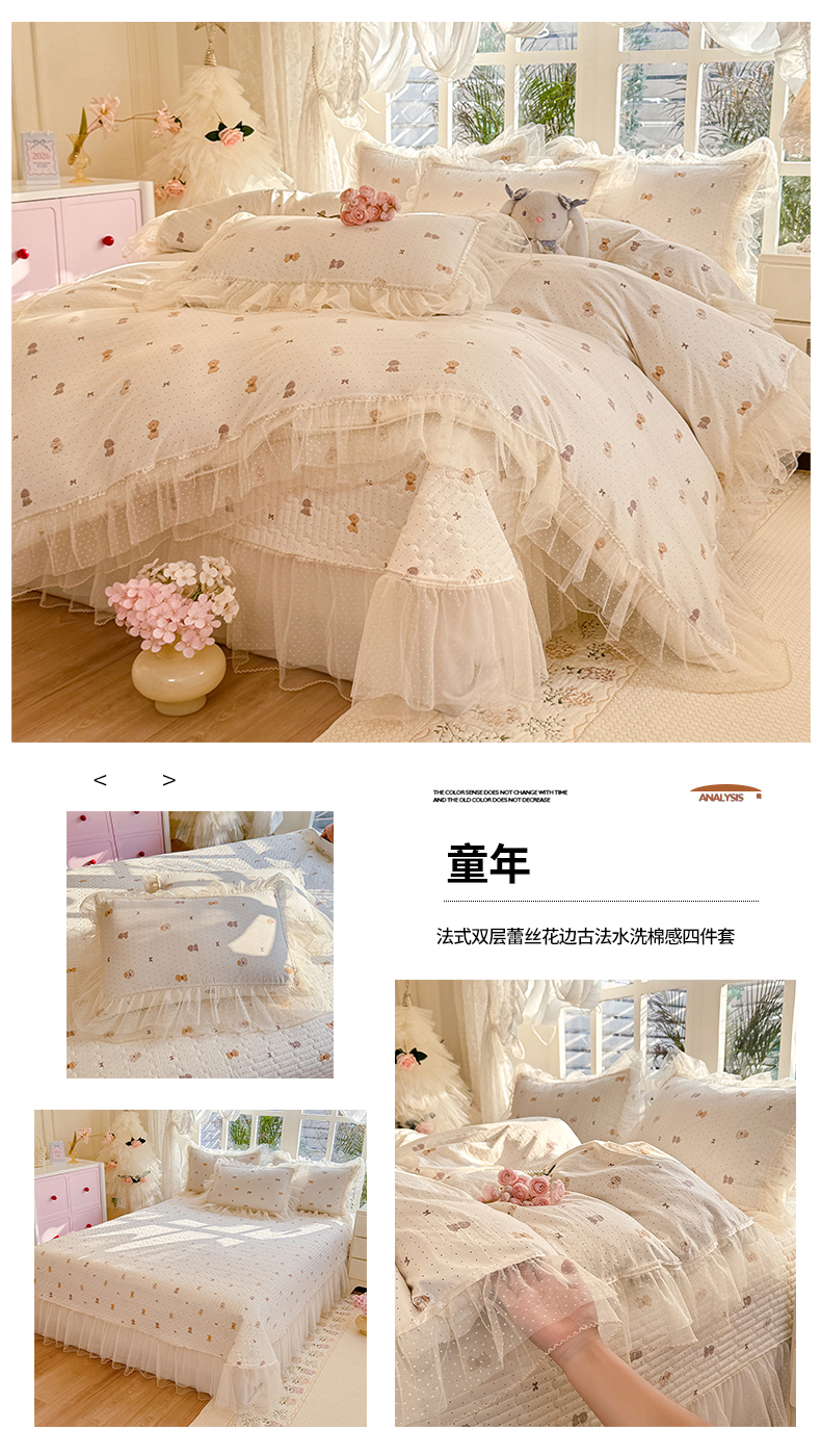 当前位置: 91家纺网 > 商品网购 > 床品套件 > 四件套 > 其它四件套 > 韩约家纺 2026新款法式双层蕾丝花边古法棉感四件套 蝶帕