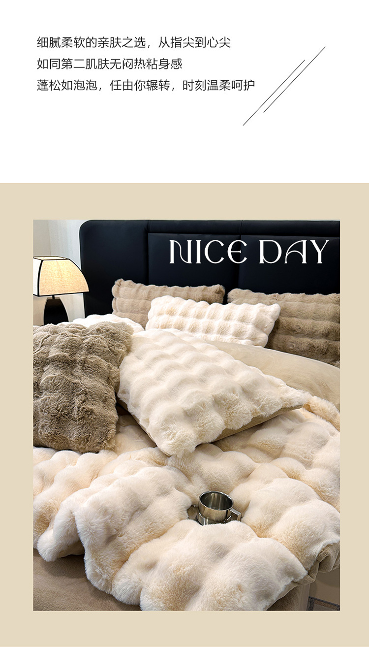(总)良品汇馆 2026新款兔毛绒四件套良品秋冬保暖绒布套件泡芙格加厚,小泡泡绒-白咖色,小泡泡绒-粉色