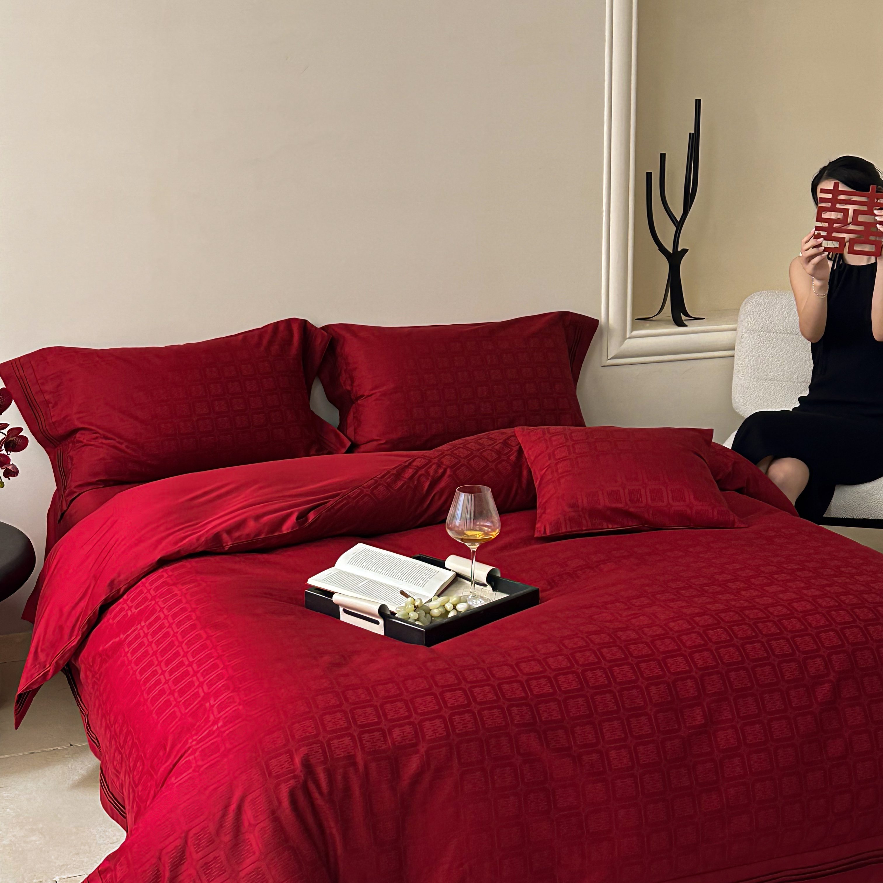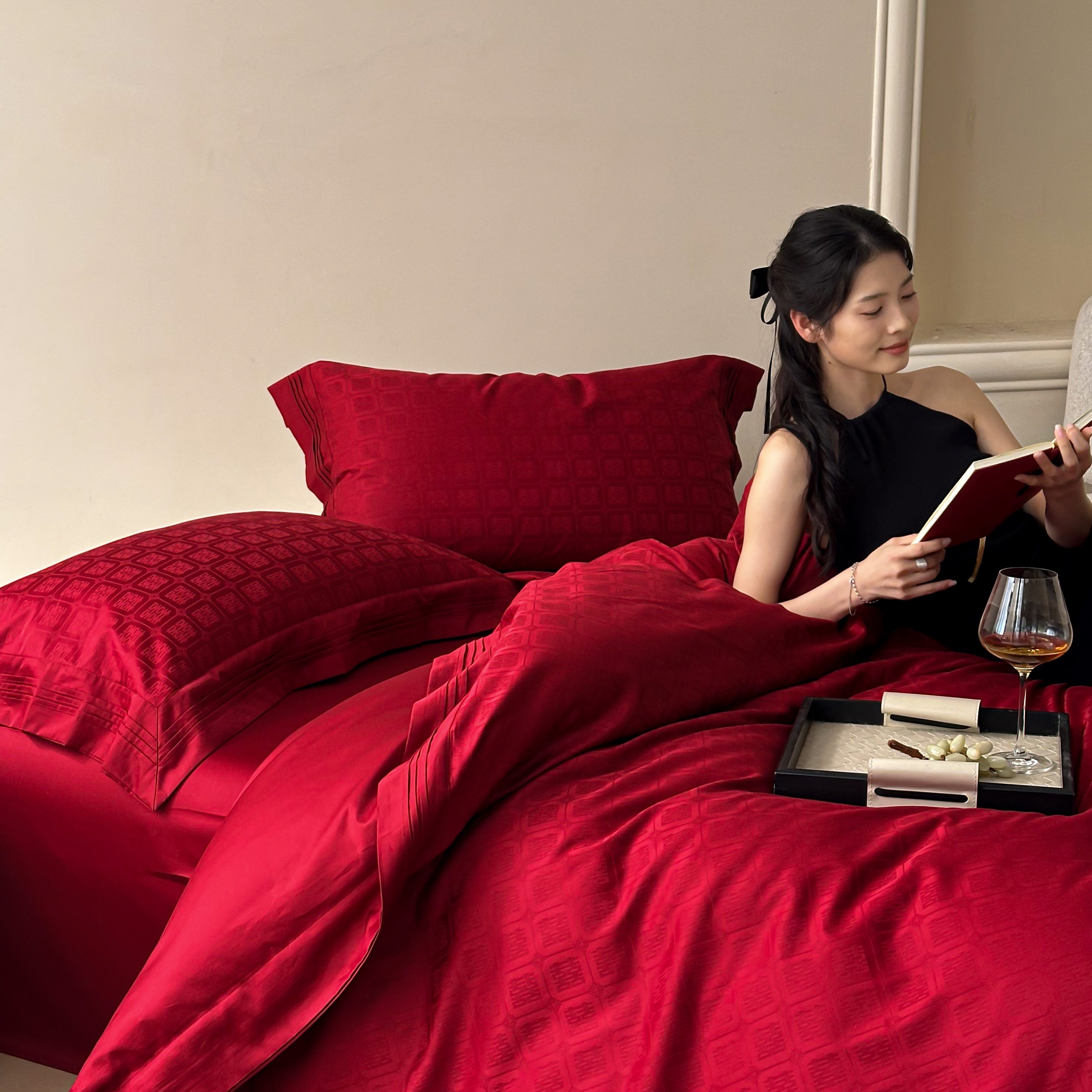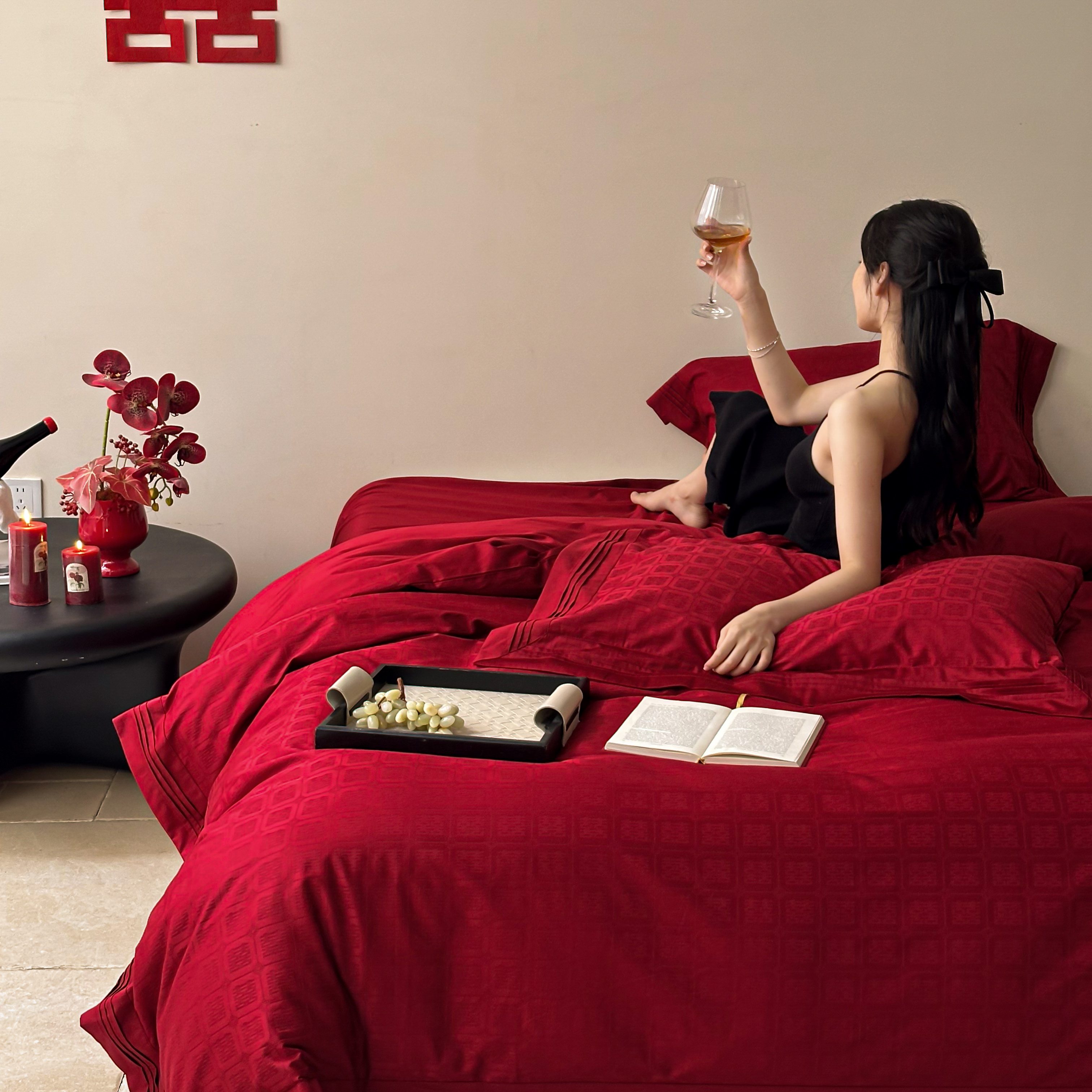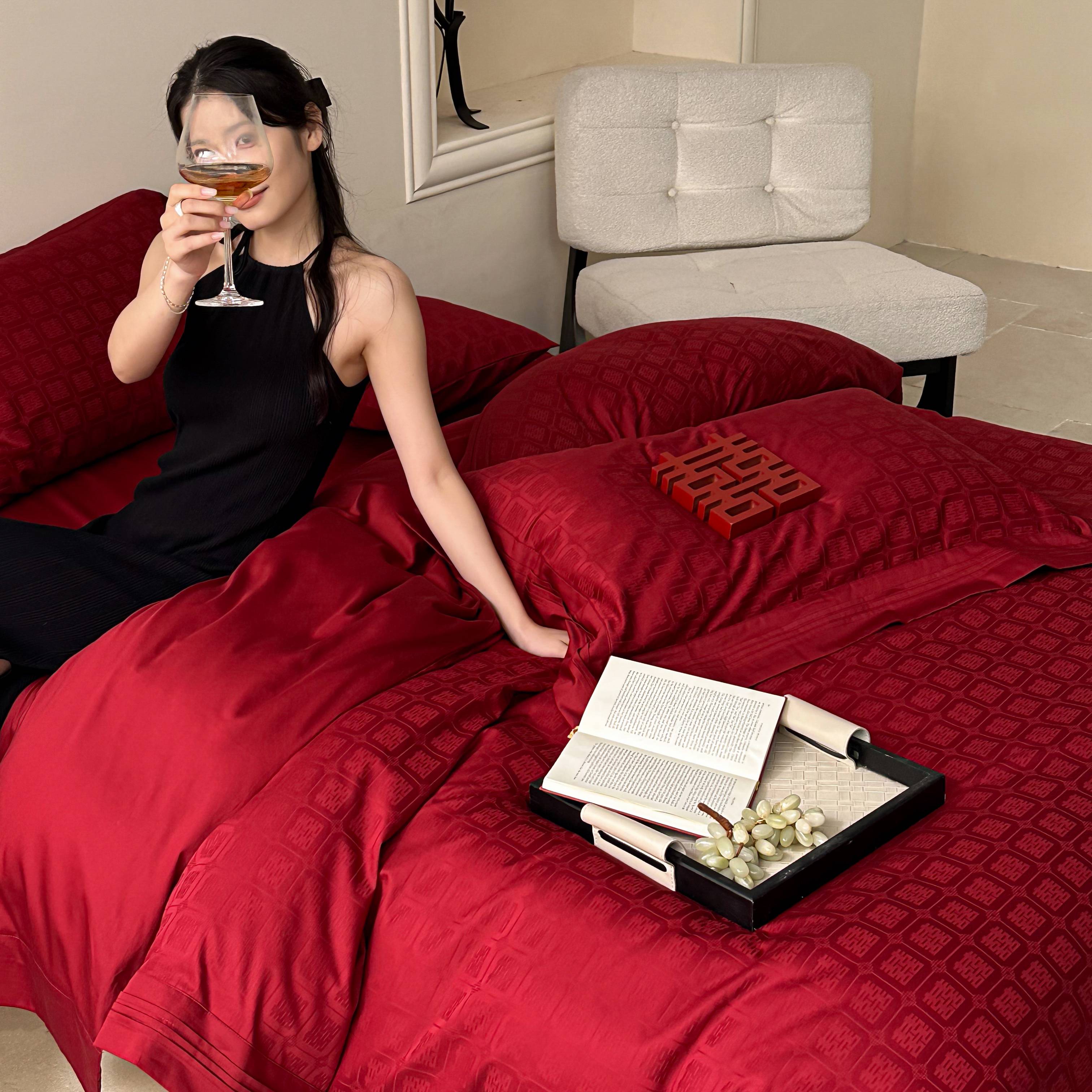 (总)优然居家纺 2025新款全棉纯棉大提花婚庆四件套-吾家有喜 会员价-20