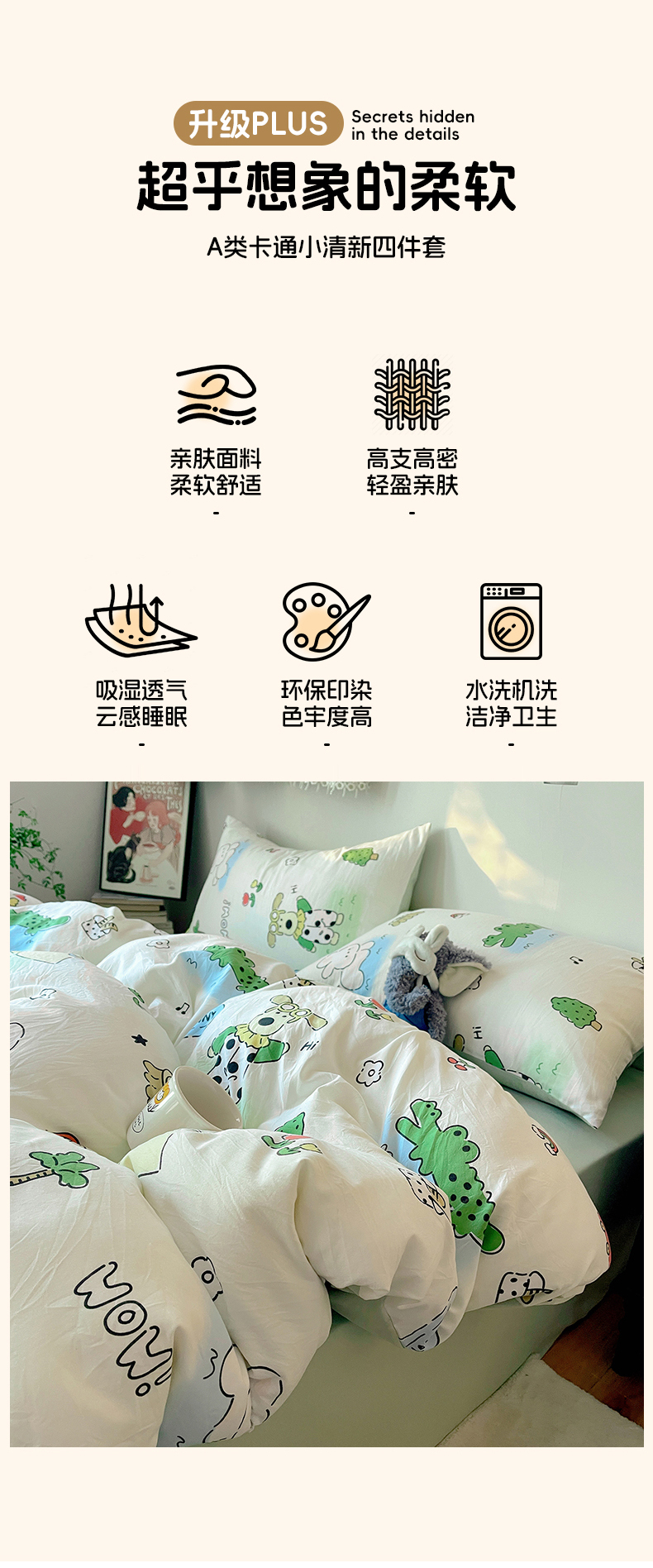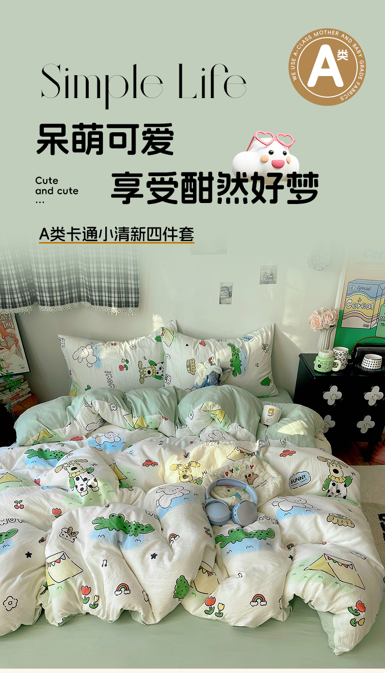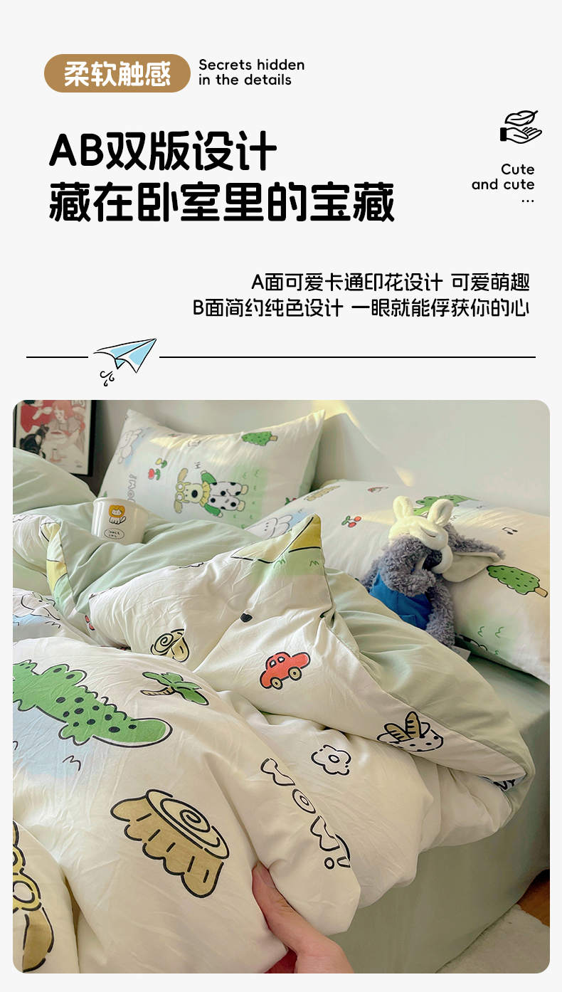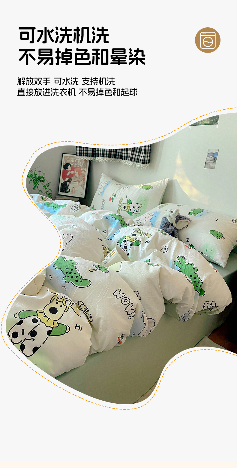当前位置: 91家纺网 > 商品网购 > 床品套件 > 四件套 > 水洗棉四件套 > 沐芷 2026 【提供买家秀】A类软糯水洗棉四件套床上宿舍三件套床单被套 动物农场