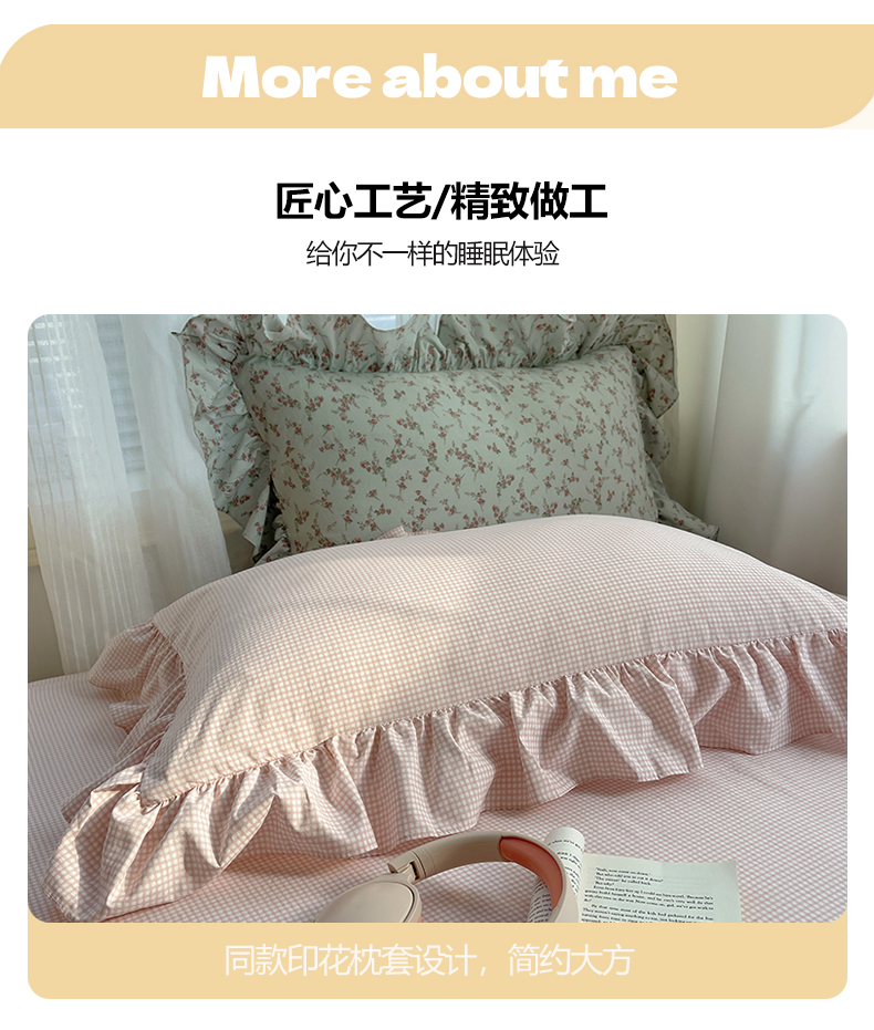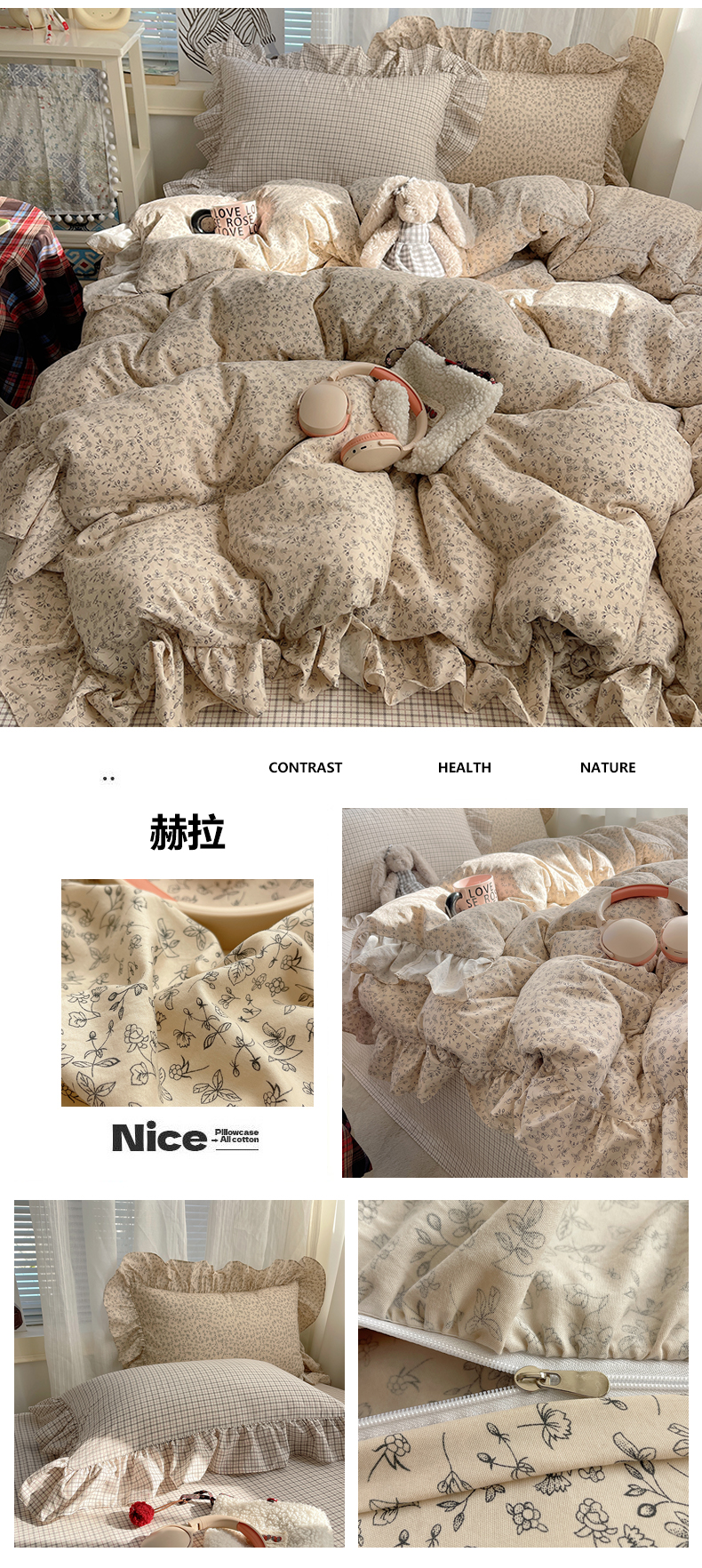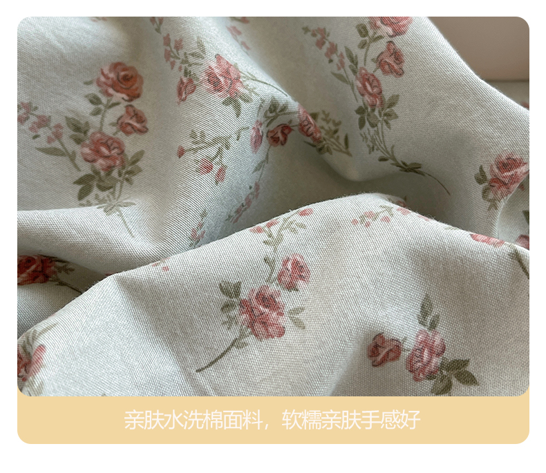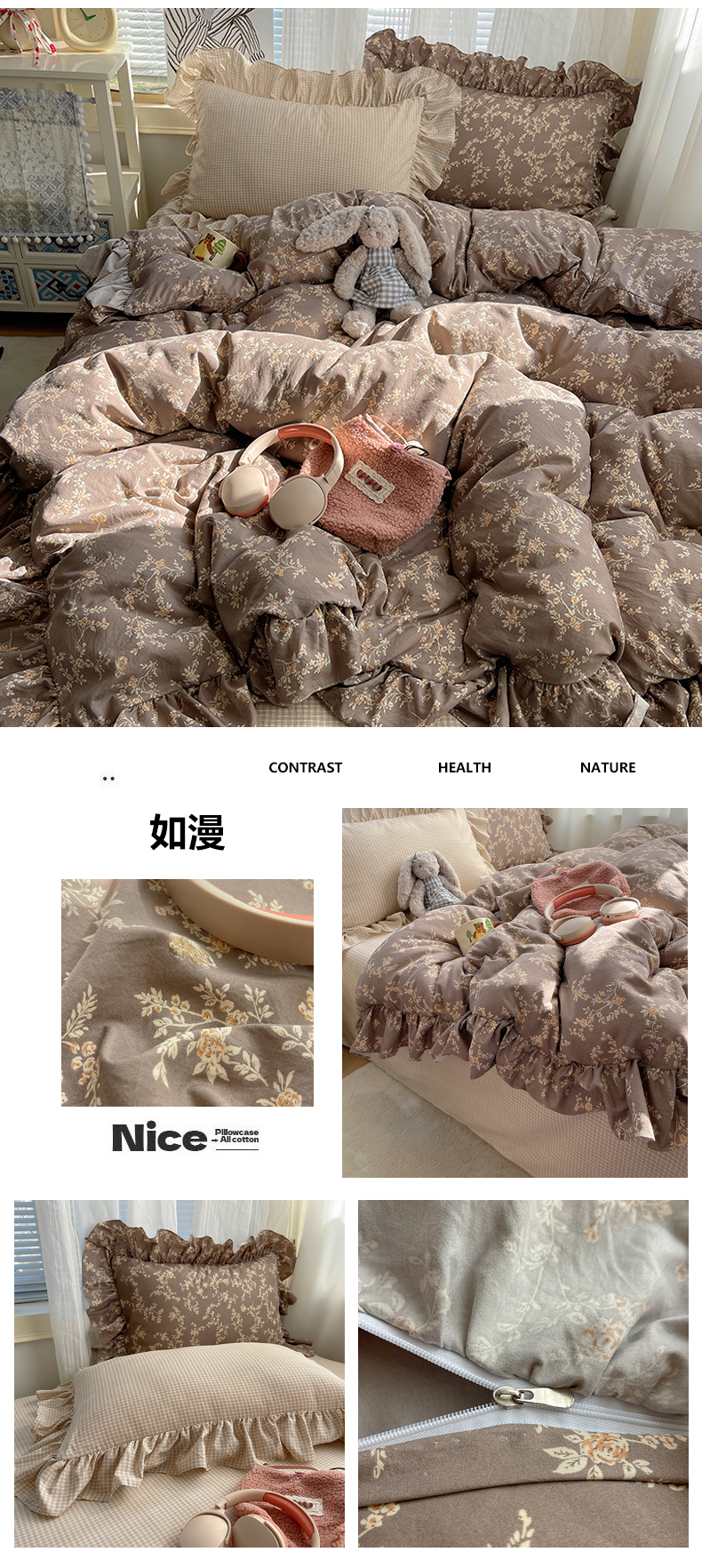 当前位置: 91家纺网 > 商品网购 > 床品套件 > 四件套 > 化纤普通四件套 > 三朵家纺 2026新款A类云柔水洗棉韩版法式花边云朵棉四件套 惜花灰绿