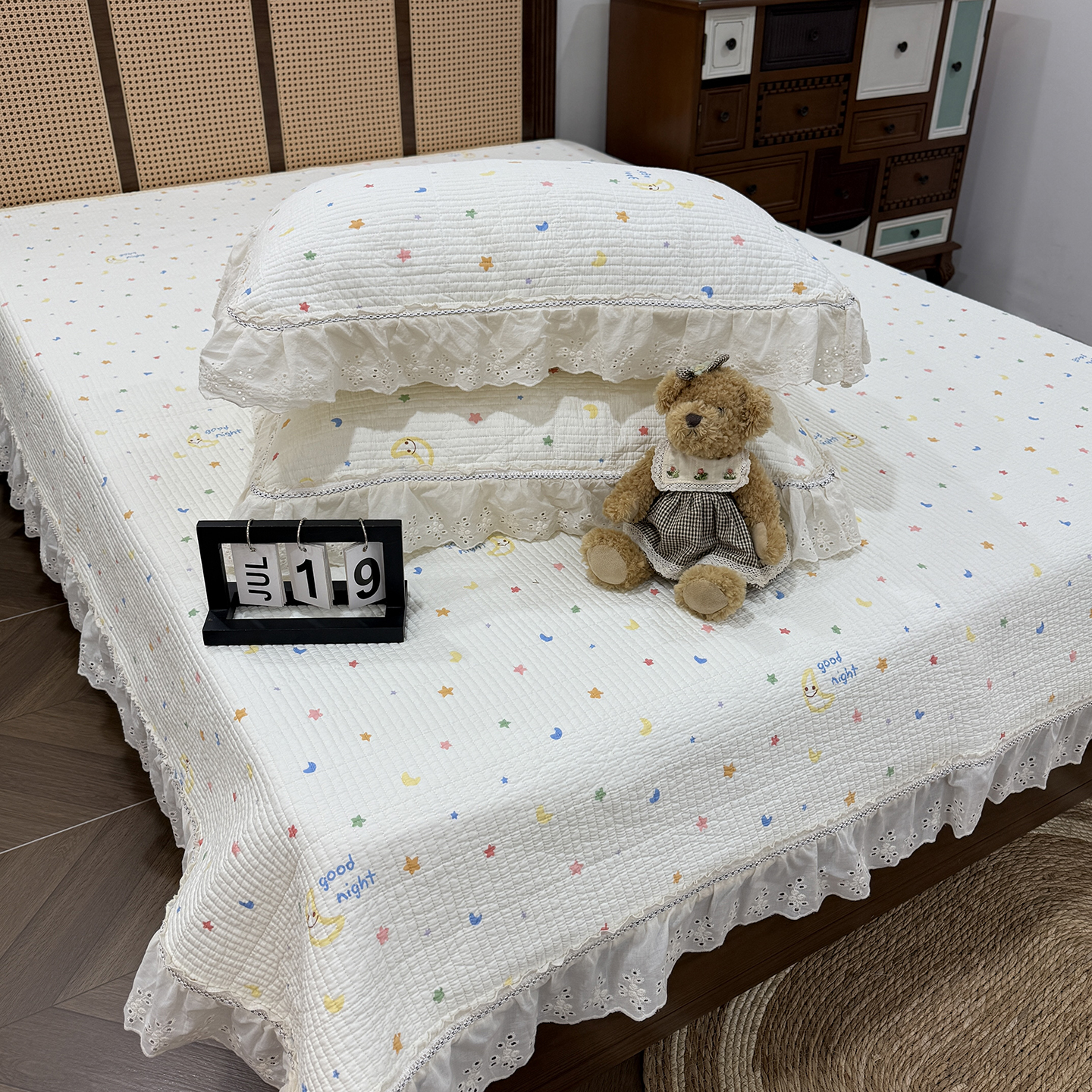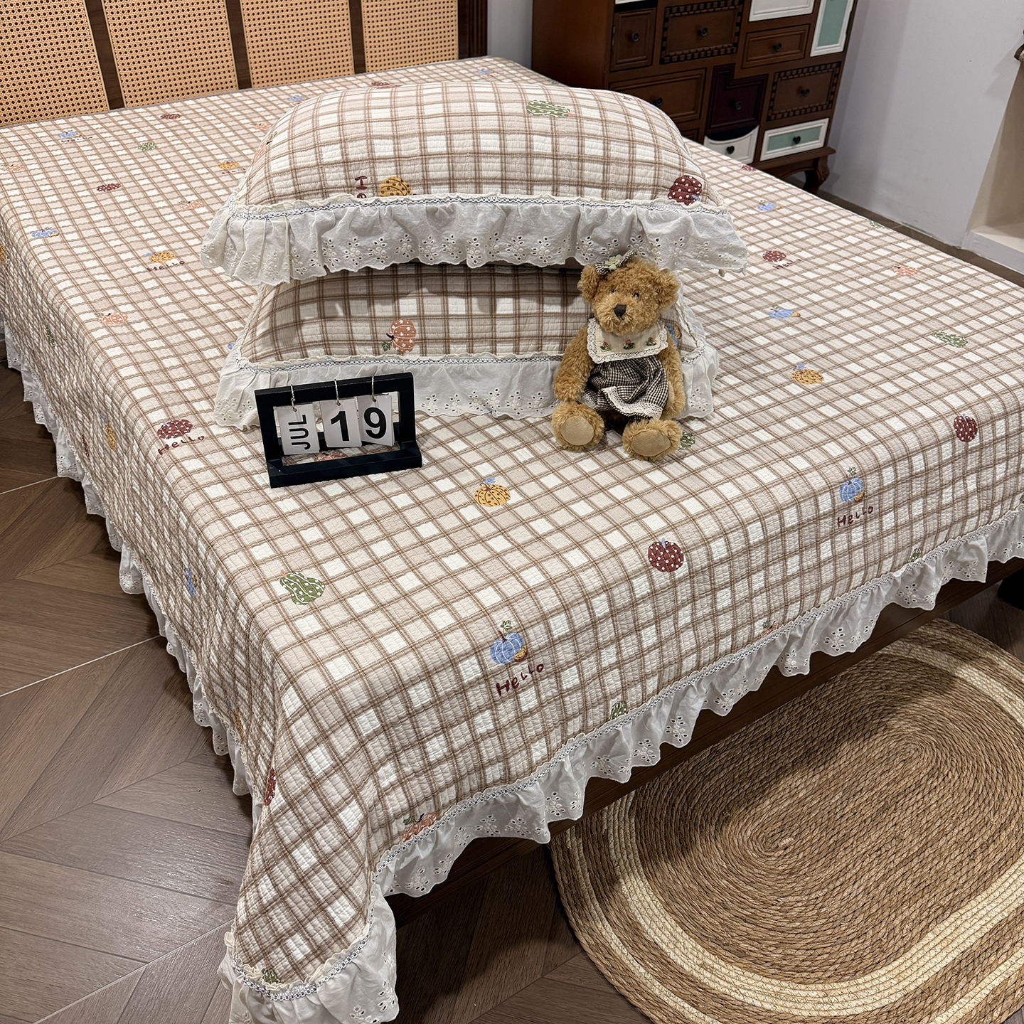 (总)欣宜家纺 2026新款法式双面全棉填充棉花加厚花边床盖三件套,阿柴小镇,哆米兔,繁星,恋恋花开-绿,魔法伙伴,南瓜绘,南瓜甜心,千禧少女-咖,芊芊花海,甜糯软糖,小马浅浅,樱桃小可-咖,游乐园
