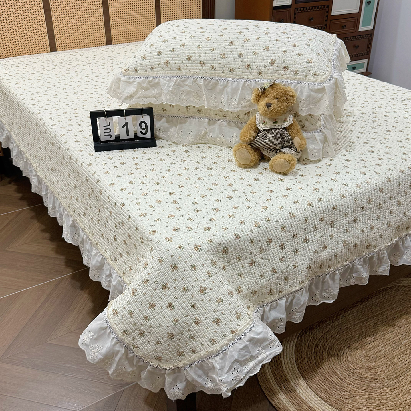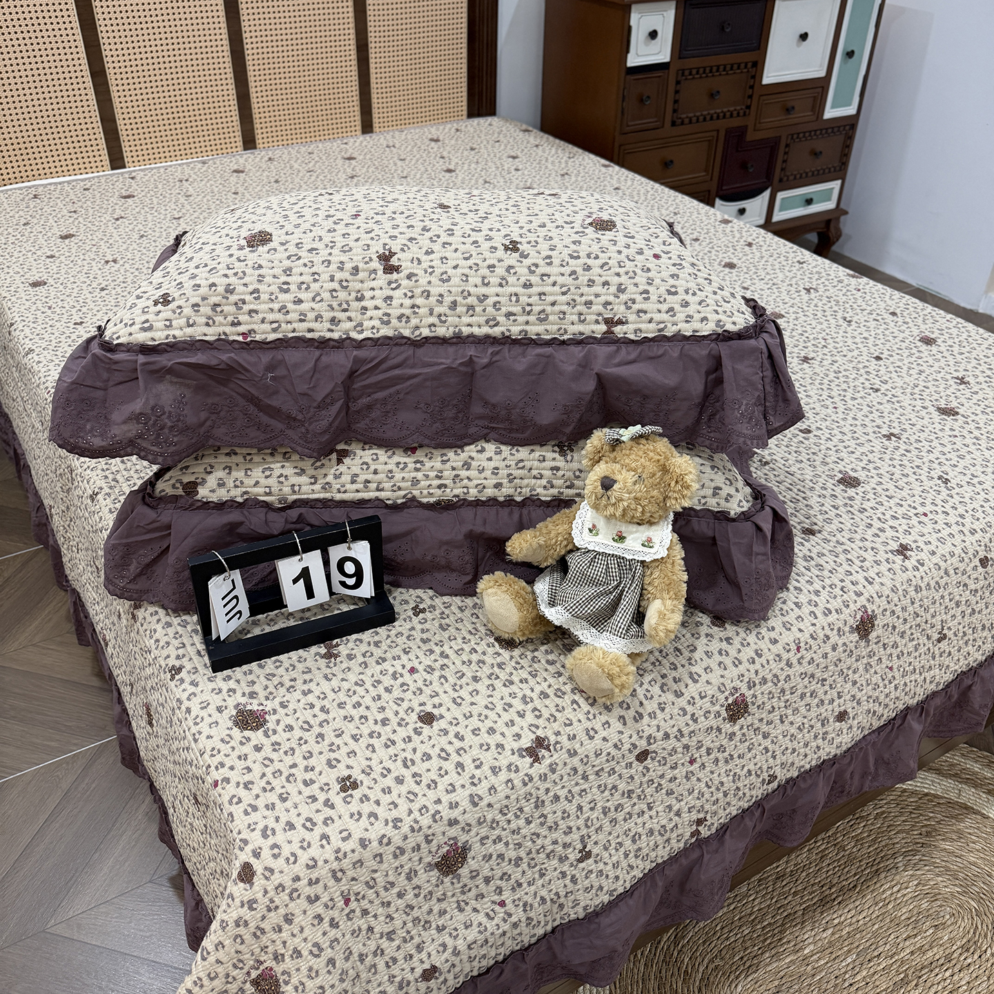 欣宜家纺 2026新款法式双面全棉填充棉花加厚花边床盖三件套 千禧少女-咖