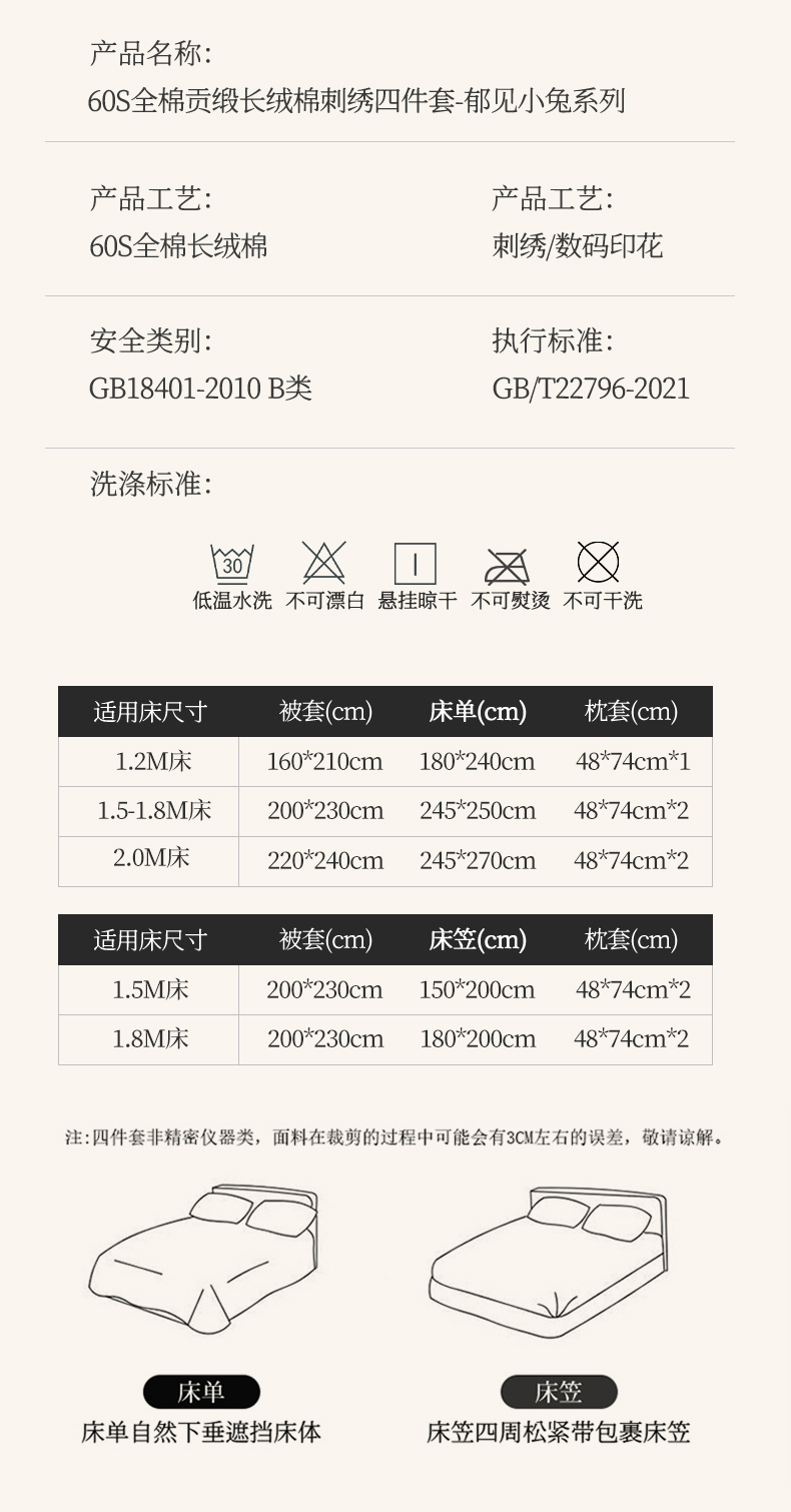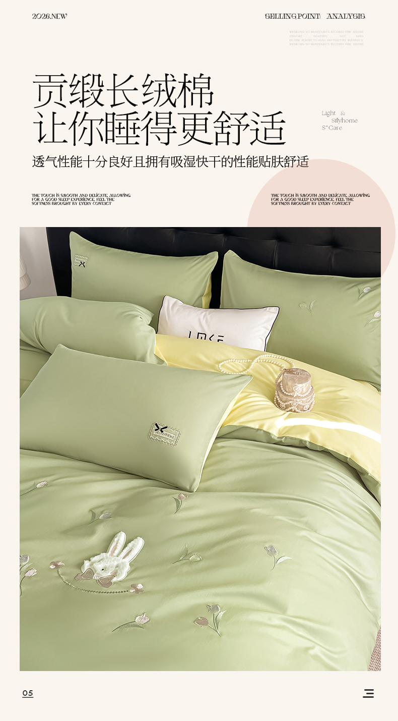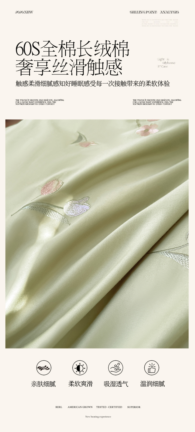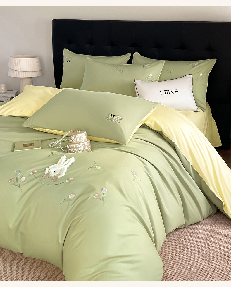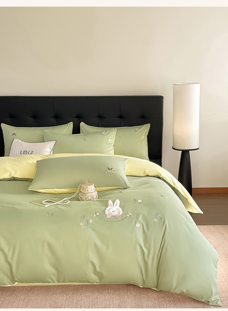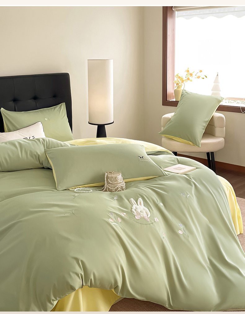 当前位置: 91家纺网 > 商品网购 > 床品套件 > 四件套 > 长绒棉四件套 > 蓝米卡夫 2026春季新款-60S长绒棉贡缎刺绣系列四件套-郁见小兔(礼盒) 郁见小兔-竹青+初黄