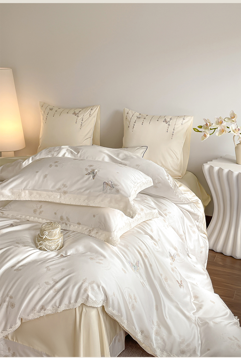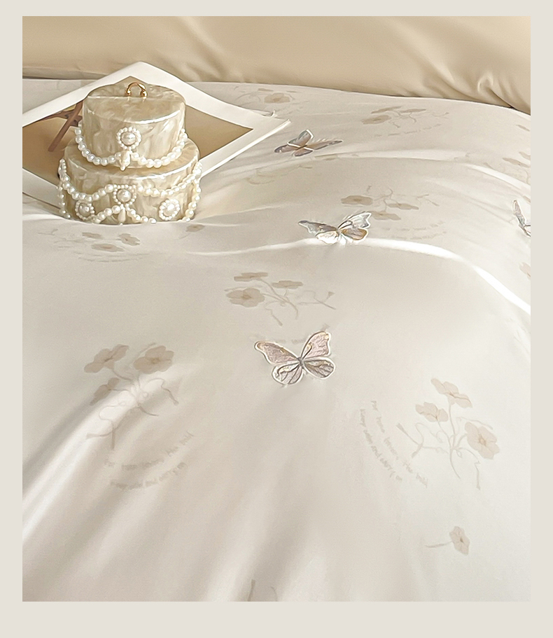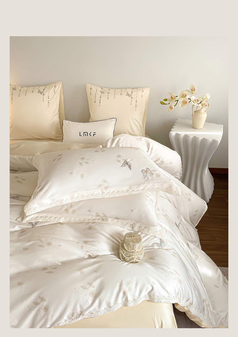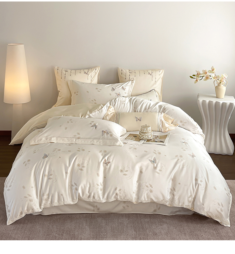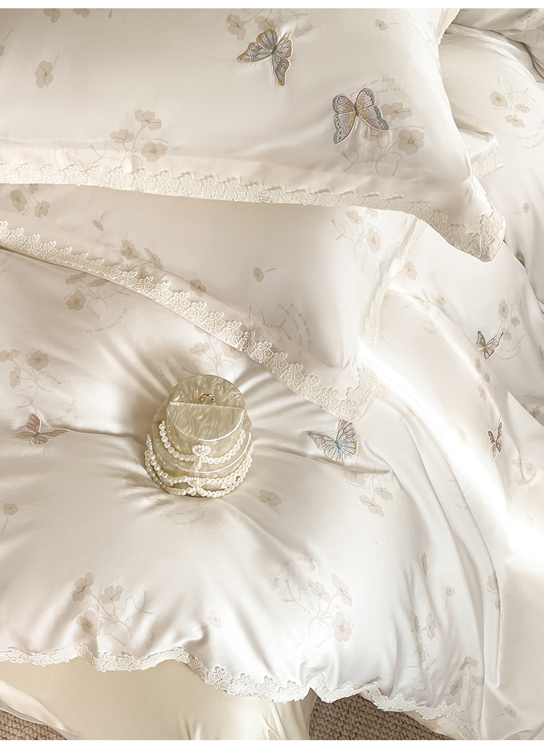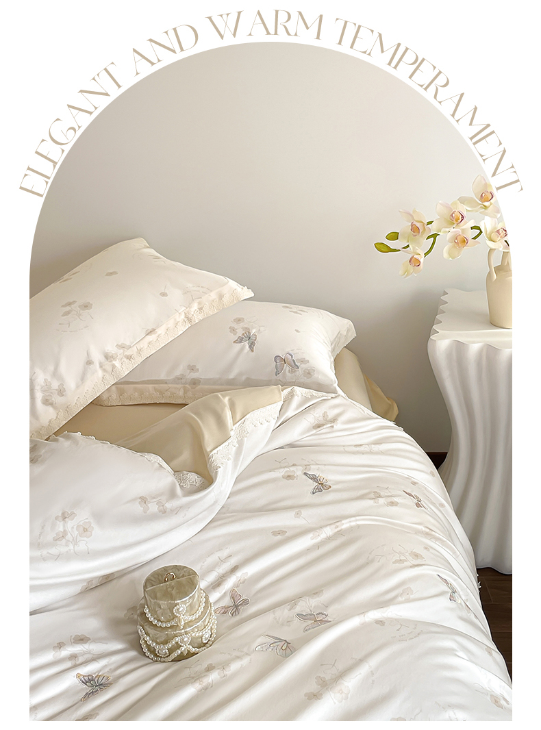 (总)蓝米卡夫 2026春季新款-60S长绒棉贡缎蝴蝶刺绣花边系列四件套-福蝶吉祥(礼盒)-拍摄风格2,福蝶吉祥-大地色,福蝶吉祥-海洋蓝,福蝶吉祥-优雅粉