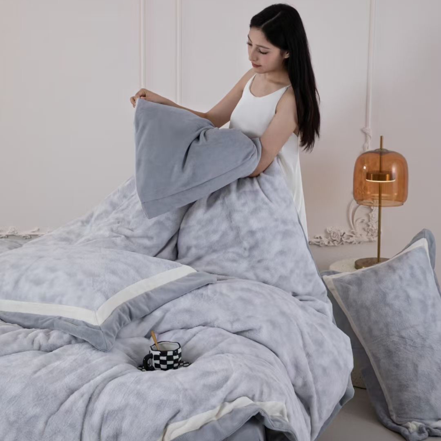 玖琳家纺 2026新款高端高克重水貂绒四件套 远山 灰色