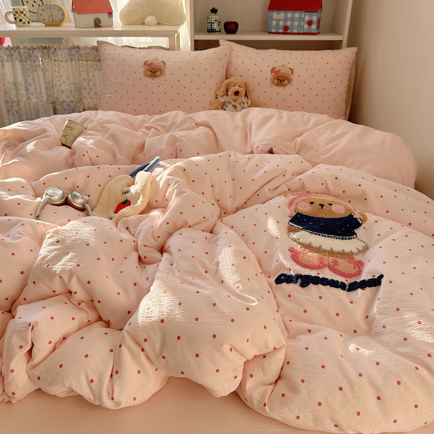 (总)美乐迪家纺 2026新款云感双层纱贴布绣四件套,睡货小狗,兔头小猫