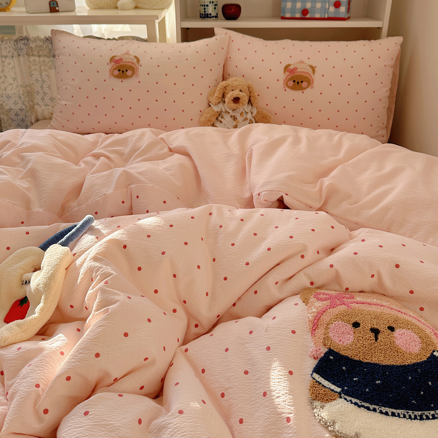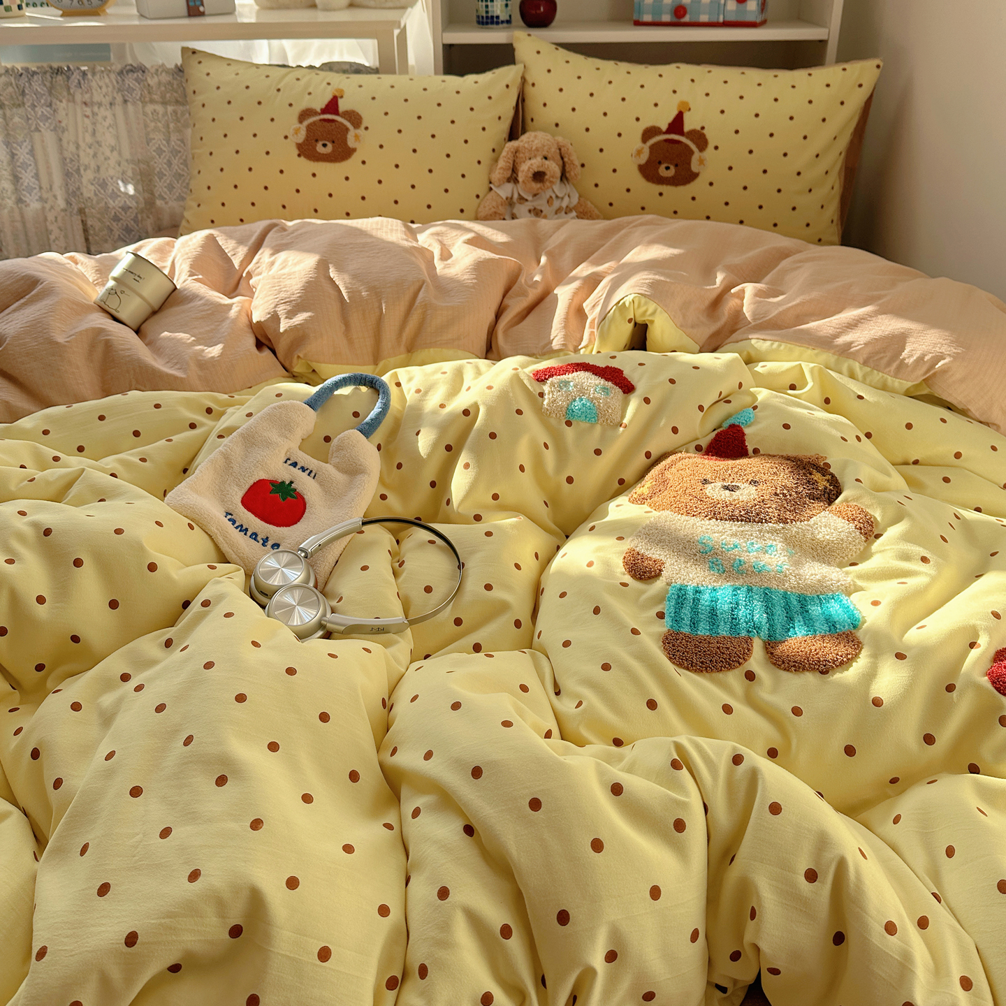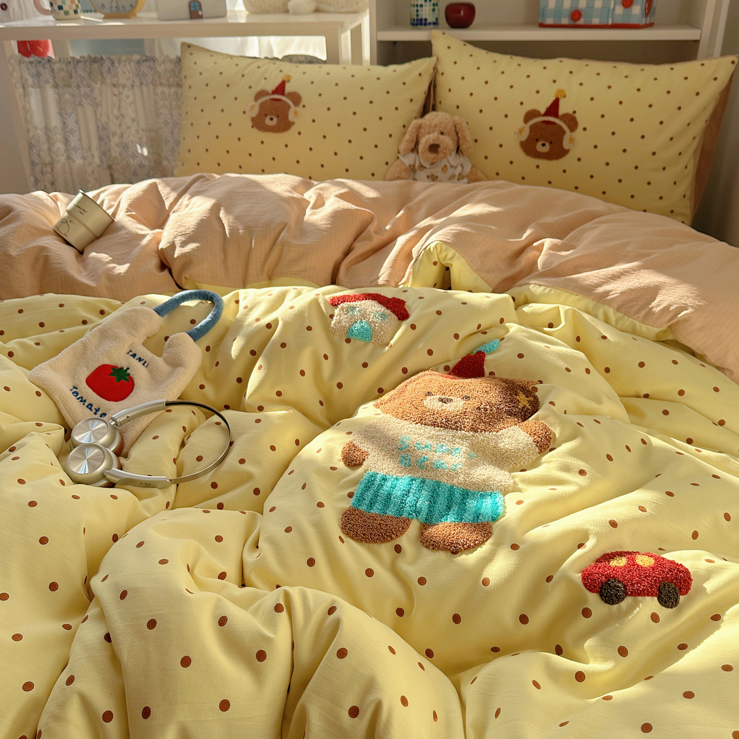 (总)美乐迪家纺 2026新款云感双层纱毛巾绣四件套,大脸猫,小熊糕,熊仔墩墩