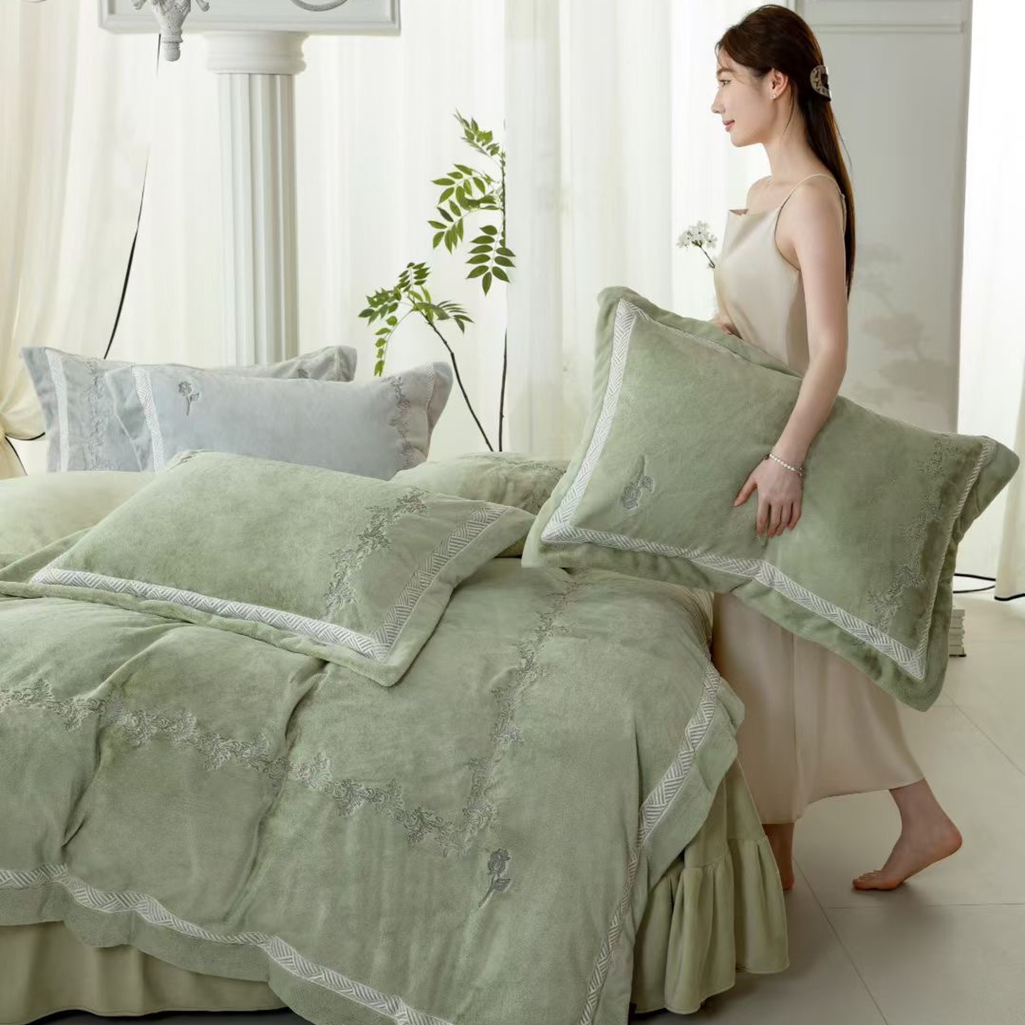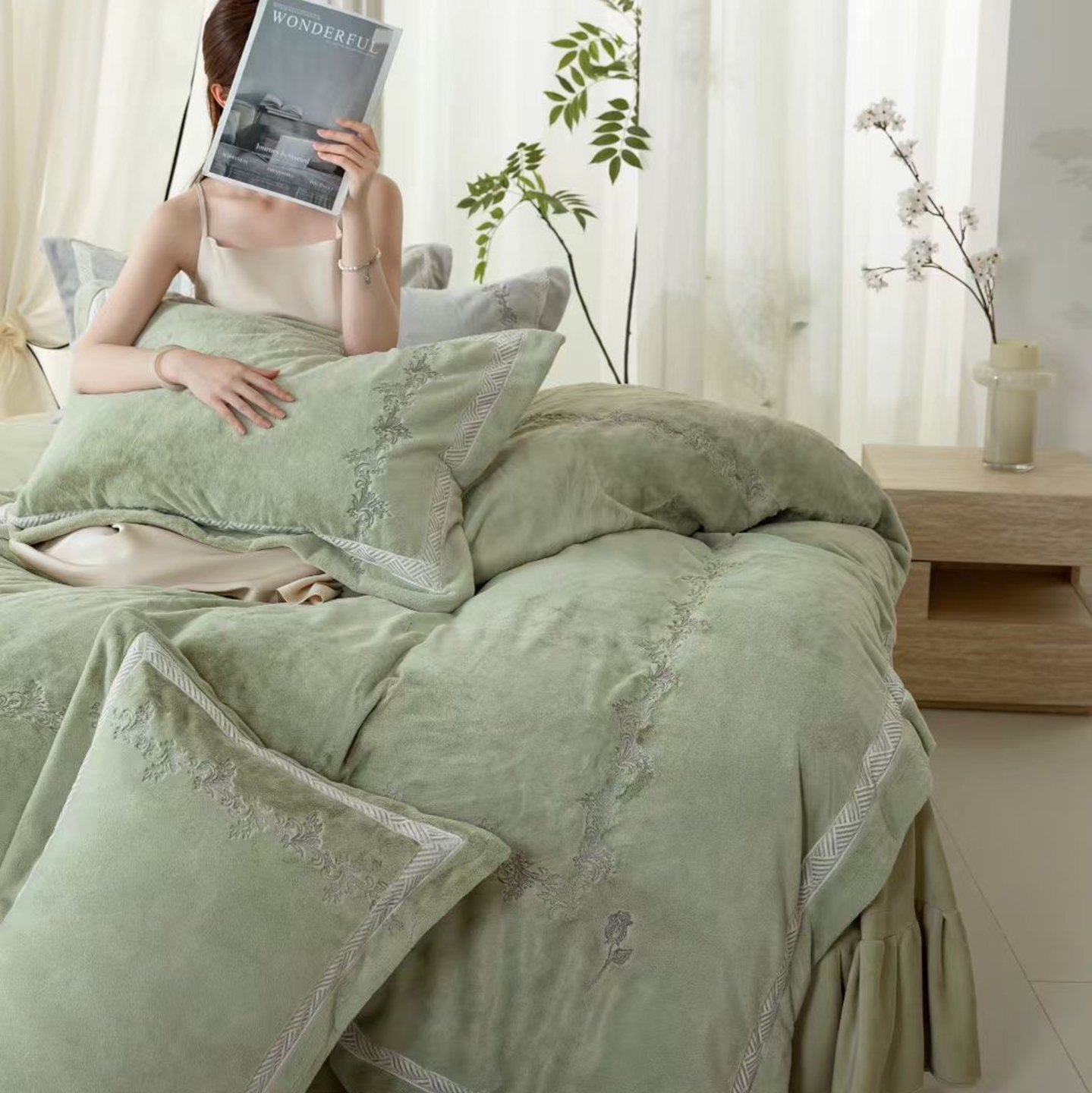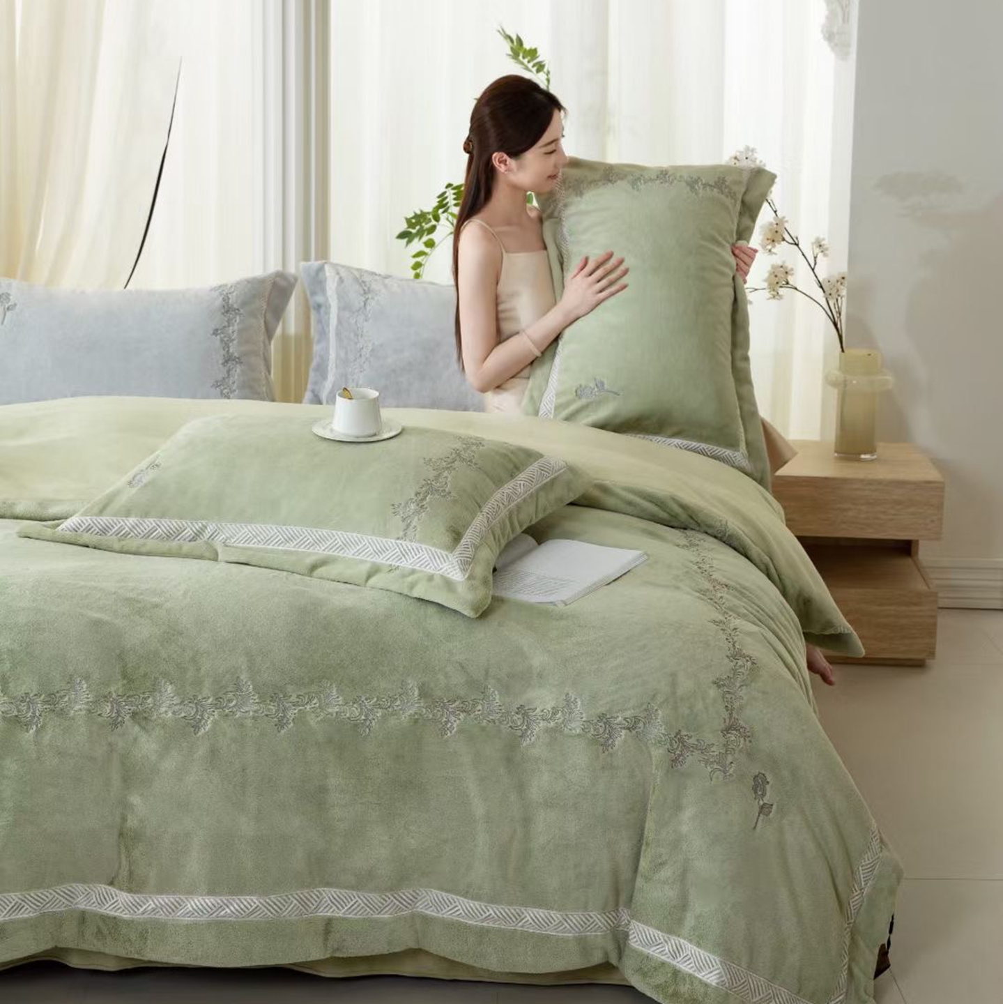 玖琳家纺 2026新款高端高克重水貂绒四件套-戴思系列 戴思 青草绿