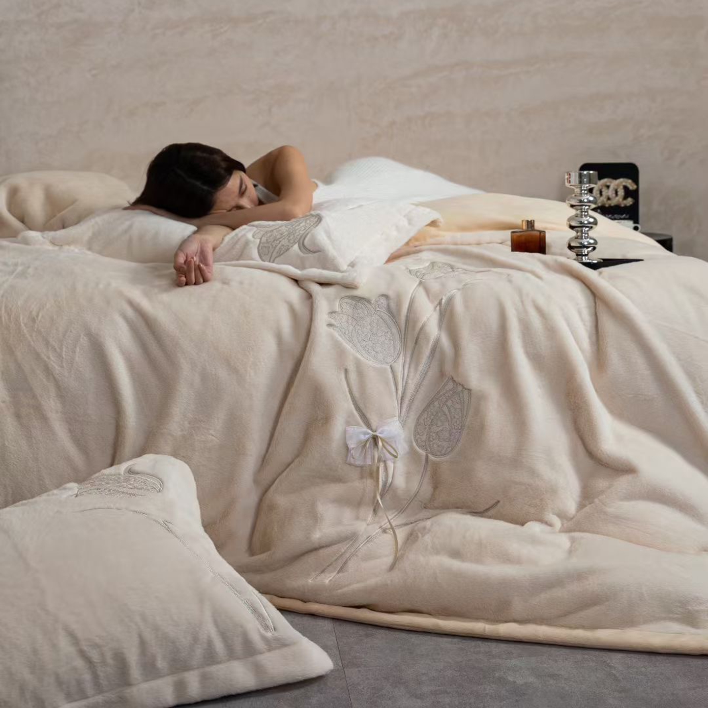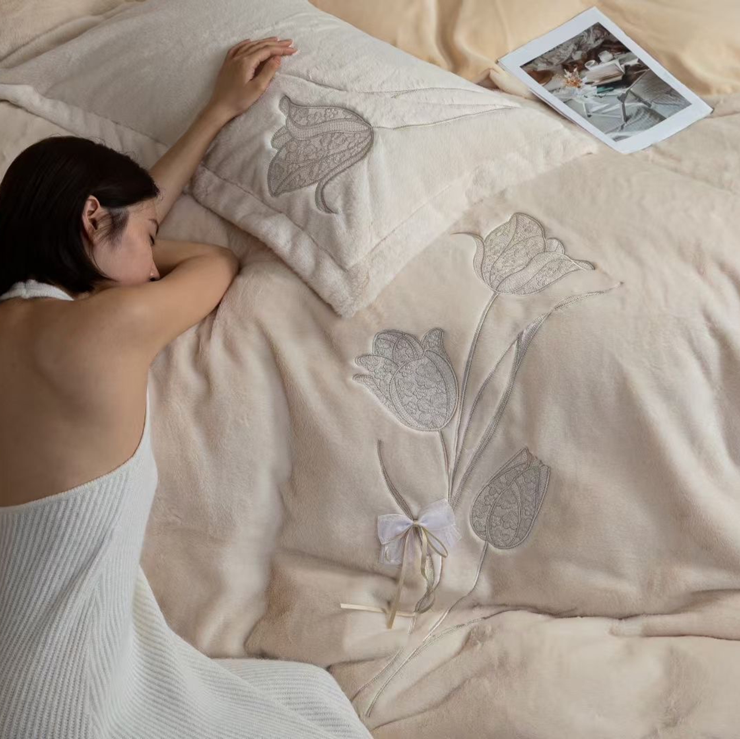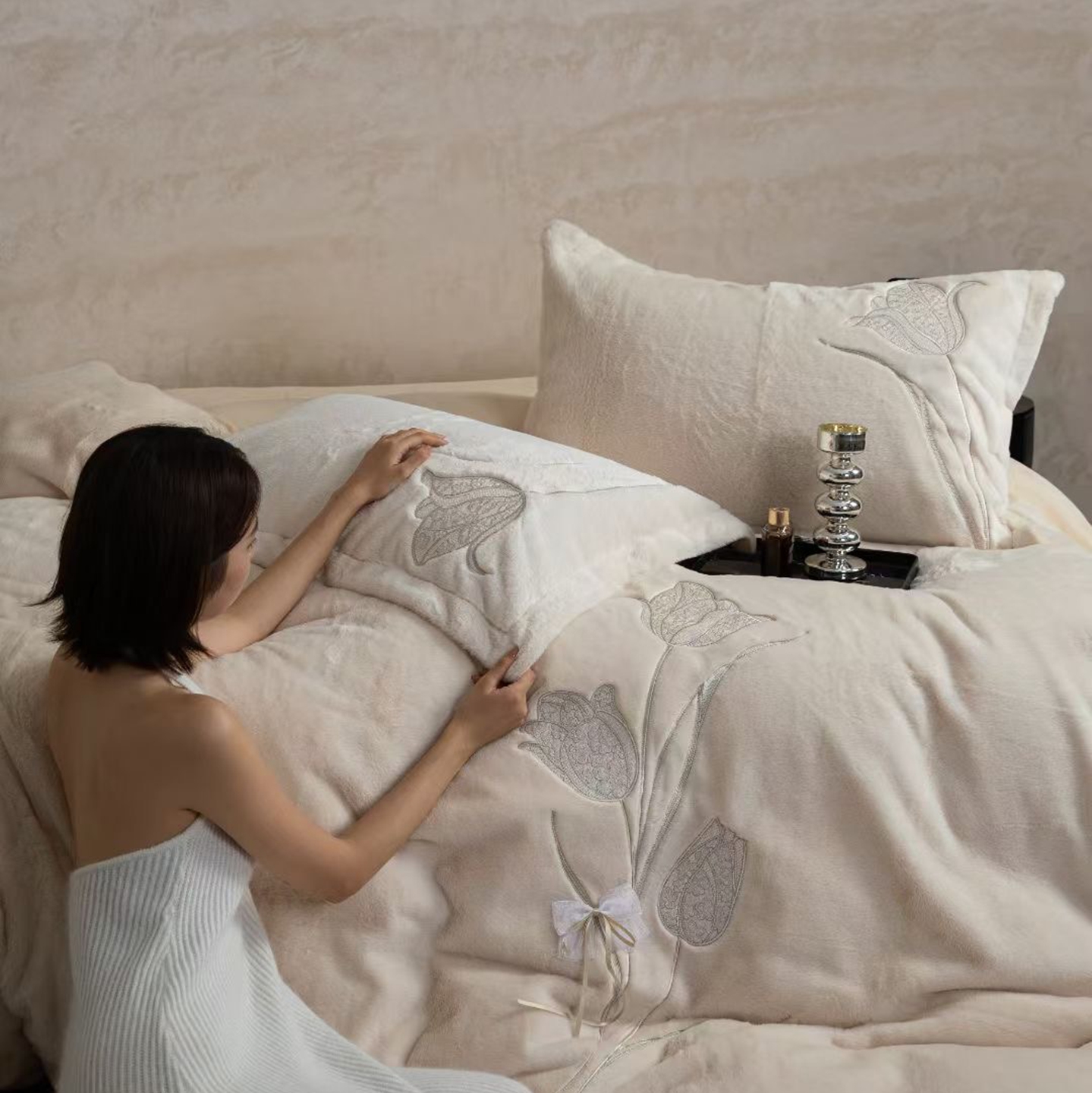 (总)2026新款高端高克重水貂绒四件套-漫枝系列,漫枝 豆绿,漫枝 灰色,漫枝 咖色,漫枝 蓝色,漫枝 玉色