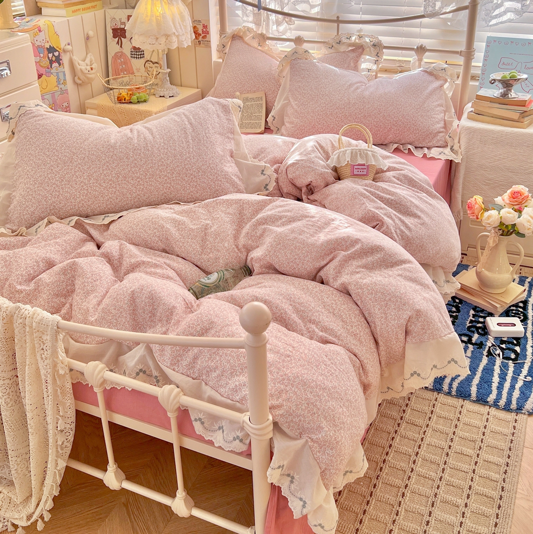 当前位置: 91家纺网 > 商品网购 > 床品套件 > 四件套 > 全棉普通四件套 > 金丝鸟家纺 2026新款纯棉全棉双层纱刺绣花边款四件套 兔隐织