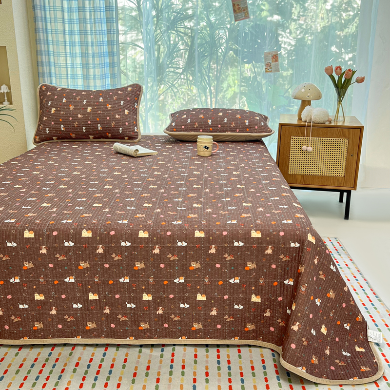 欣宜家纺 2026新款全棉纱布加宝宝绒填充棉花床盖三件套 森系犬-灰
