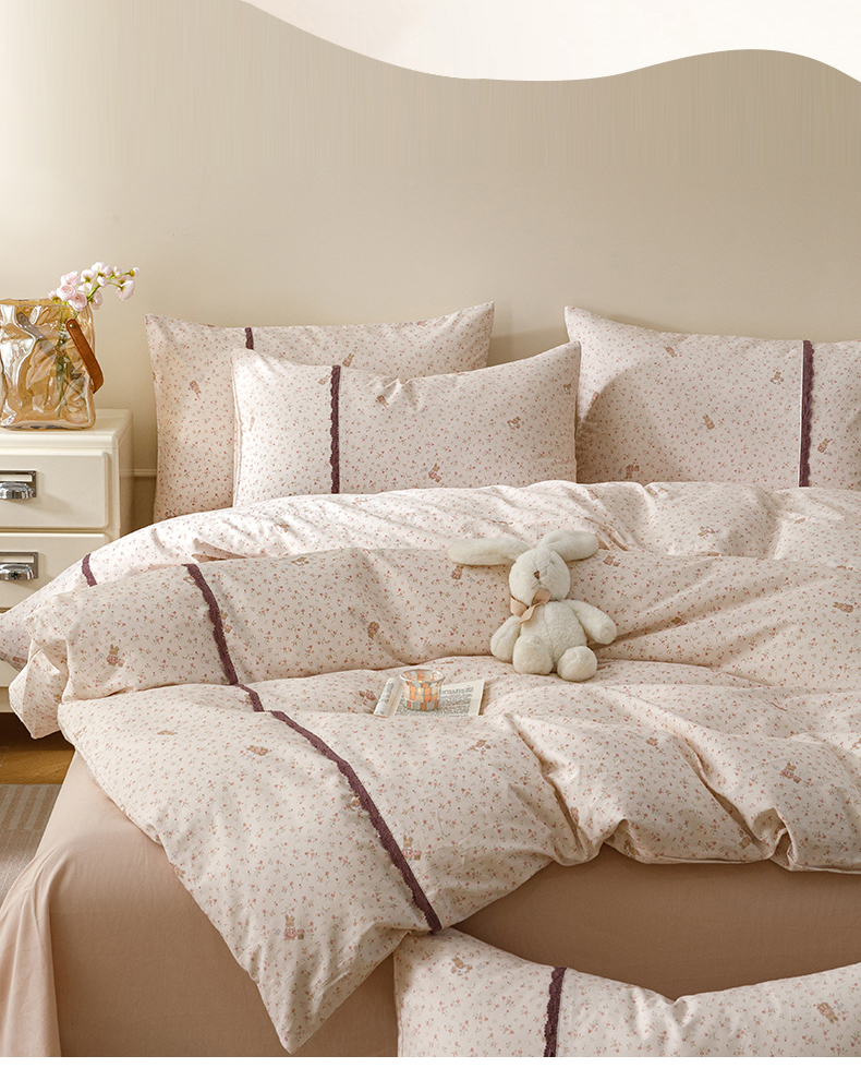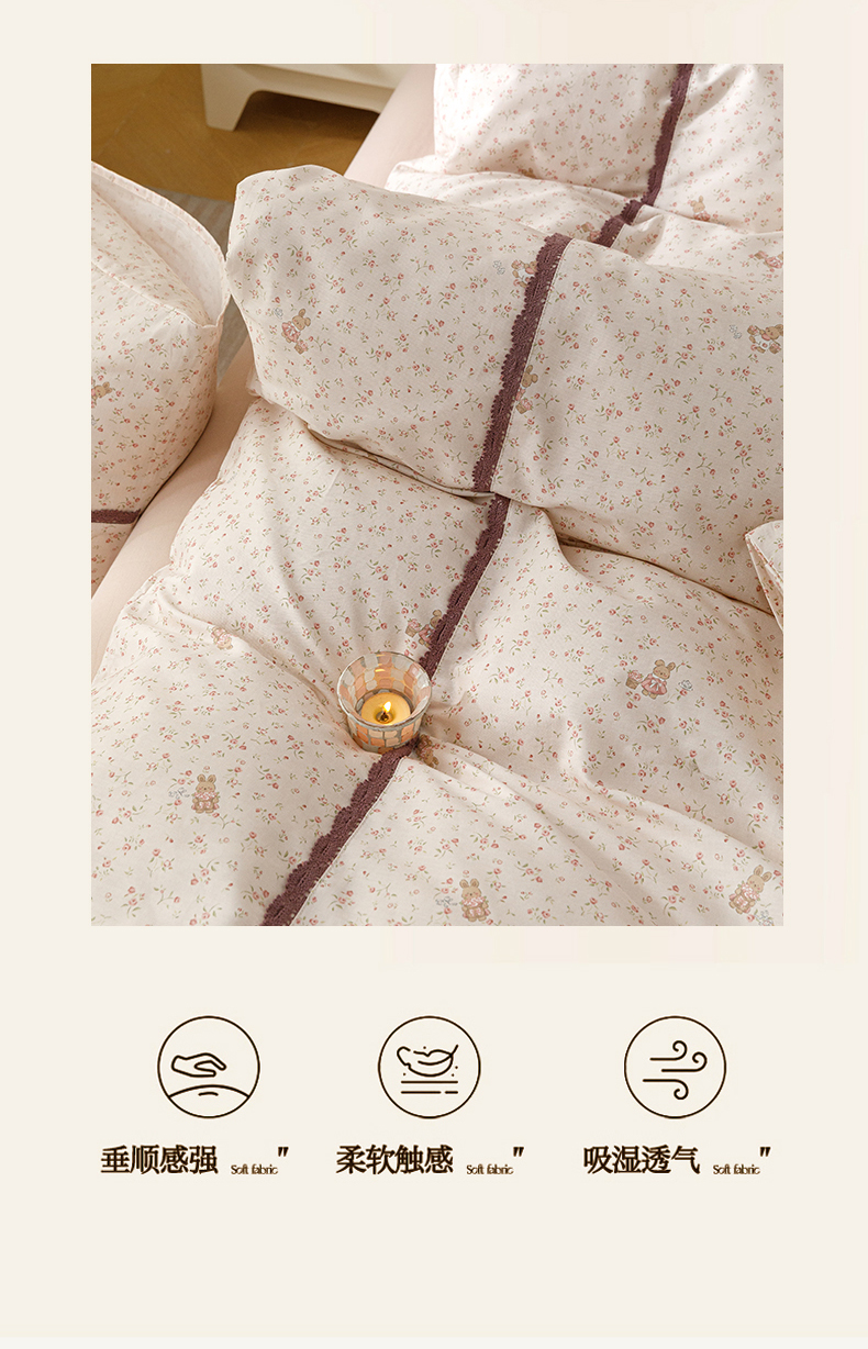 (总)简宜家居(朝初家纺) 2026新款全棉绗缝花边床盖四件套,幸福小兔,暖菊花兔,牵藤兔,素条花-粉,素条花-蓝,兔与花笺
