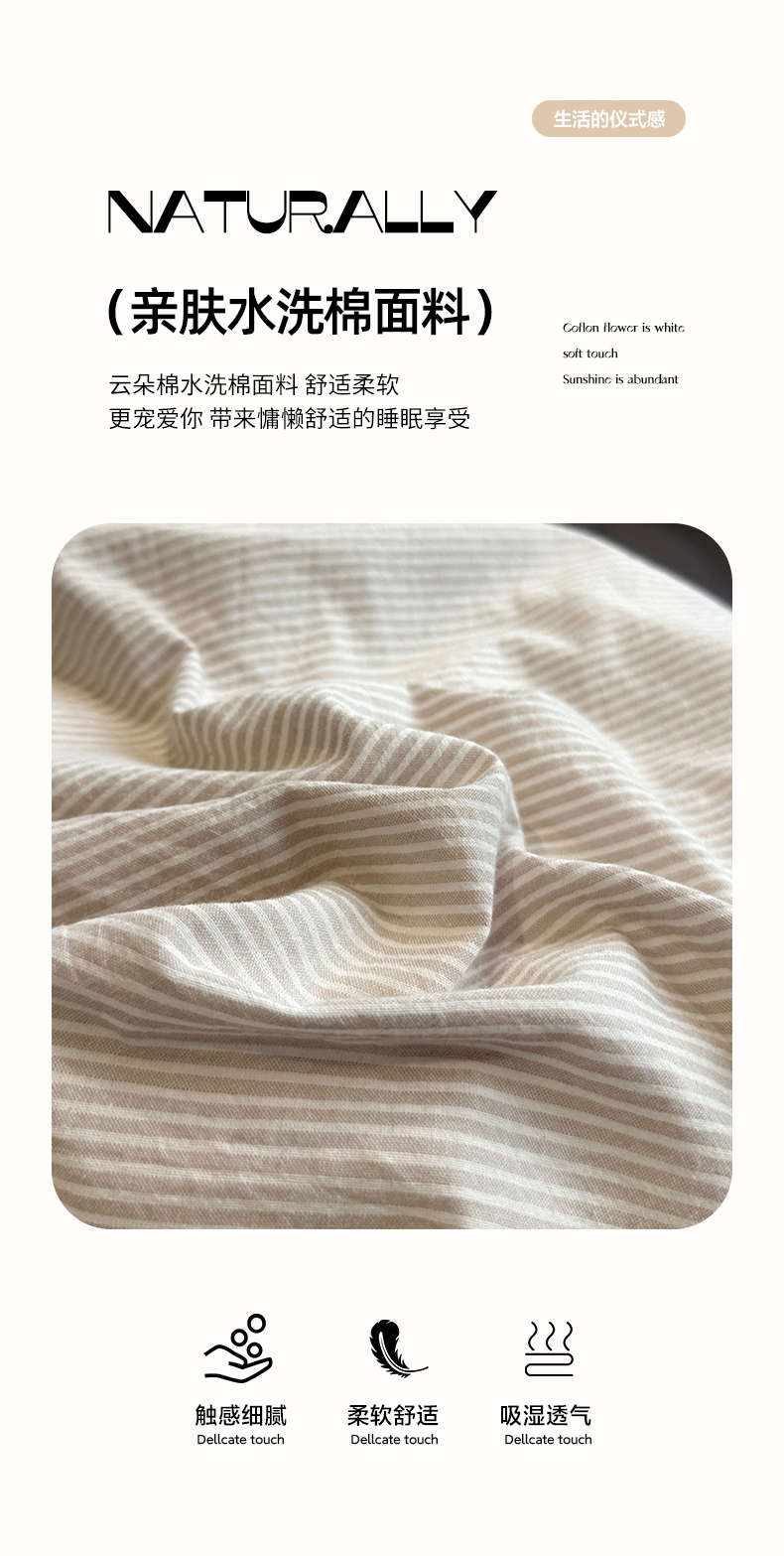 商品名称:欣晴家纺 2026新款软糯水洗棉条格无印宜家风混搭系列被套单件单品被套 混搭咖条