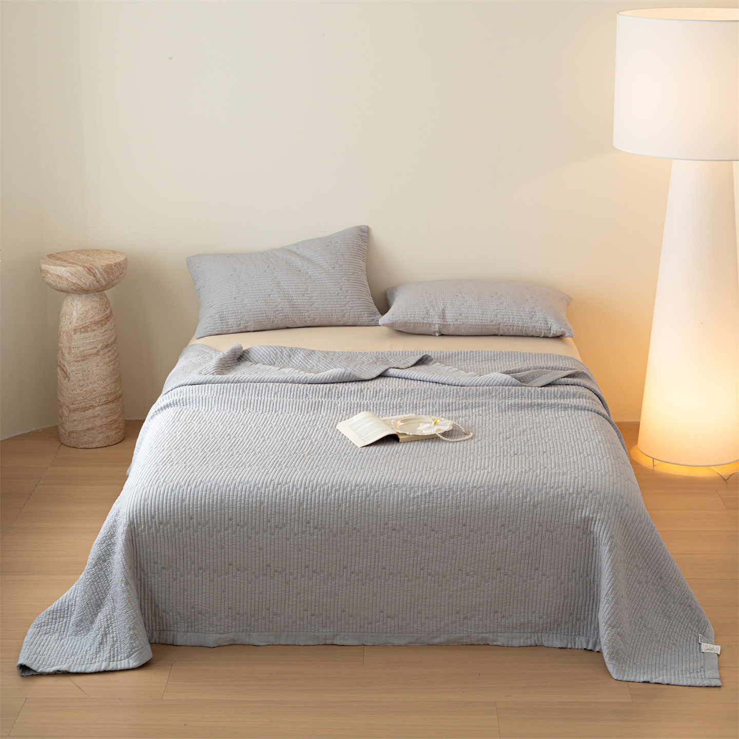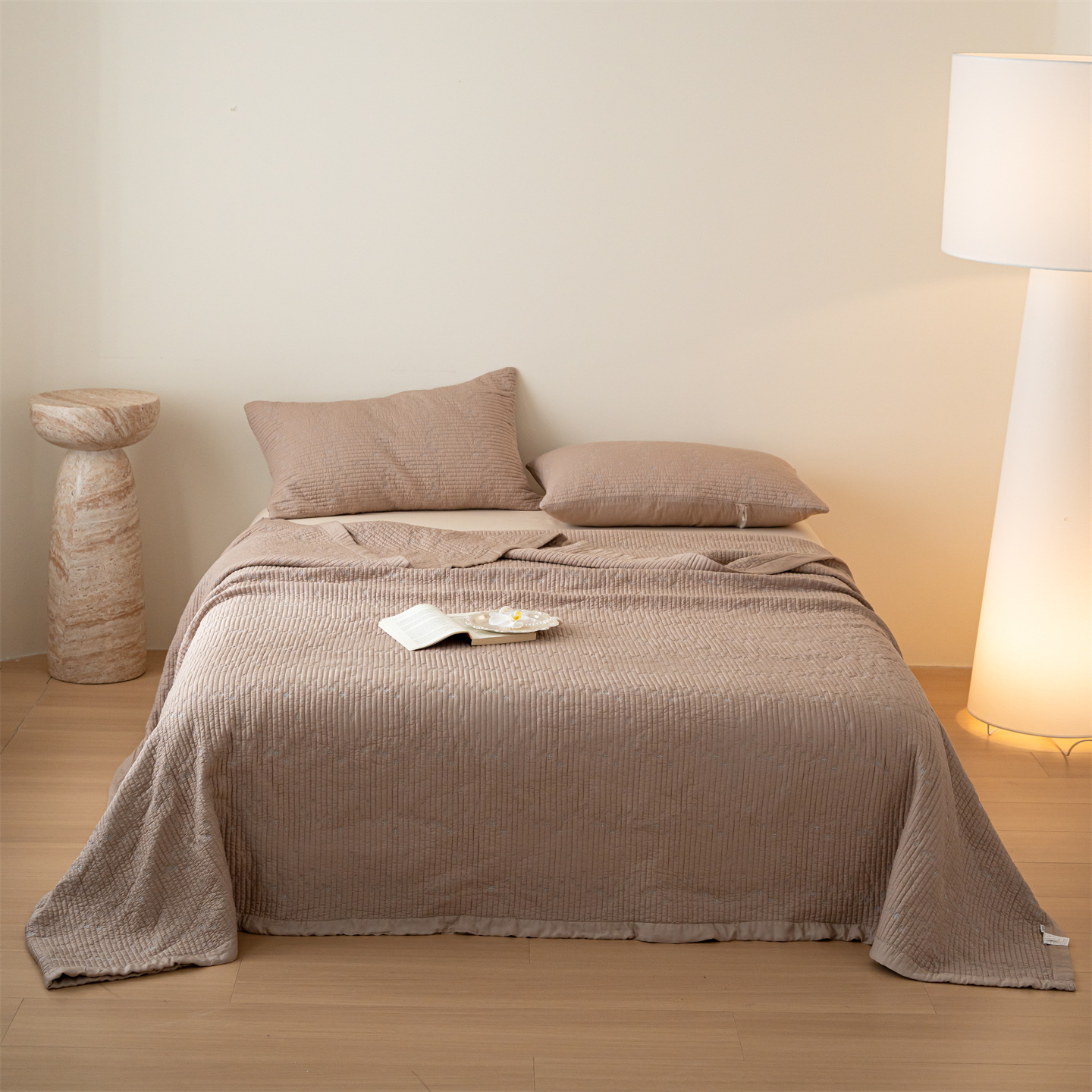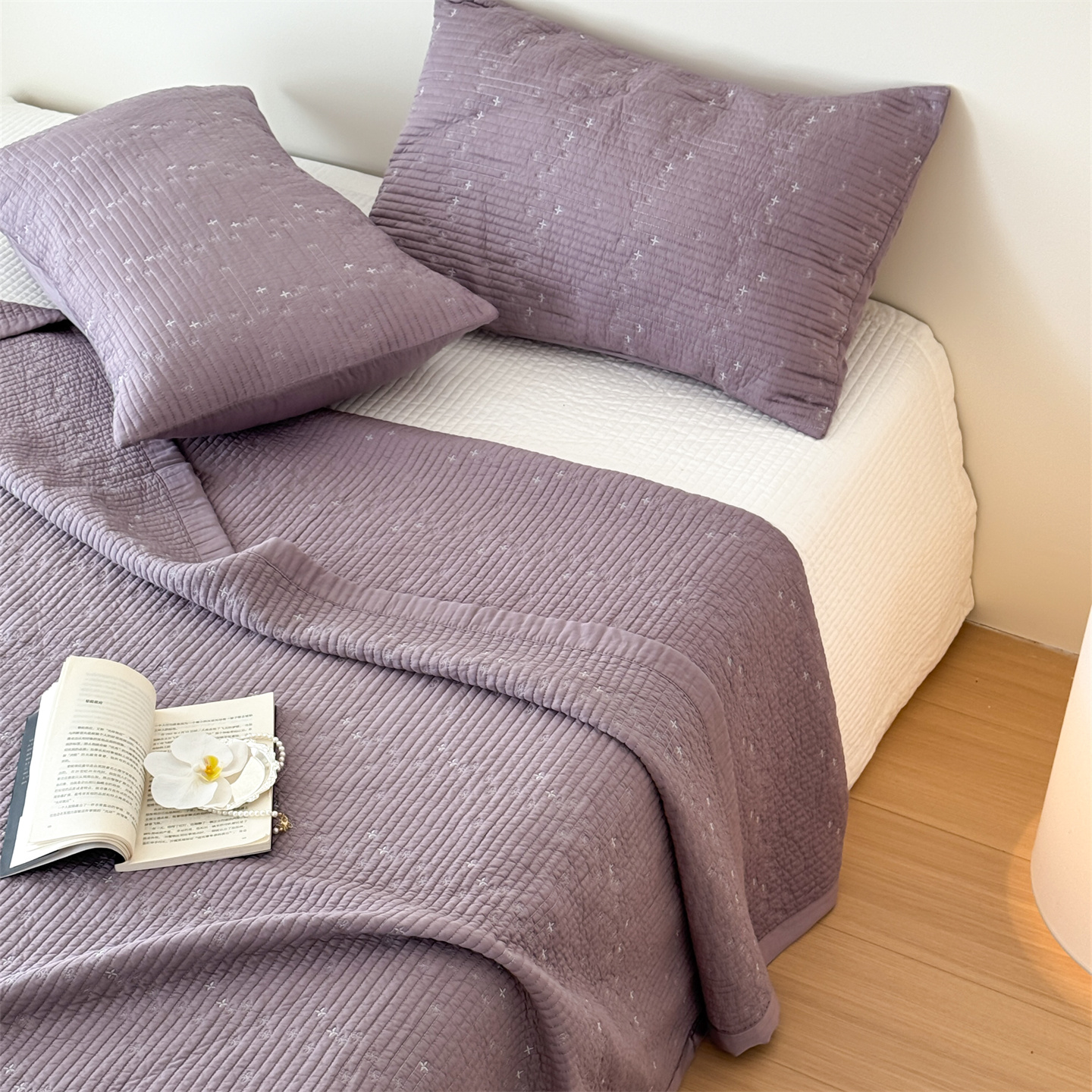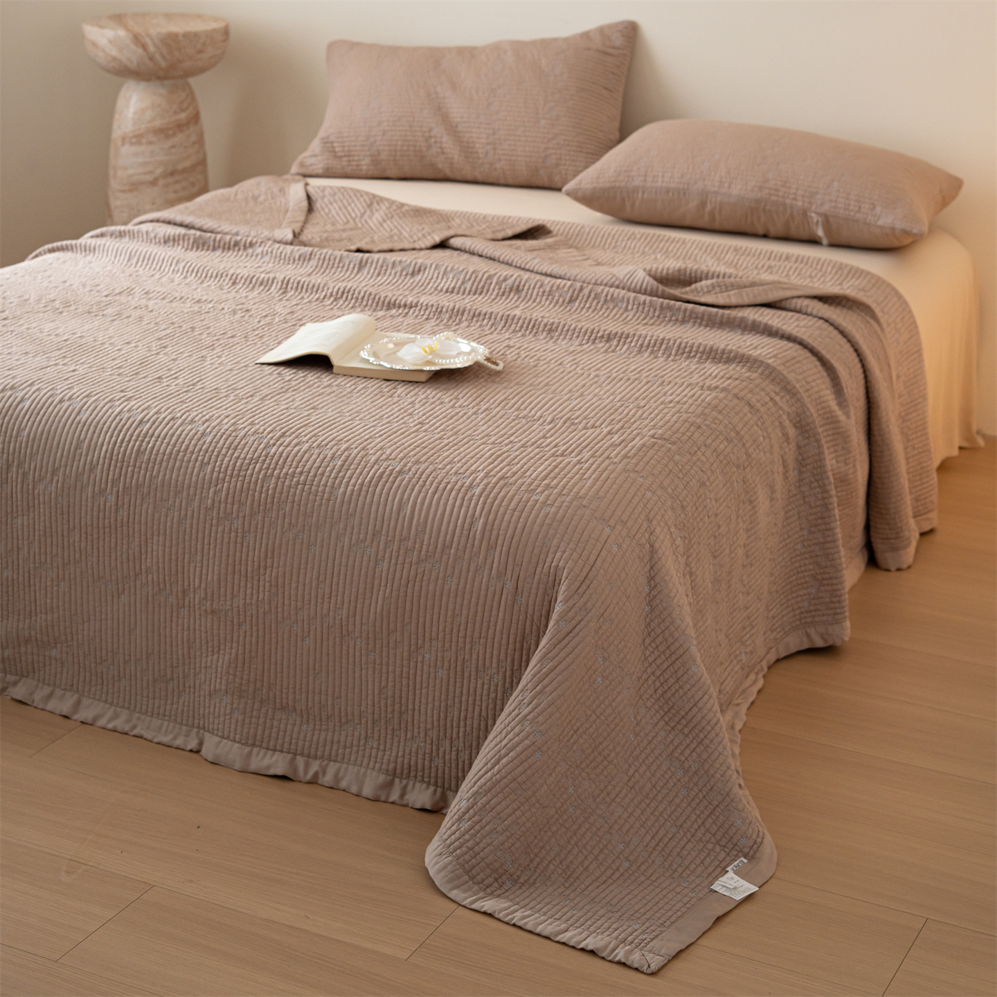 (总)床盖工厂店 2026新款双面全棉水洗棉花糖床盖三件套-米通格系列,米通格-灰色,米通格-咖色,米通格-浅绿,米通格-浅紫,米通格-玉色