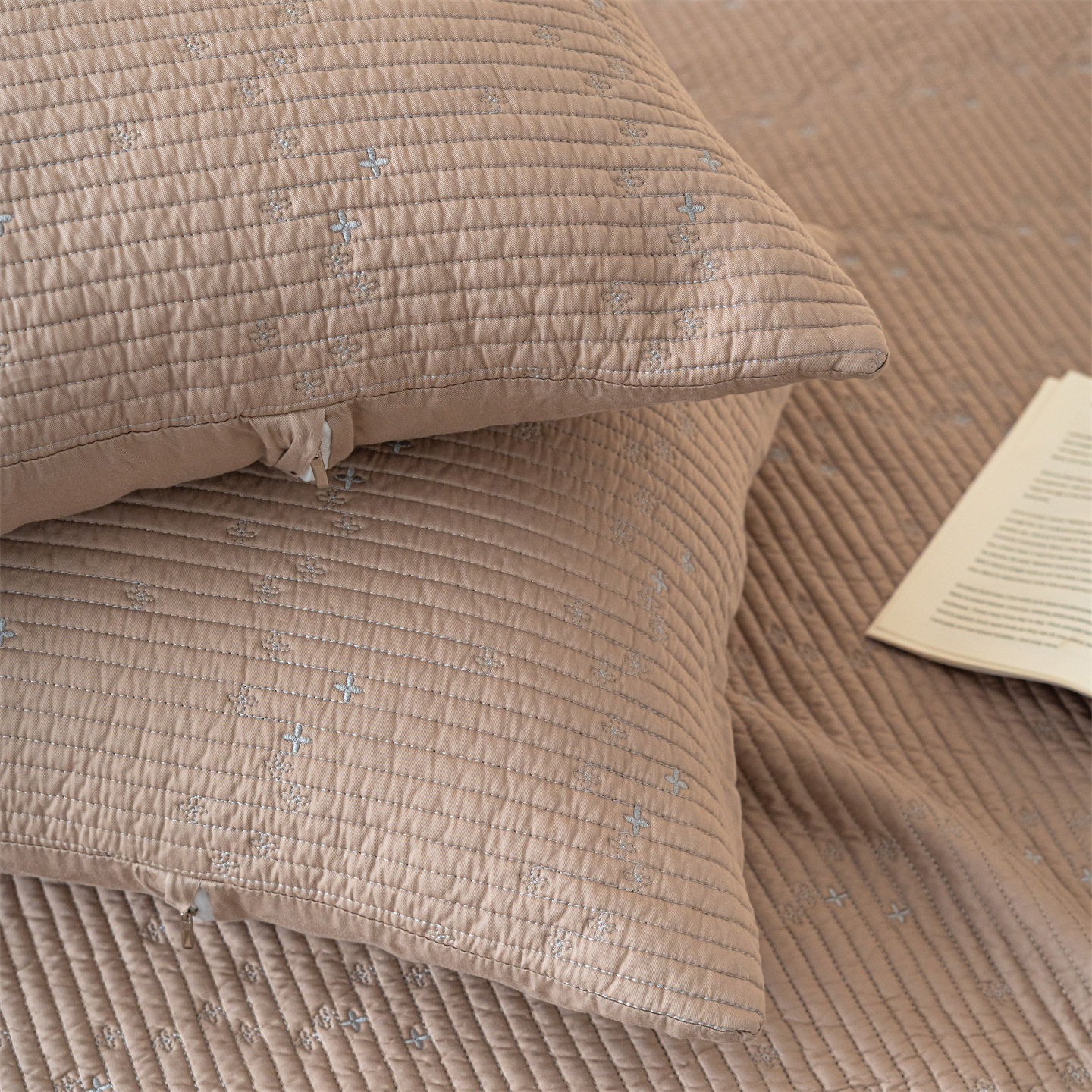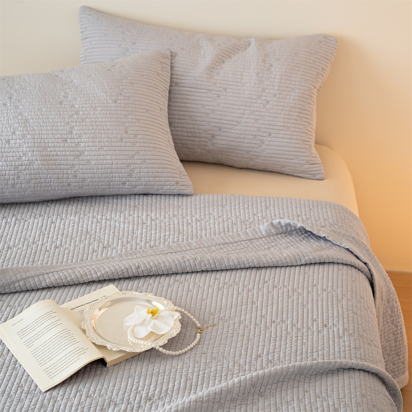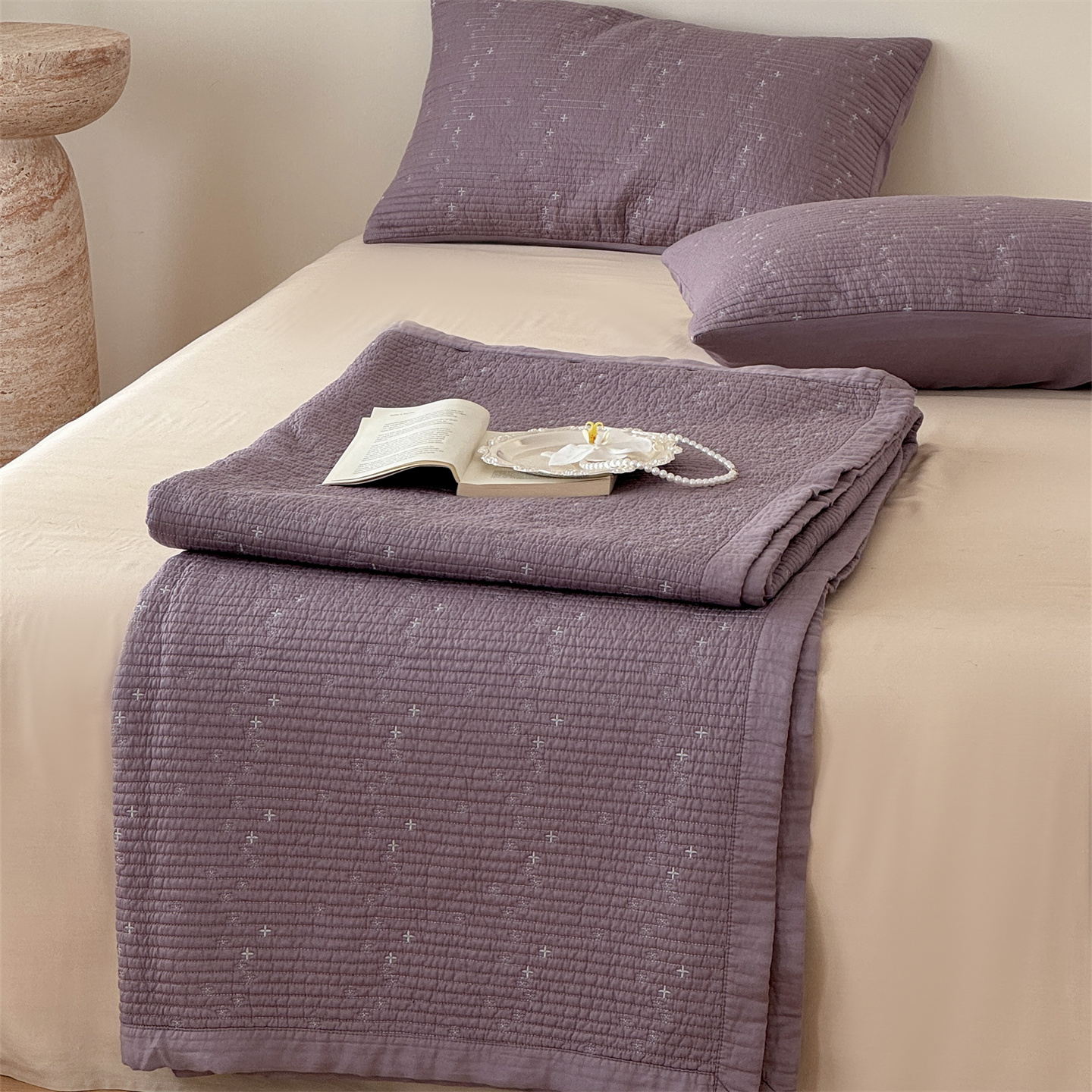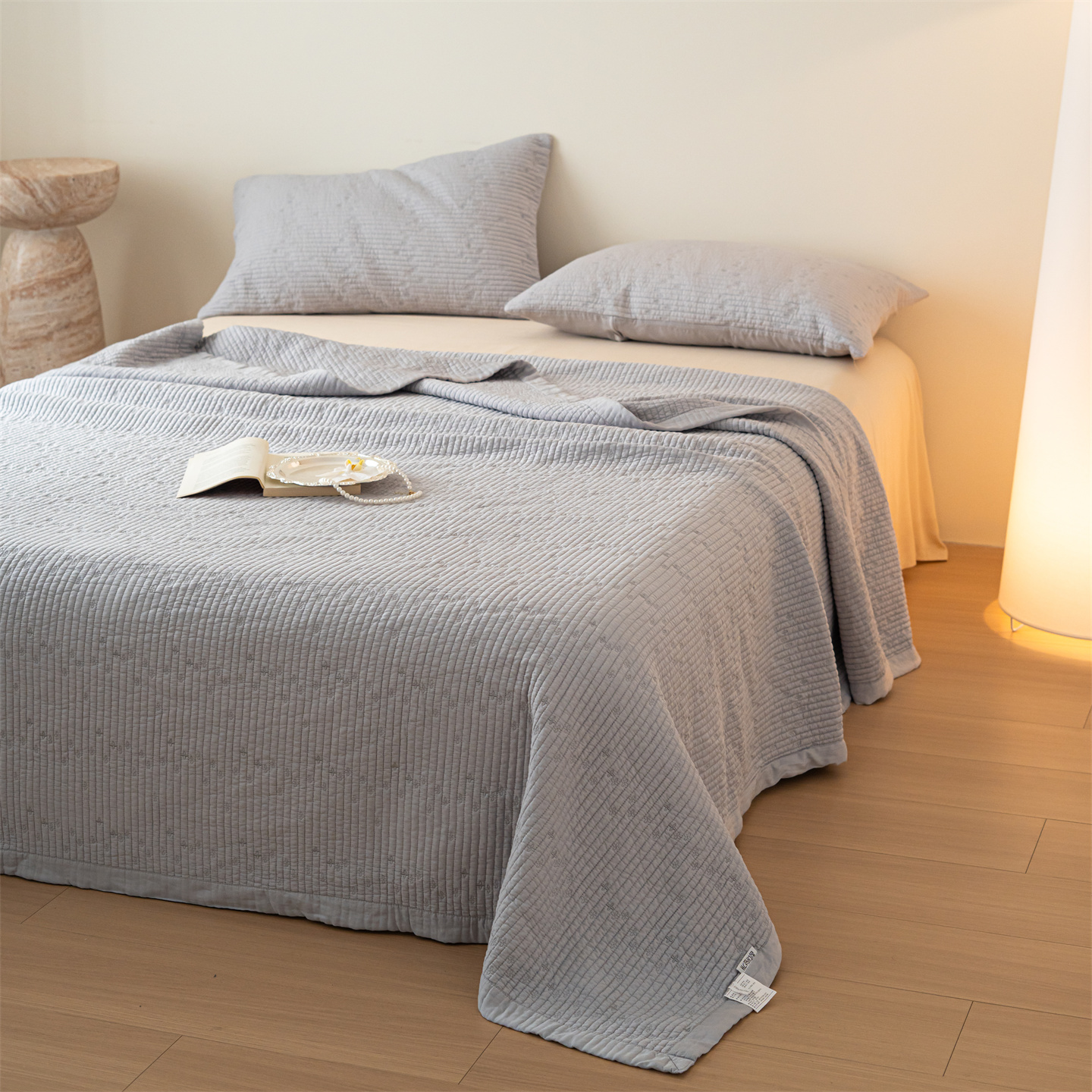 (总)床盖工厂店 2026新款双面全棉水洗棉花糖床盖三件套-米通格系列,米通格-灰色,米通格-咖色,米通格-浅绿,米通格-浅紫,米通格-玉色