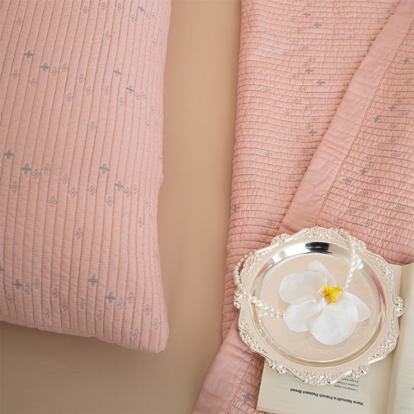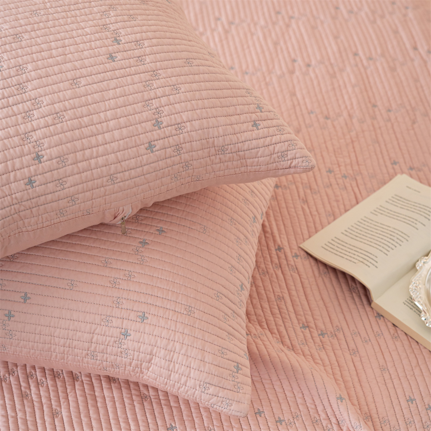 (总)床盖工厂店 2026新款双面水洗全棉填充棉花床盖三件套-朵拉系列,朵拉-粉,朵拉-灰,朵拉-咖,朵拉-绿,组合图
