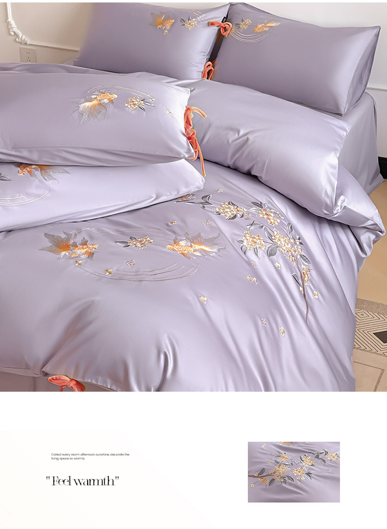 2026新款50S双股A类长绒棉纯棉四件套全棉喜庆刺绣被套床单床笠-福瑞锦鲤 福瑞锦鲤-紫
