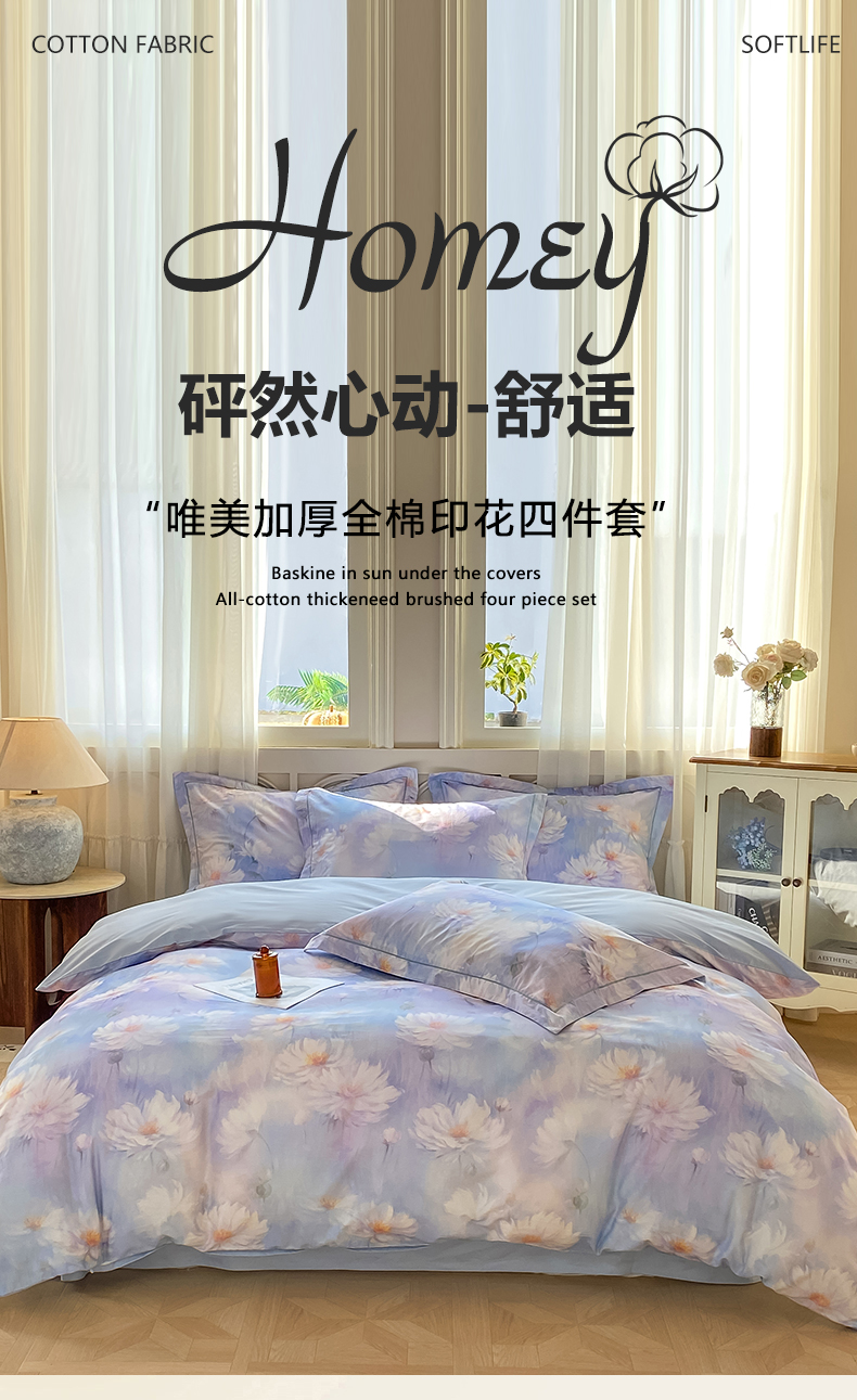 当前位置: 91家纺网 > 商品网购 > 床品套件 > 四件套 > 全棉普通四件套 > XIWEN-希文家纺 2026新款40支全棉纯棉13376数码印花四件套-第一批 芙蓉花语-紫