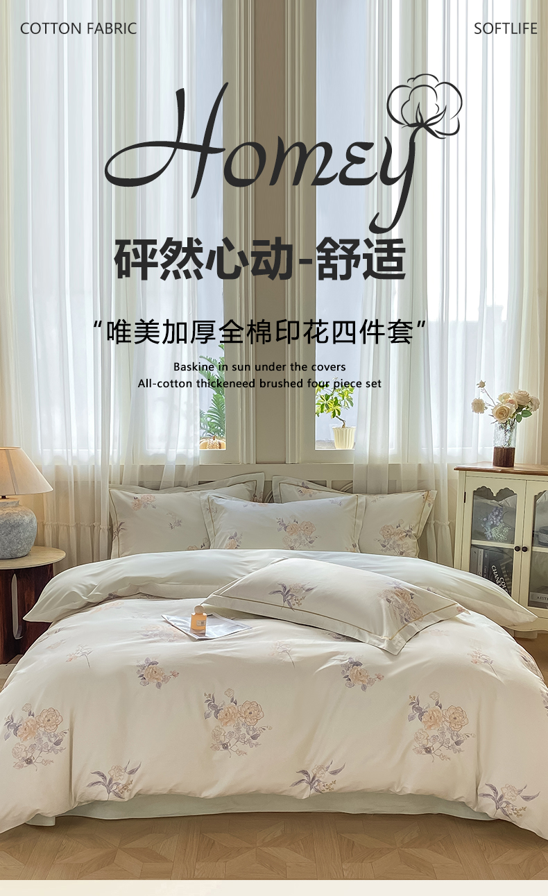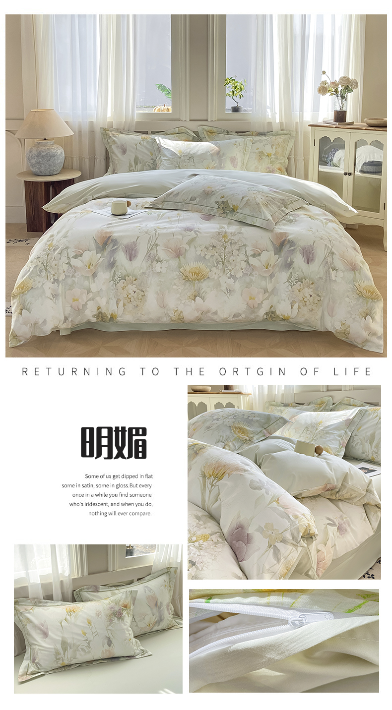 当前位置: 91家纺网 > 商品网购 > 床品套件 > 四件套 > 全棉普通四件套 > XIWEN-希文家纺 2026新款40支全棉纯棉13376数码印花四件套-第一批 小时光