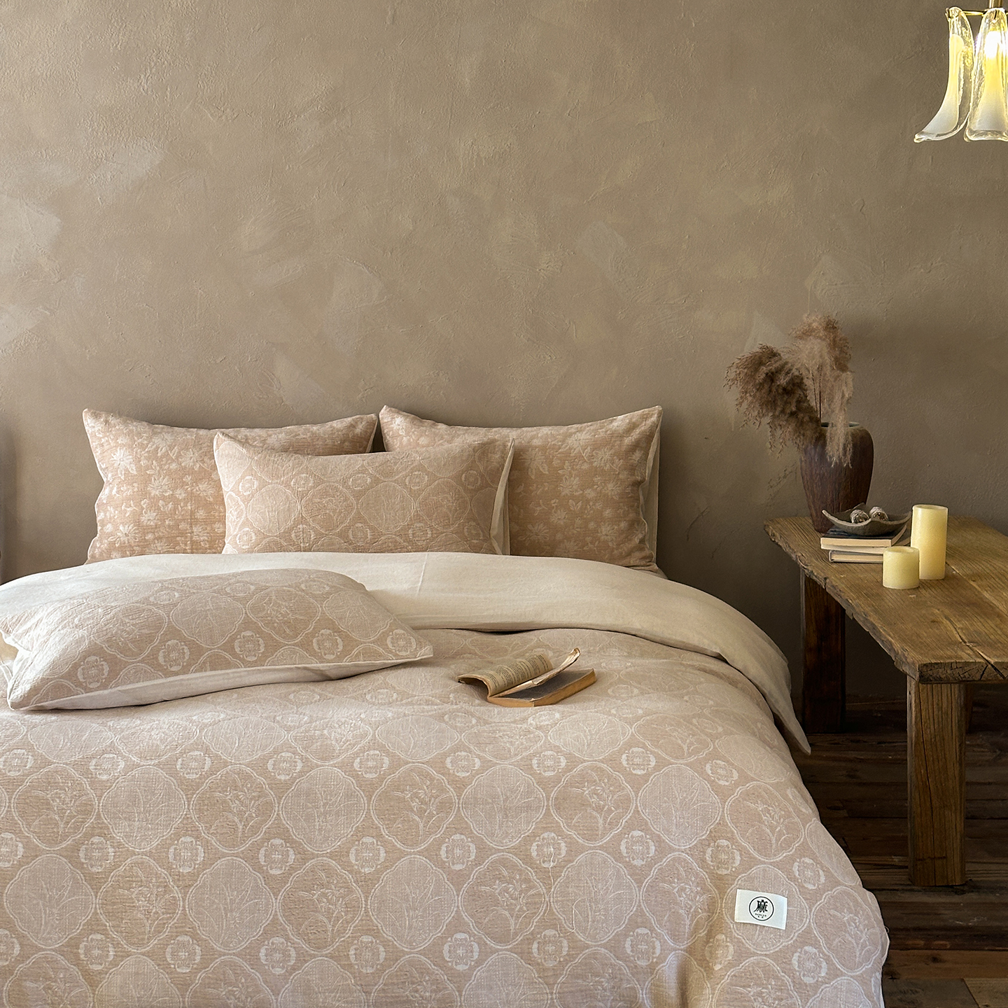 (总)爱丽丝 2026新品色织提花棉麻四件套-木兮花边款,木兮花边款