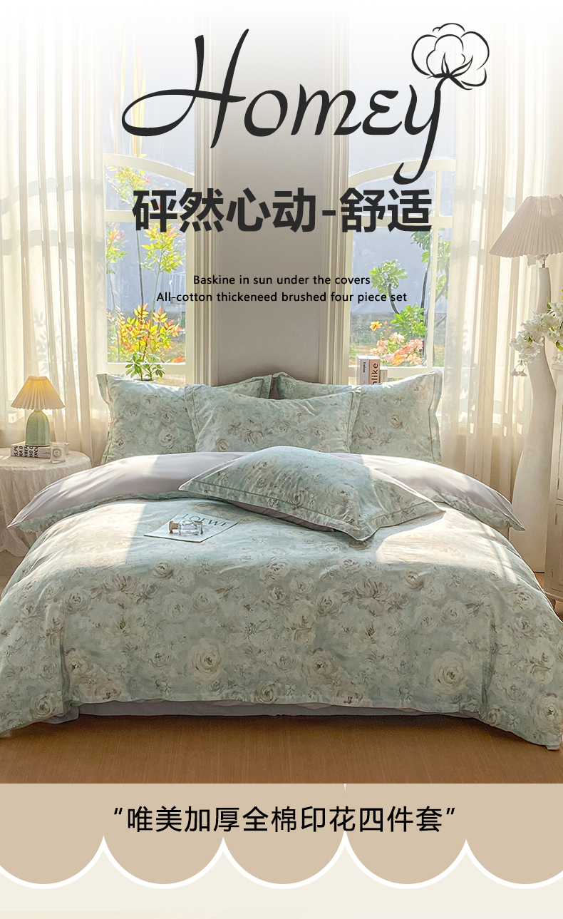 当前位置: 91家纺网 > 商品网购 > 床品套件 > 四件套 > 全棉普通四件套 > XIWEN-希文家纺 2026新款40支全棉13376数码印花四件套-第二批 花漾集