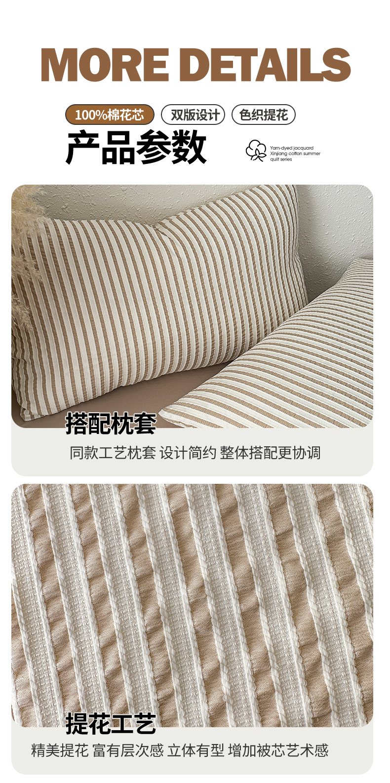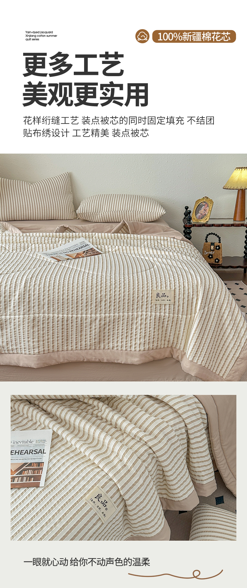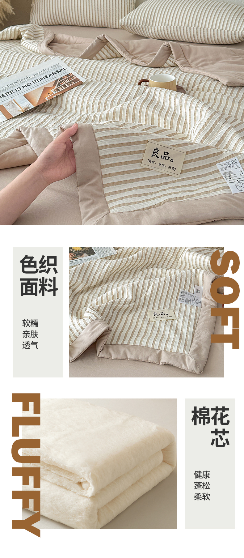 商品名称:尊妙被业 2026新款彩条色织棉花被被子被芯 良品色织 彩条棕