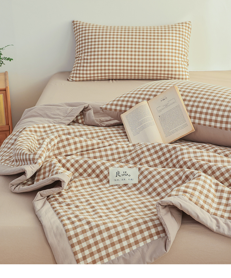 尊妙被业 2026全棉色织水洗全棉棉花夏被 被子被芯 夏被四件套(格子款) 爱格
