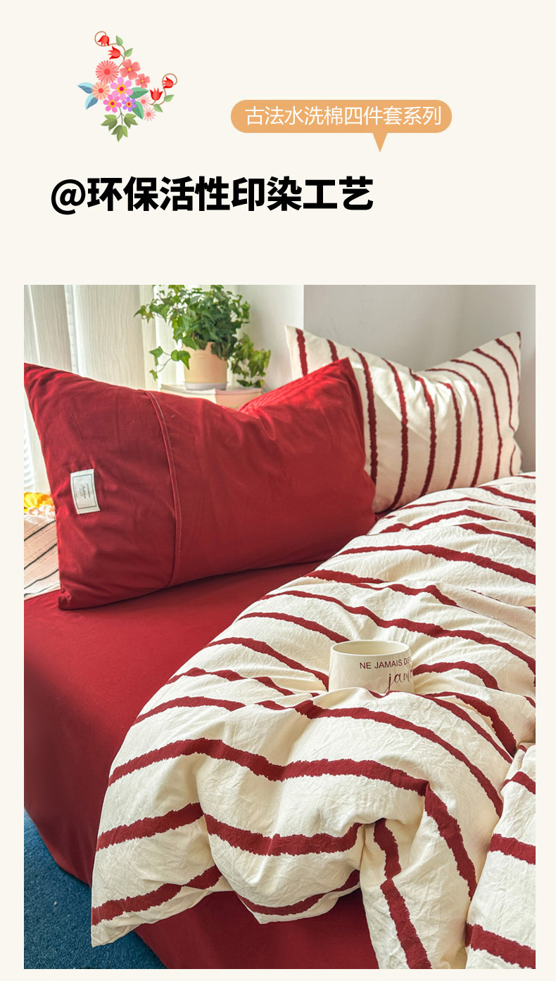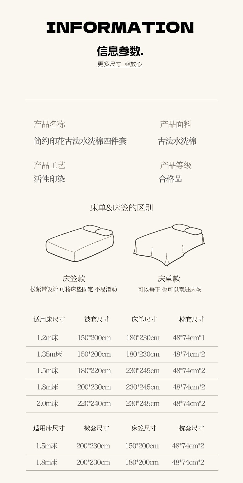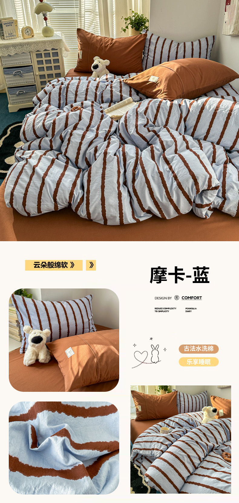 商品名称:(总)上尚居 2026新款简约印花古法水洗棉四件套-摩卡